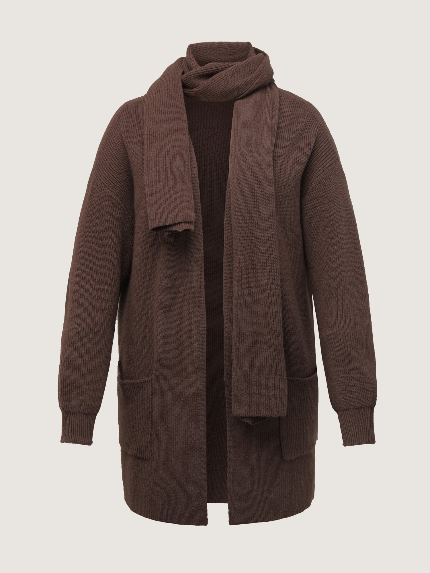 Textured Scarf Pockets Knit Cardigan