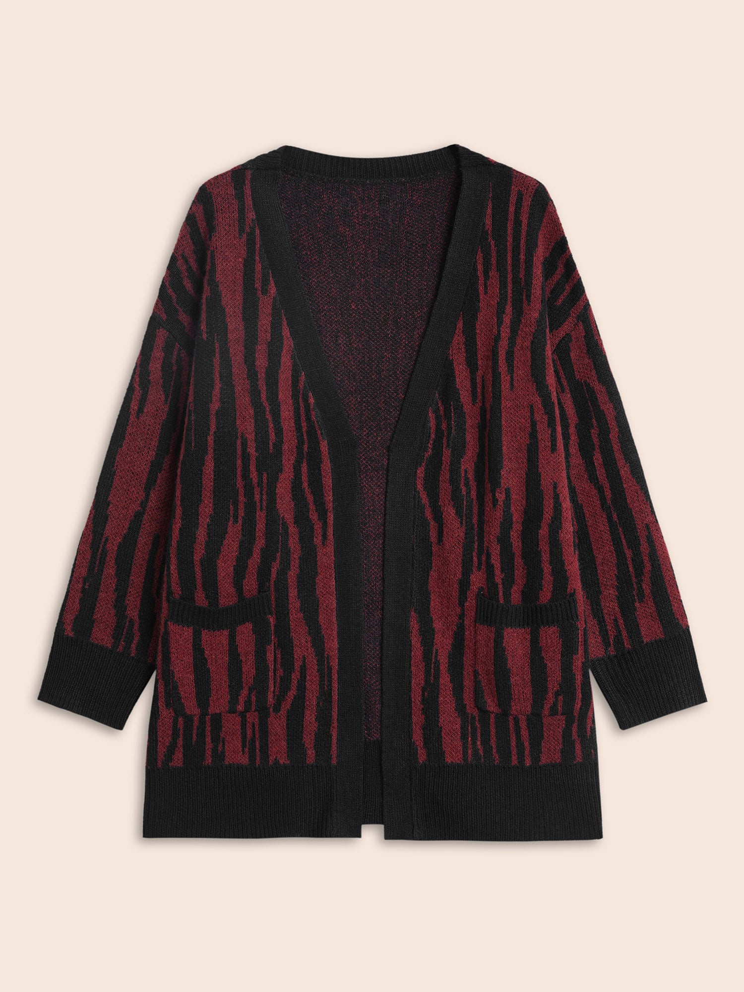 Shop Zebra Print Patched Pocket Cardigan now and redefine your style with confidence at BloomChic. Tailored for mid and plus-size women. This trendy Sweaters Cardigans Women, sizes 10-30. Season:Winter;Color:Deepred;Style:Casual;Neckline:Kimono collar;Sleeve Type:Drop shoulder sleeve;Prints:Animal print;Details:Contrast;Pocket:Patch pocket;Belt:No-belt;Closure Type:Open front without closure