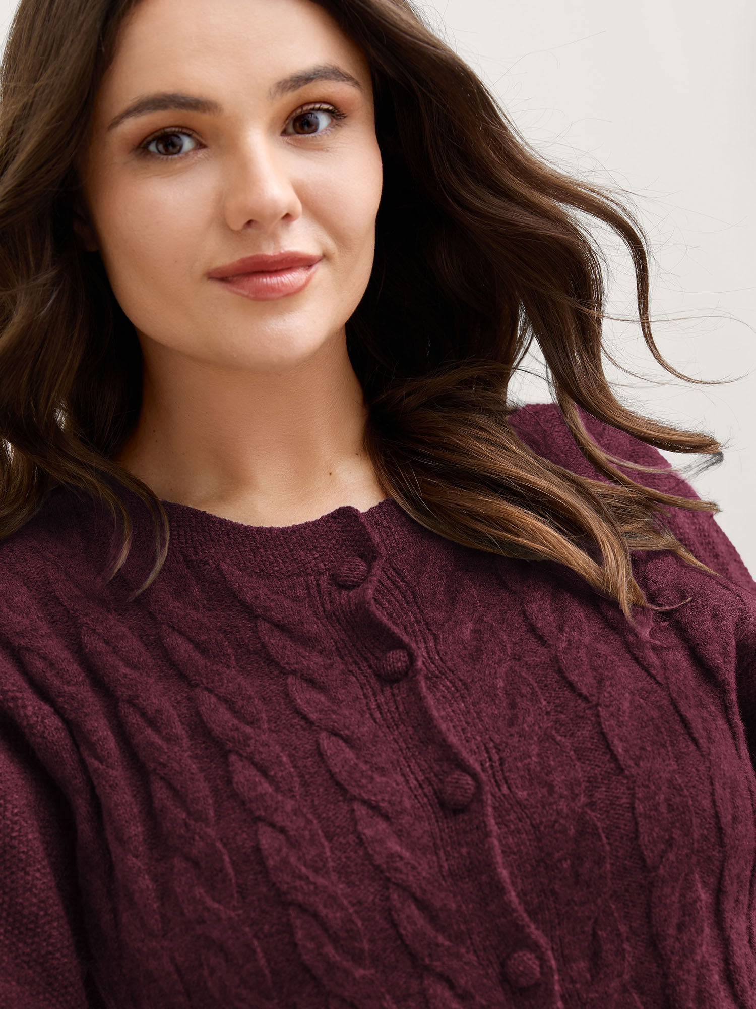 Cable Knit Round Neck Button Knit Cardigan