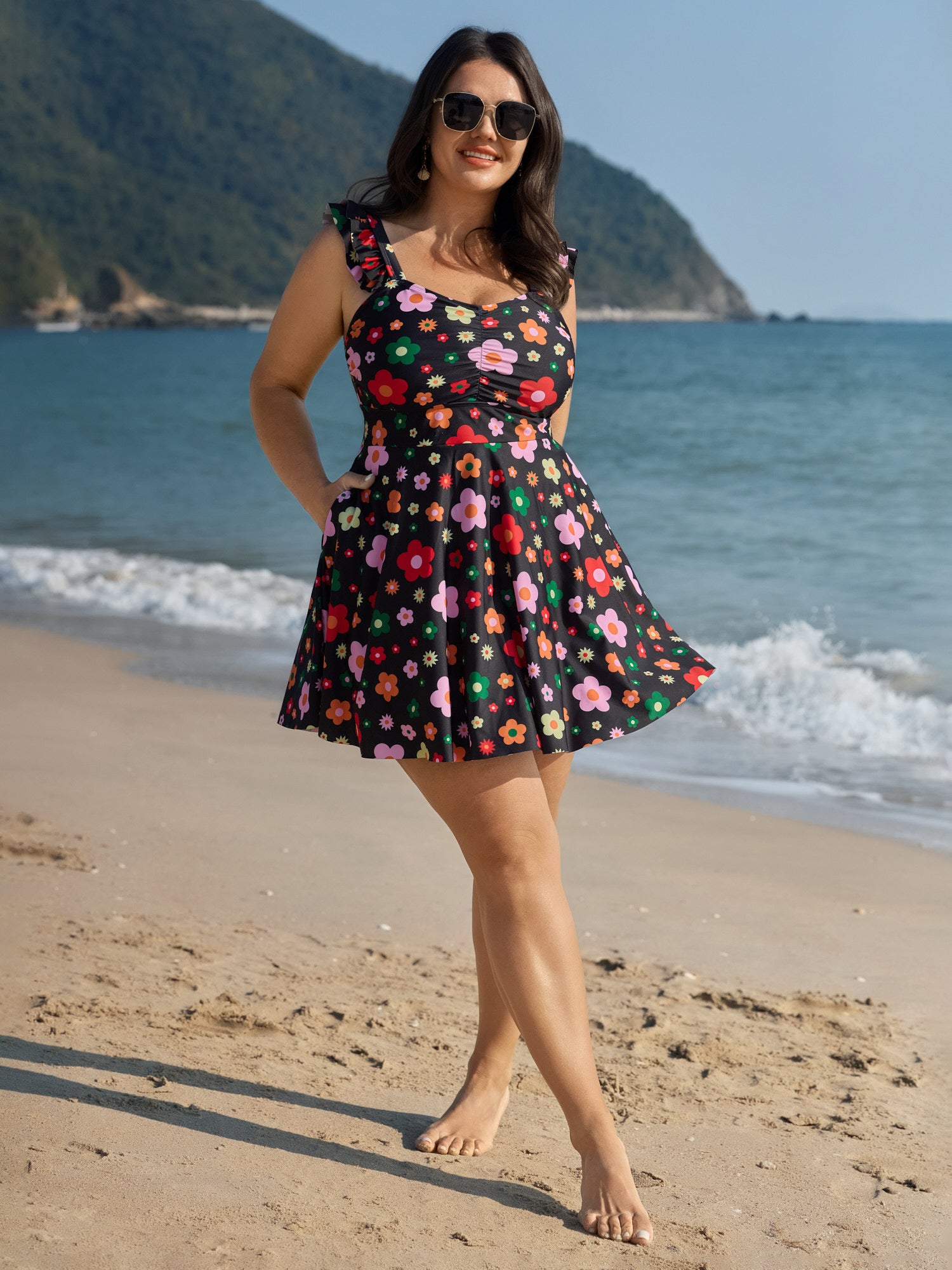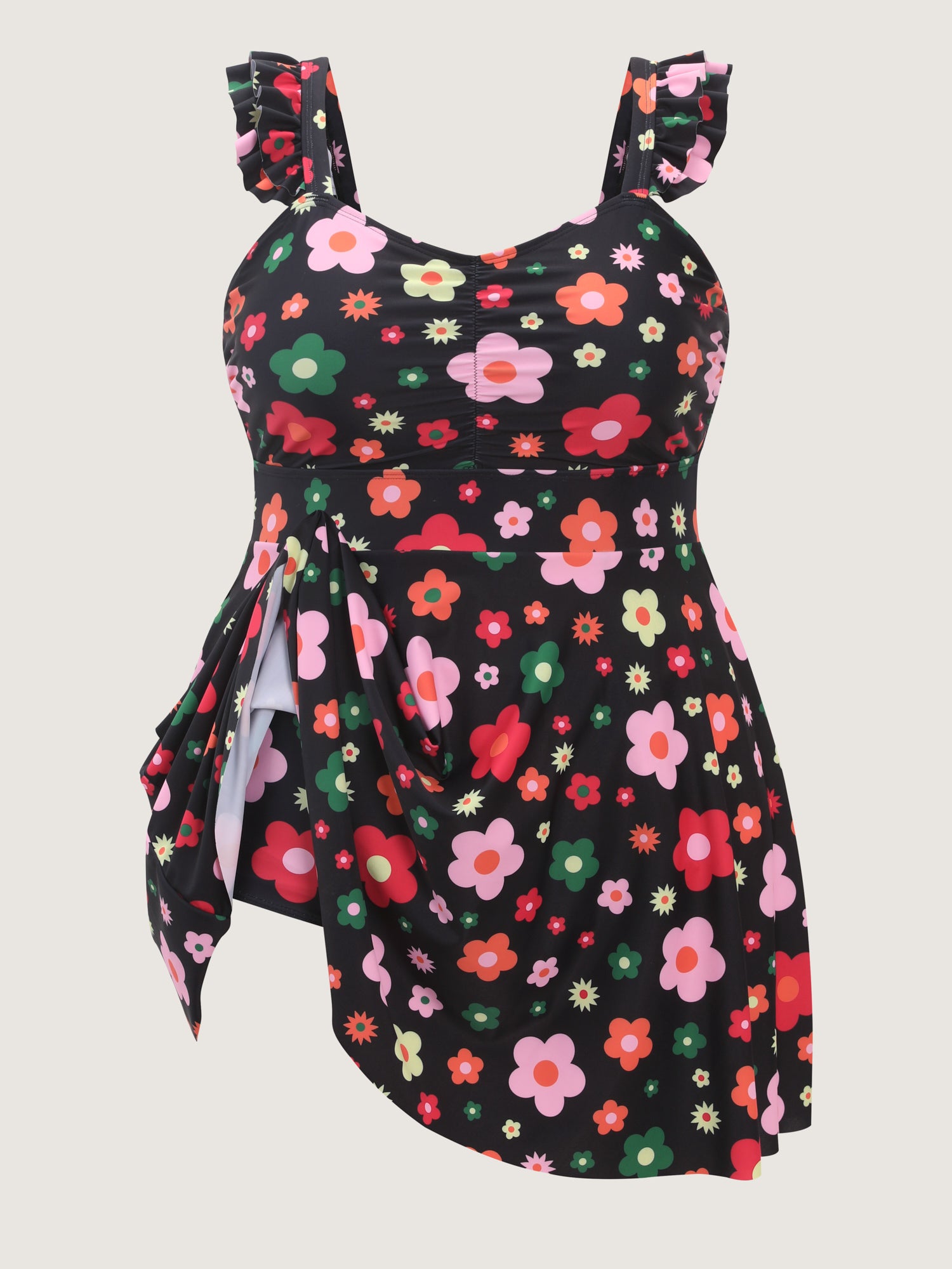 Shop Anti-Float Tie Floral Pattern Swim Dress now and redefine your style with confidence at BloomChic. Tailored for mid and plus-size women. This trendy Swimwear Women, sizes 10-30. Color:Black;Style:Resort;Cup Type:Removable cups;Coverage:Full;Neckline:Heart neckline;Sleeve Type:Sleeveless;Prints:Floral;Pocket:Side seam pocket;Belt:No-belt;Chest pad:Removable Padding;Lining:Lining;Closure Type:Non;Structural function:Cinched & Flared,Adaptive-Fit,Full Coverage,Anti-Float Ties;One-piece or split swim dresses:Built-in bottoms;Swimsuit types:Built-in Bikini Dress;Functional Fabric:Chlorine Resistant