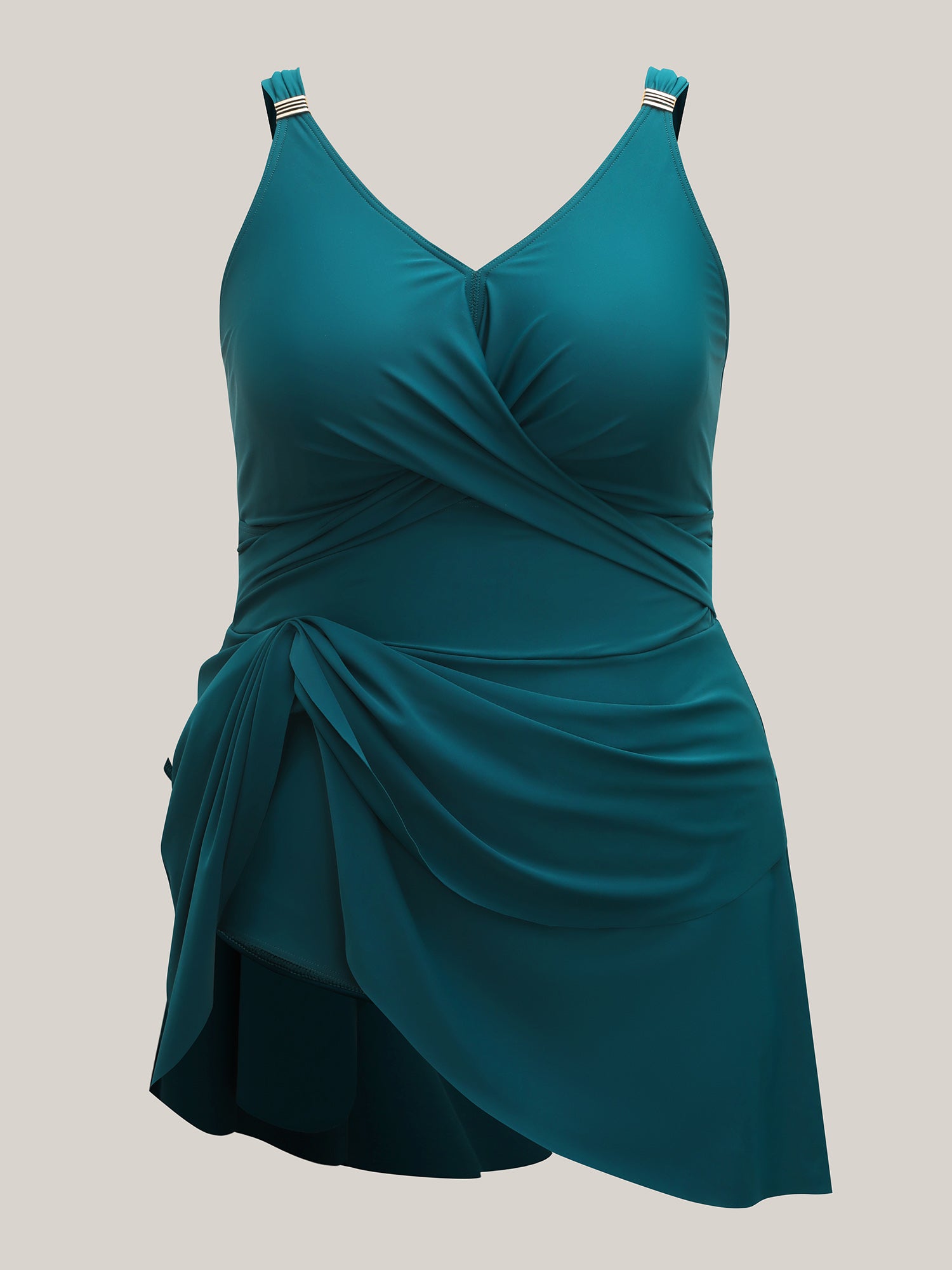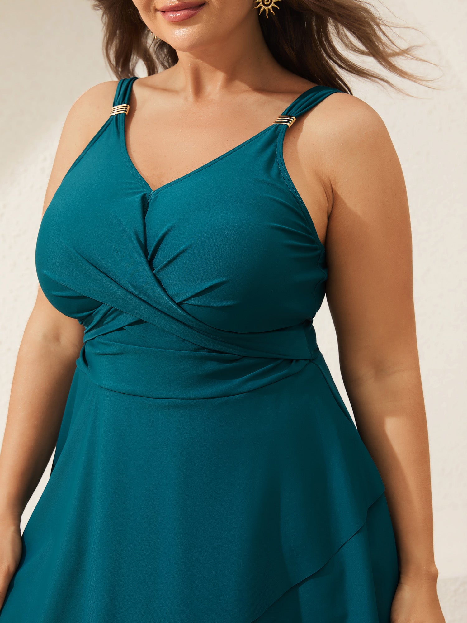 Shop Anti-Float Tie Twist Solid Swim Dress now and redefine your style with confidence at BloomChic. Tailored for mid and plus-size women. This trendy Swimwear Women, sizes 10-30. Color:Teal;Style:Beach;Cup Type:Removable cups;Neckline:V-neck;Sleeve Type:Sleeveless;Prints:Non;Details:Overlapping, Twist;Pocket:No-pocket;Belt:No-belt;Chest pad:Removable Padding;Lining:Lining;Closure Type:Non;Structural function:Cinched & Flared,Adaptive-Fit,Full Coverage,Anti-Float Ties;One-piece or split swim dresses:Built-in bottoms