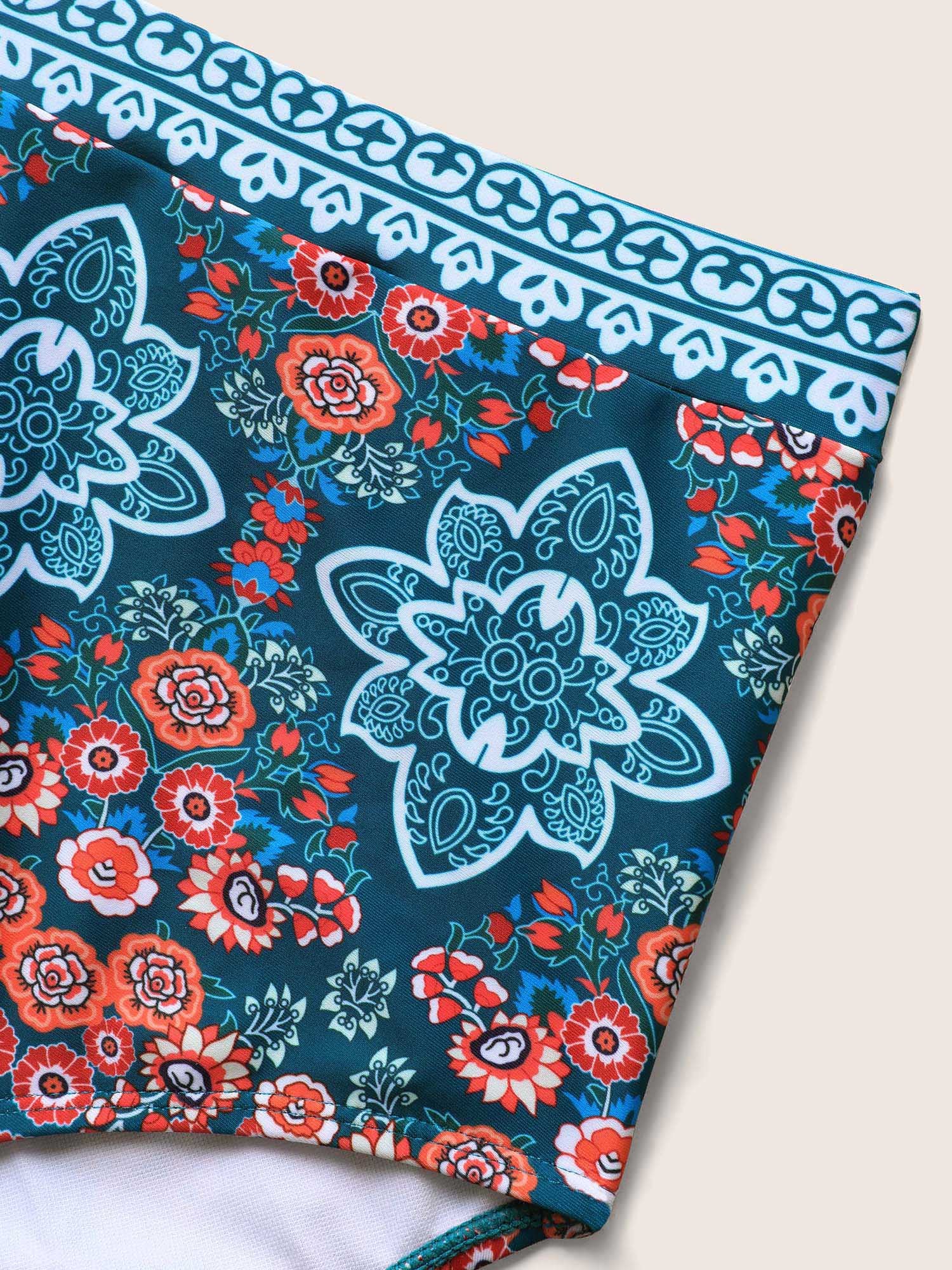 Boho Print Surplice Neck Adjustable Swim Dress