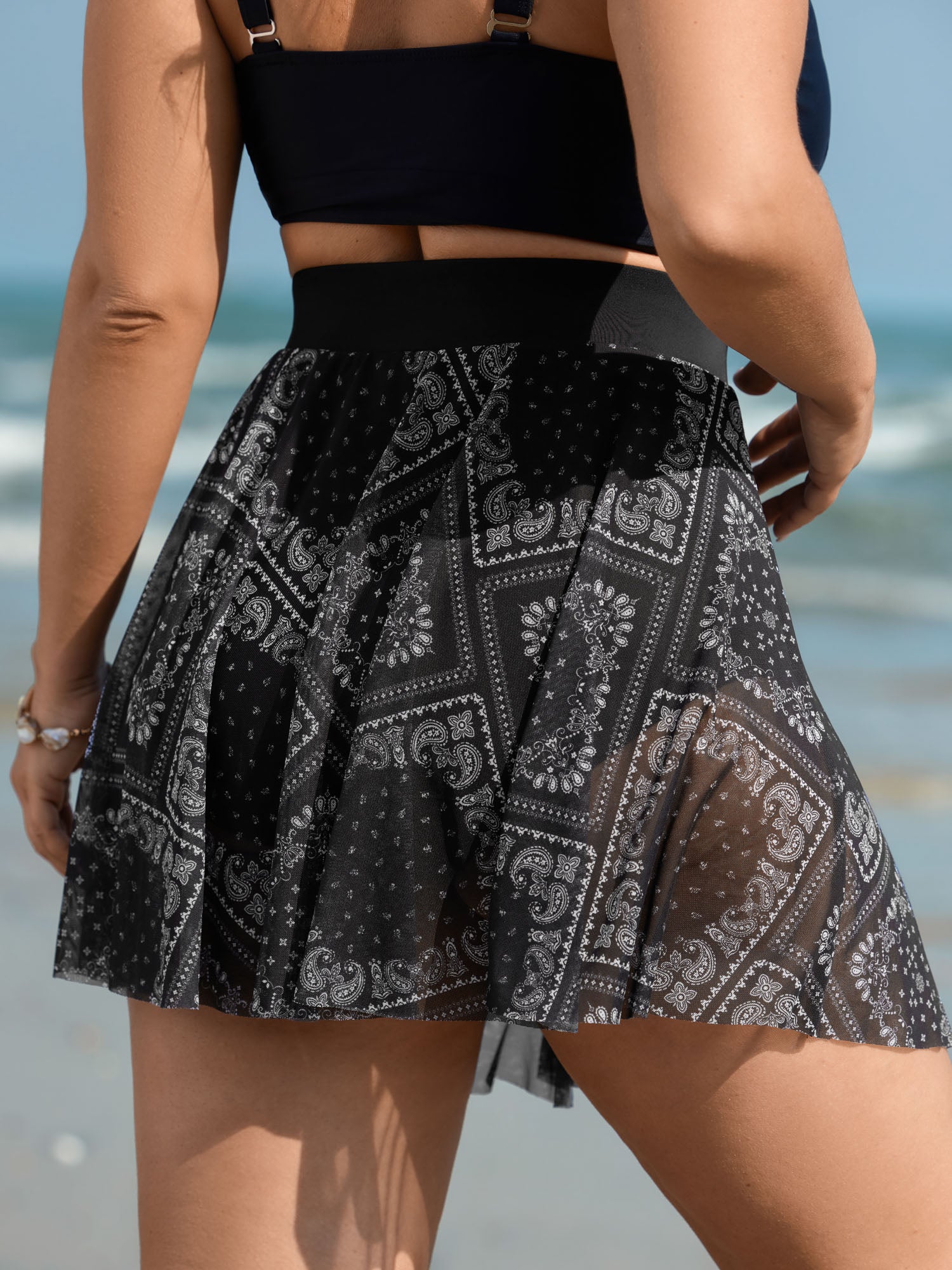 Shop Boho Print Lace Trim Swim Bottoms now and redefine your style with confidence at BloomChic. Tailored for mid and plus-size women. This trendy Swimwear Women, sizes 10-30. Color:Black;Style:Resort;Waist Design:High Rise;Prints:Bohemian print;Details:Tie knot;Pocket:No-pocket;Belt:No-belt;Lining:Lining;Closure Type:Non;Structural function:Cinched & Flared,Full Coverage,Adaptive-Fit,Waist-Sculpt;Swimsuit types:Sarong Bottoms