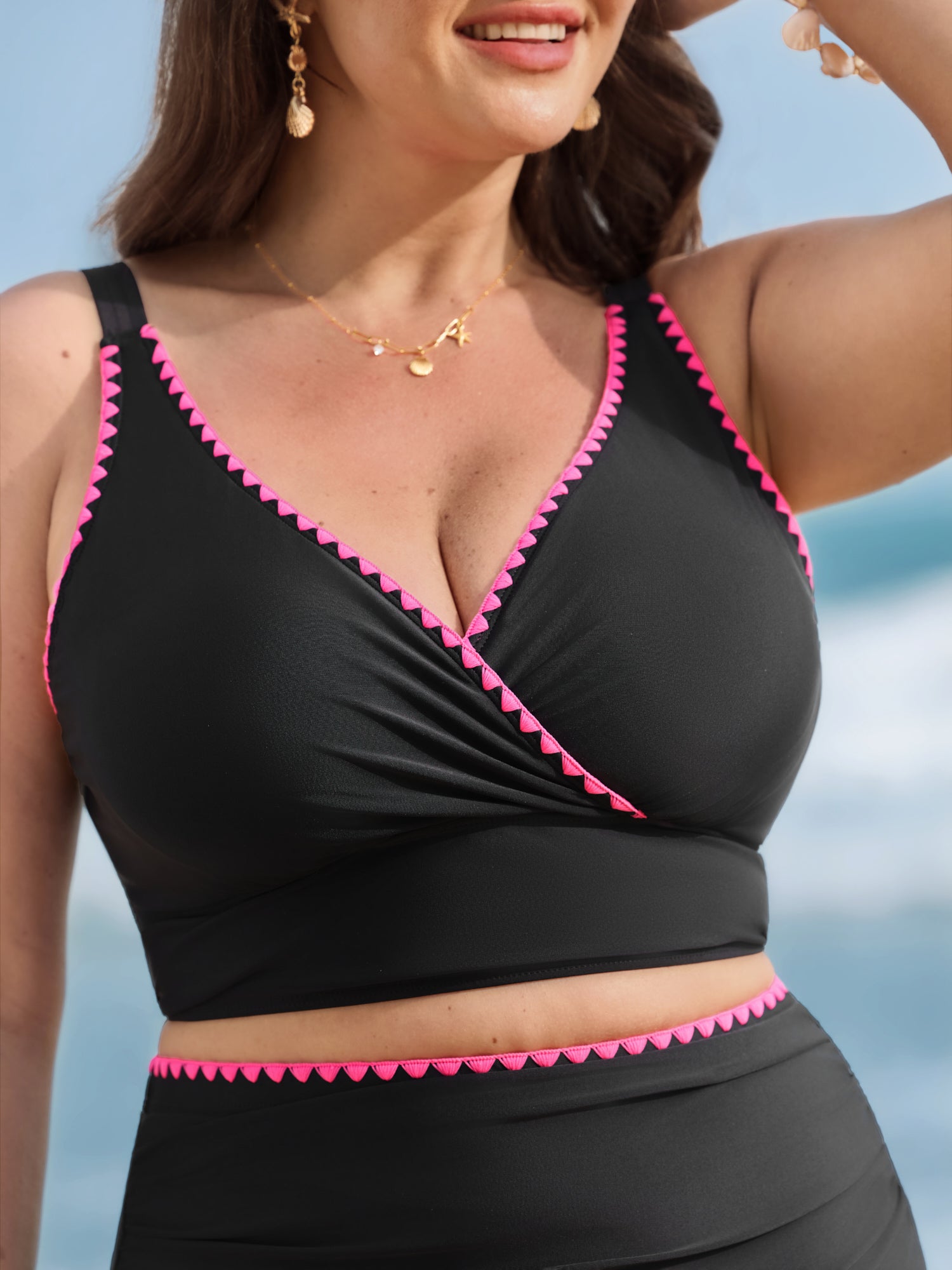 Shop Color Contrast Embroidered Swim Top now and redefine your style with confidence at BloomChic. Tailored for mid and plus-size women. This trendy Swimwear Women, sizes 10-30. Color:Black;Style:Resort;Coverage:Full;Prints:Non;Details:Embroidered, Contrast;Pocket:No-pocket;Belt:No-belt;Chest pad:Removable Padding;Structural function:Adaptive-Fit