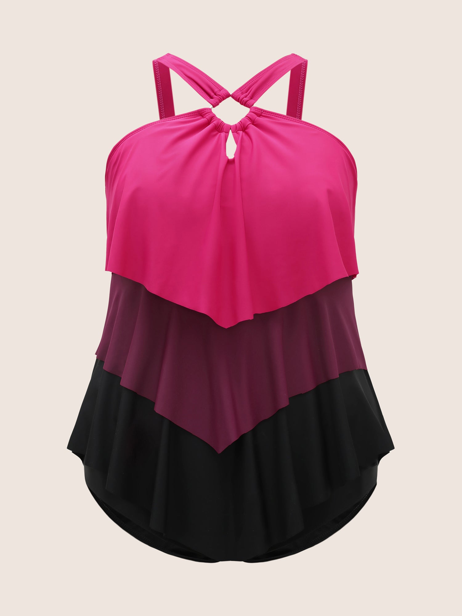 Shop Contrast Cut Out Tiered Hem One Piece Swimsuit now and redefine your style with confidence at BloomChic. Tailored for mid and plus-size women. This trendy Swimwear Women, sizes 10-30. Season:Summer;Color:Rosered;Style:Beach Vacation;Cup Type:Removable cups;Waist Design:High Rise;Neckline:Halter neck;Sleeve Type:Sleeveless;Prints:Non;Details:Cut-Out, Contrast;Pocket:No-pocket;Belt:No-belt;Chest pad:Removable Padding;Lining:Lining;Closure Type:Non