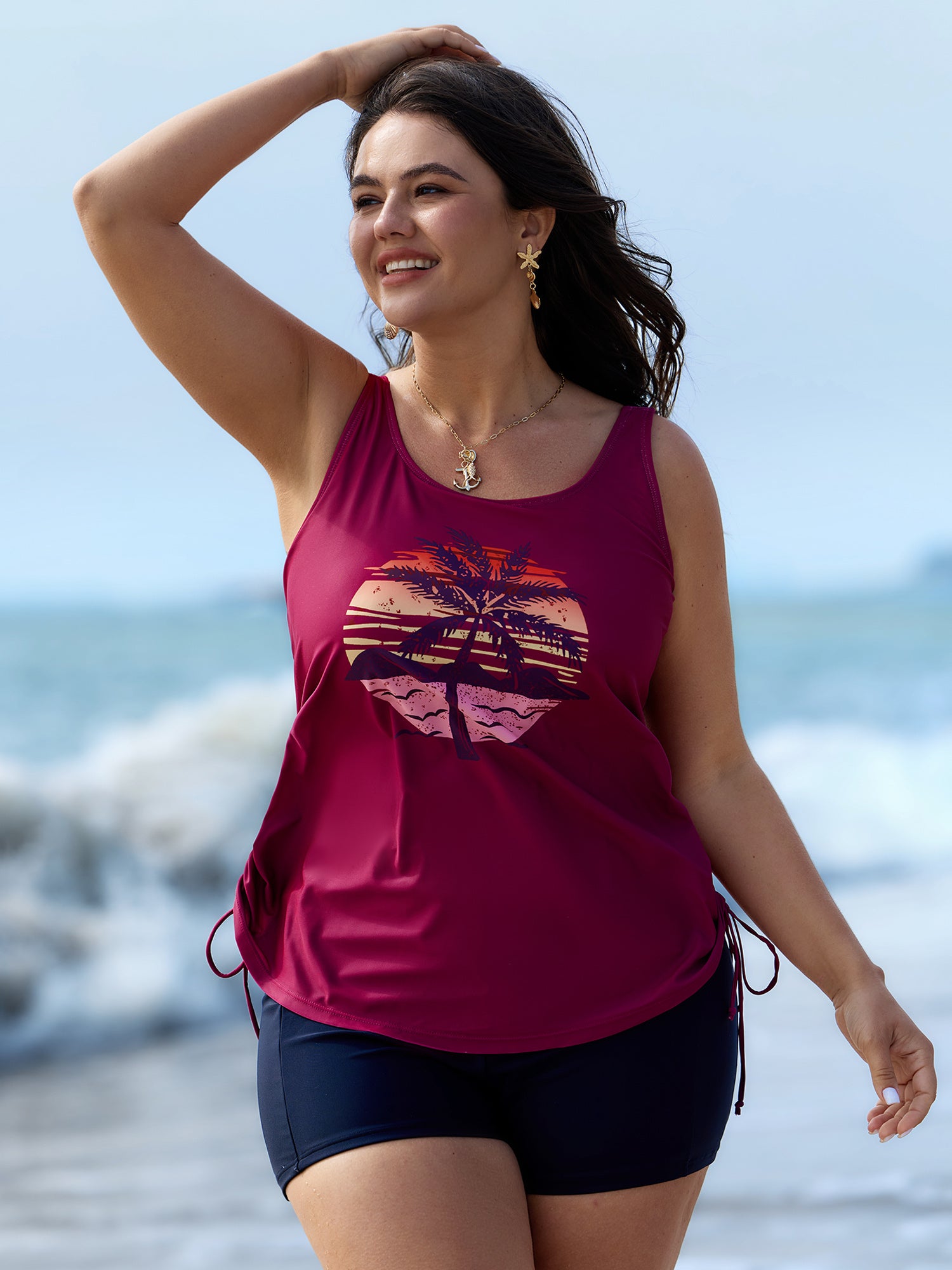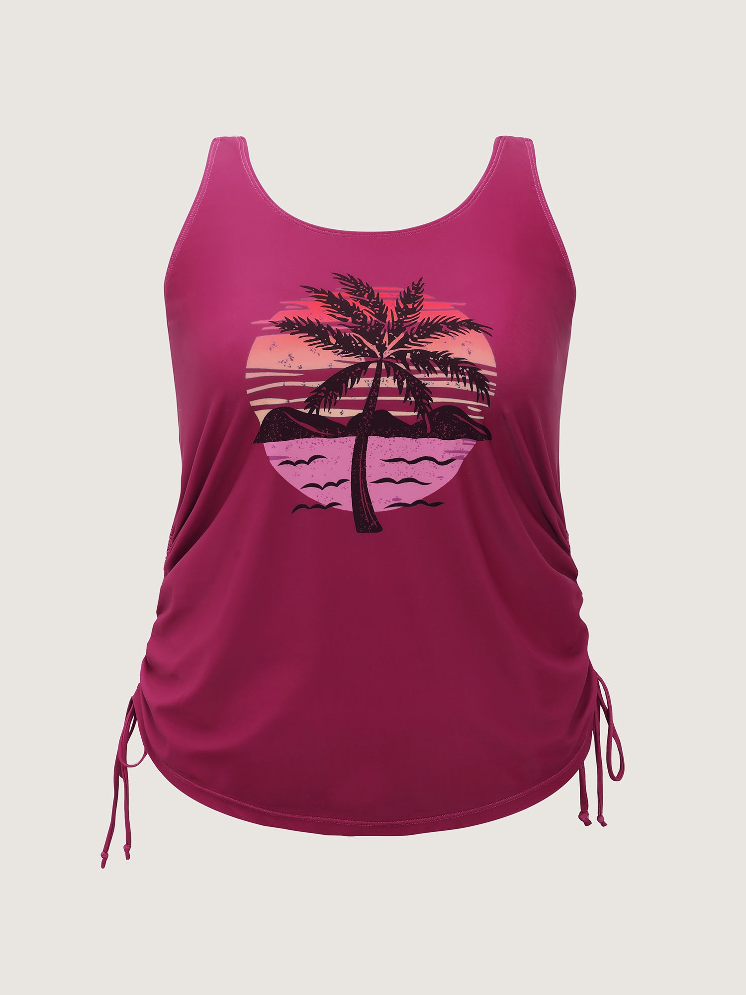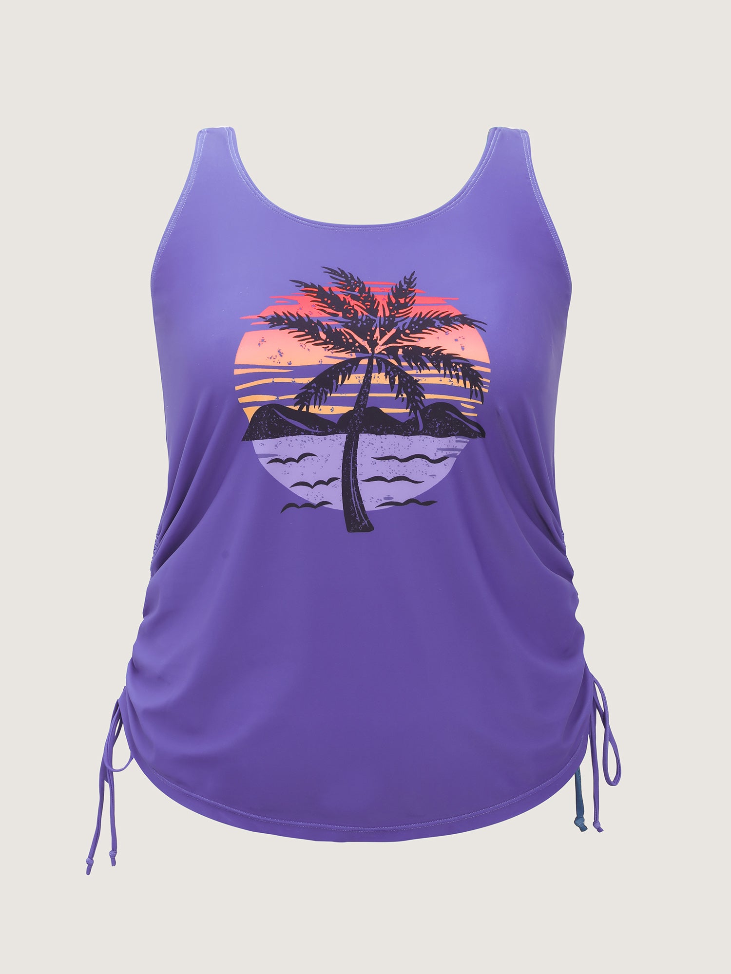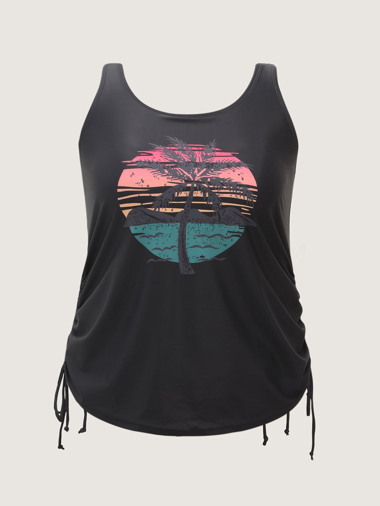 Shop Island Print Drawstring Adjustable Swim Top now and redefine your style with confidence at BloomChic. Tailored for mid and plus-size women. This trendy Swimwear Women, sizes 10-30. Color:Teal, Black, Indigo, Emerald, Eggplant, Mauve, Army Green, Midnight, Rosered, Sky Blue, Lilac;Style:Resort Vacation;Cup Type:Fixed cups;Pattern Type:Tropical;Prints:Landscape pattern;Details:Drawstring, Contrast;Pocket:No-pocket;Belt:No-belt;Chest pad:Non-removable padding