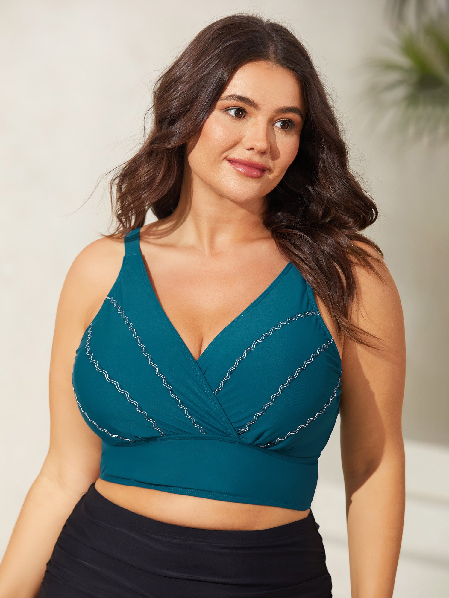 Embroidered Surplice Neck Adjustable Swim Top