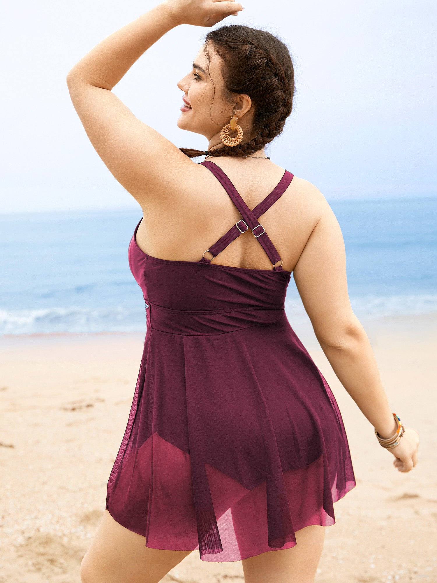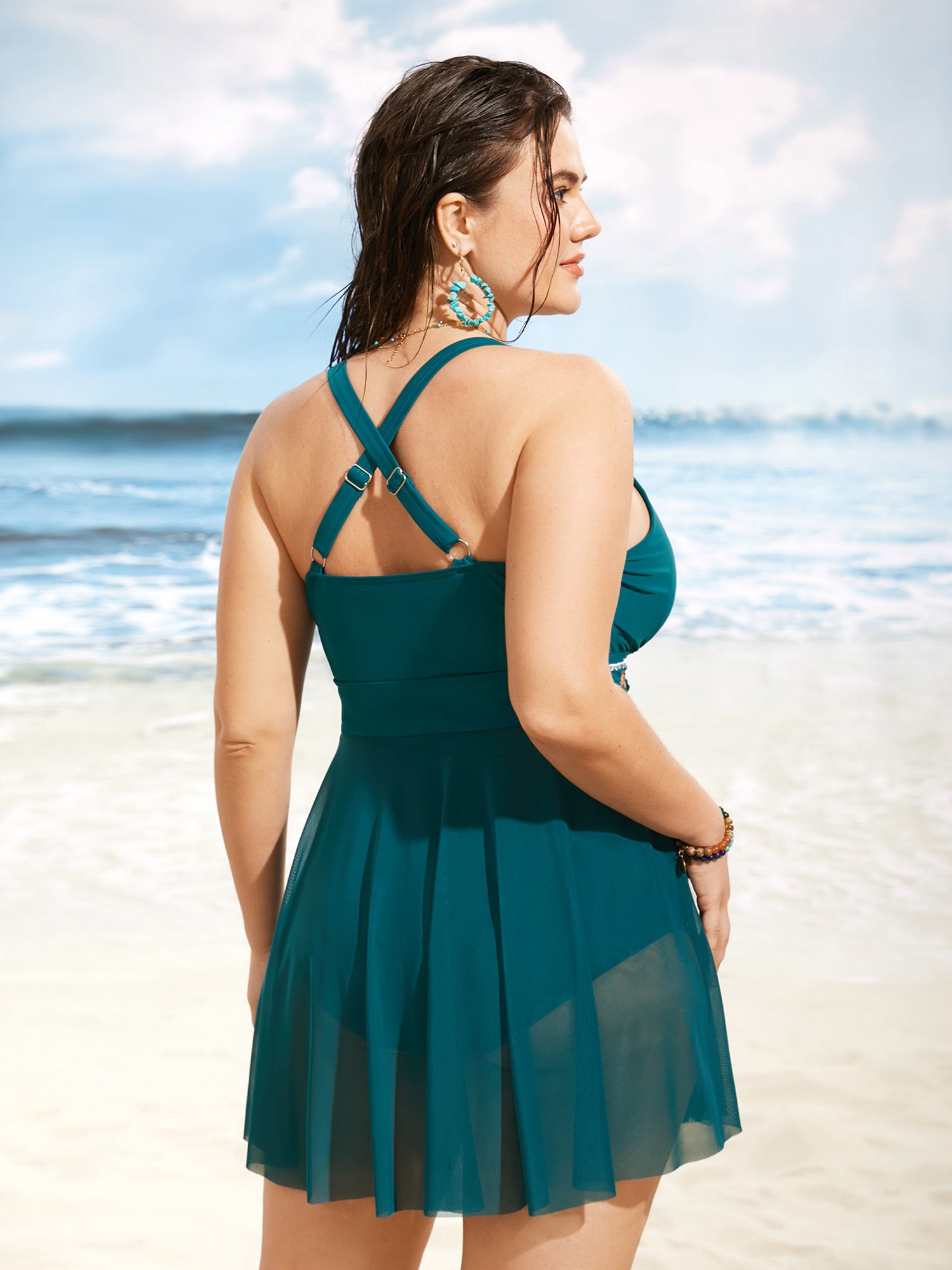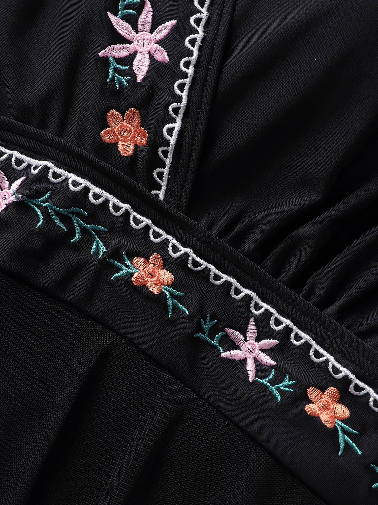 Shop Floral Embroidered Overlap Collar Swim Dress now and redefine your style with confidence at BloomChic. Tailored for mid and plus-size women. This trendy Swimwear Women, sizes 10-30. Color:Black,Indigo,ArmyGreen,RedViolet,Cyan;Style:Beach Vacation;Cup Type:Removable cups;Neckline:Overlap Collar;Sleeve Type:Sleeveless;Prints:Non;Details:Embroidered, See through;Pocket:No-pocket;Belt:No-belt;Chest pad:Removable Padding;Lining:Lining;Closure Type:Non