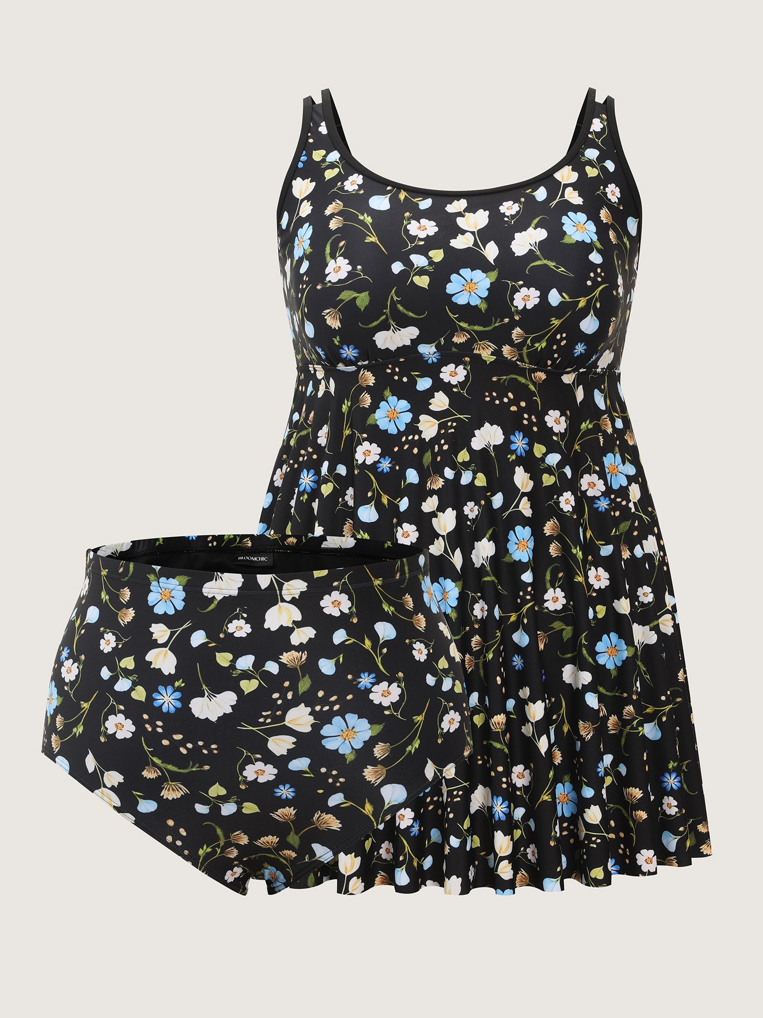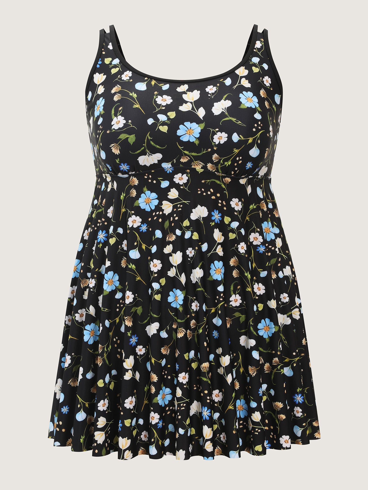 Shop Floral Print Cinched Flared Swim Dress now and redefine your style with confidence at BloomChic. Tailored for mid and plus-size women. This trendy Swimwear Women, sizes 10-30. Color:Black;Style:Resort;Cup Type:Removable cups;Coverage:Full;Neckline:U-neck;Sleeve Type:Sleeveless;Prints:Ditsy floral;Pocket:No-pocket;Belt:No-belt;Chest pad:Removable Padding;Lining:Lining;Closure Type:Non;Structural function:Adaptive-Fit,Tummy-Sculpt;One-piece or split swim dresses:Includes bikini bottoms;Swimsuit types:Bikini Shorts Dress Set