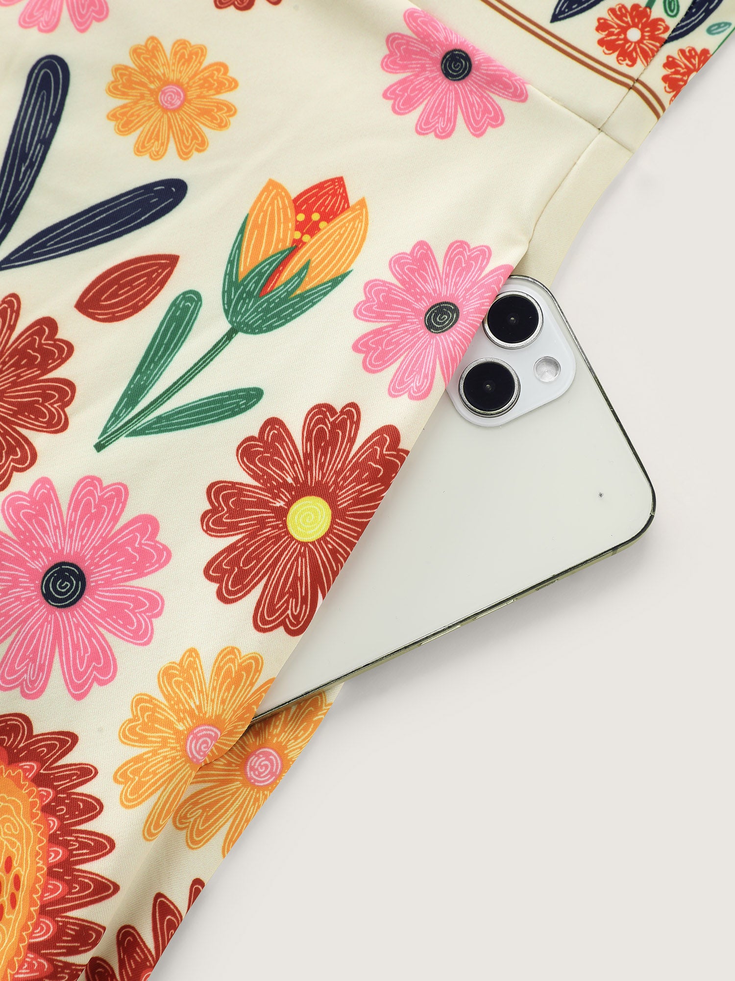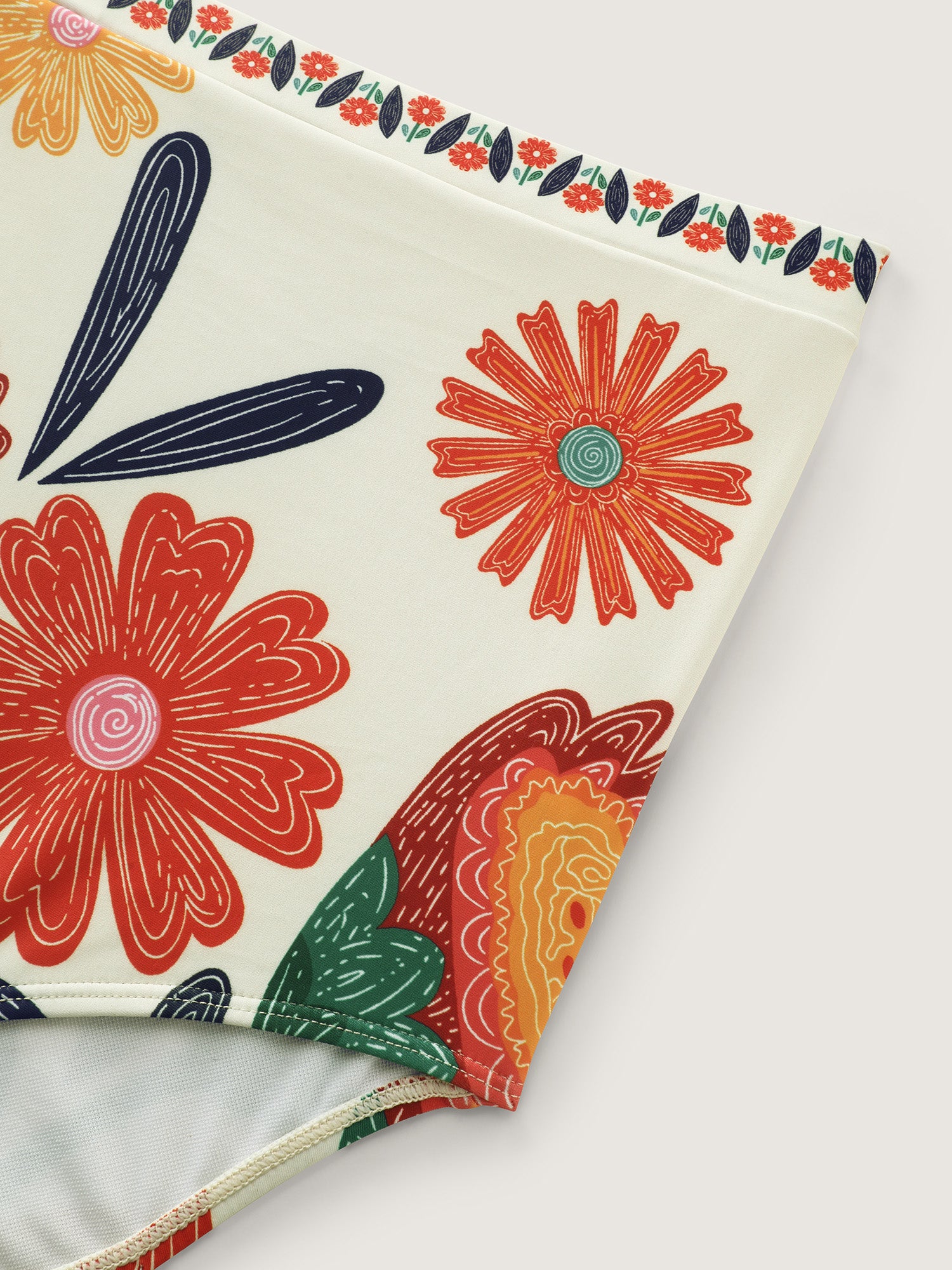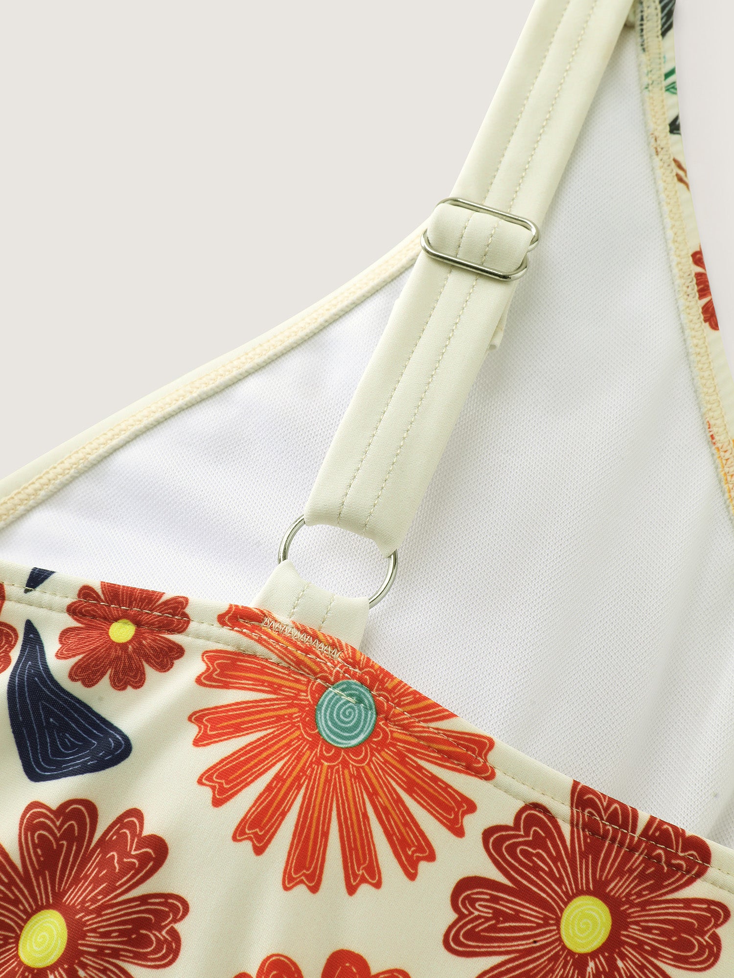 Floral Surplice Neckline Pockets Swim Dress