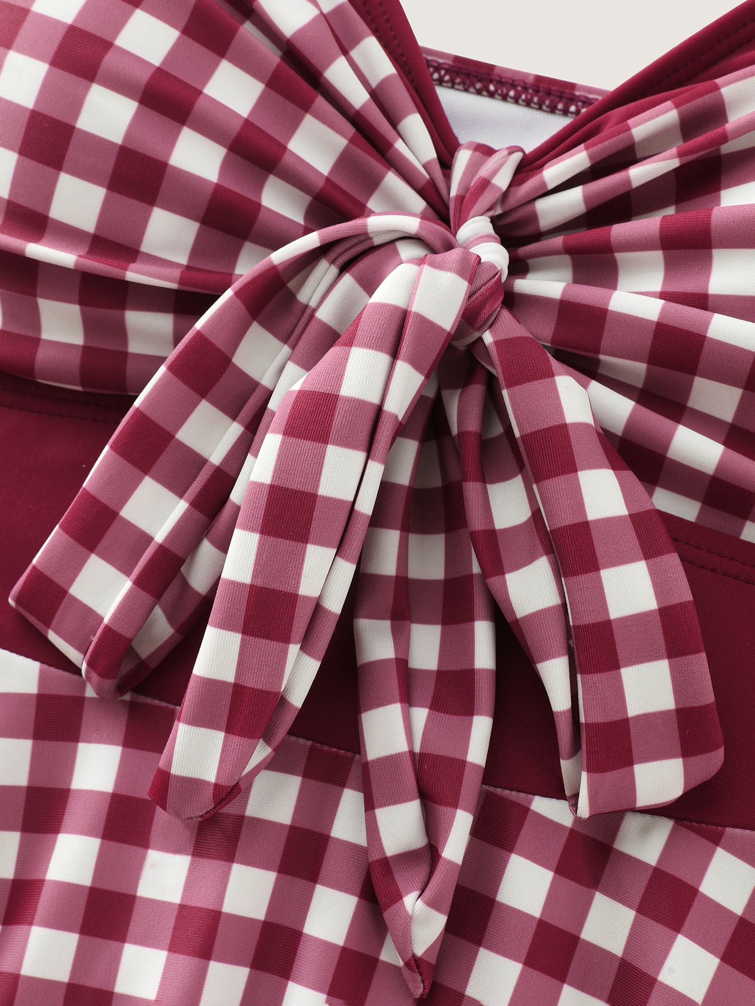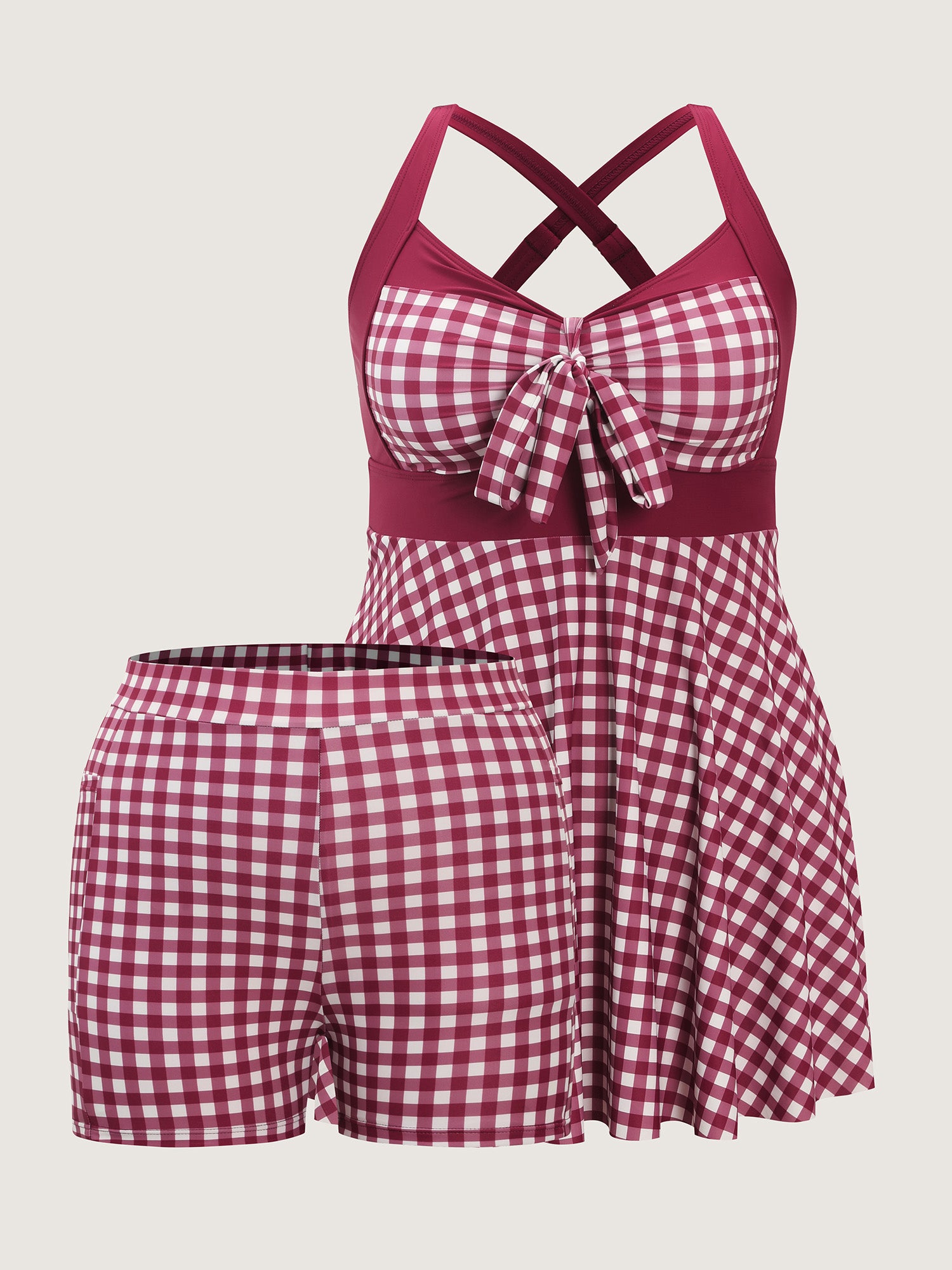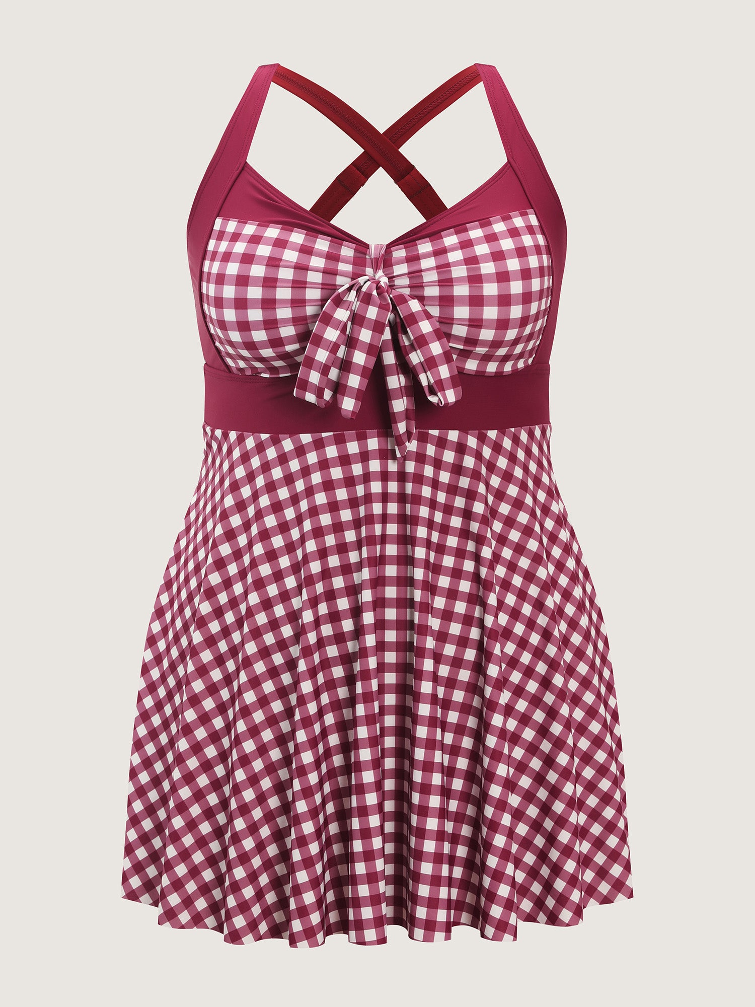 Shop Gingham Print Color Contrast Swim Dress now and redefine your style with confidence at BloomChic. Tailored for mid and plus-size women. This trendy Swimwear Women, sizes 10-30. Color:Scarlet Red;Style:Resort;Cup Type:Removable cups;Coverage:Full;Neckline:Heart neckline;Sleeve Type:Sleeveless;Prints:Plaid;Details:Contrast, Tie knot;Pocket:Patch pocket;Belt:No-belt;Chest pad:Removable Padding;Lining:Lining;Closure Type:Non;Structural function:Full Coverage,Cinched & Flared,Adaptive-Fit;One-piece or split swim dresses:Includes bikini bottoms;Swimsuit types:Borad Shorts Dress Set;Functional Fabric:Chlorine Resistant