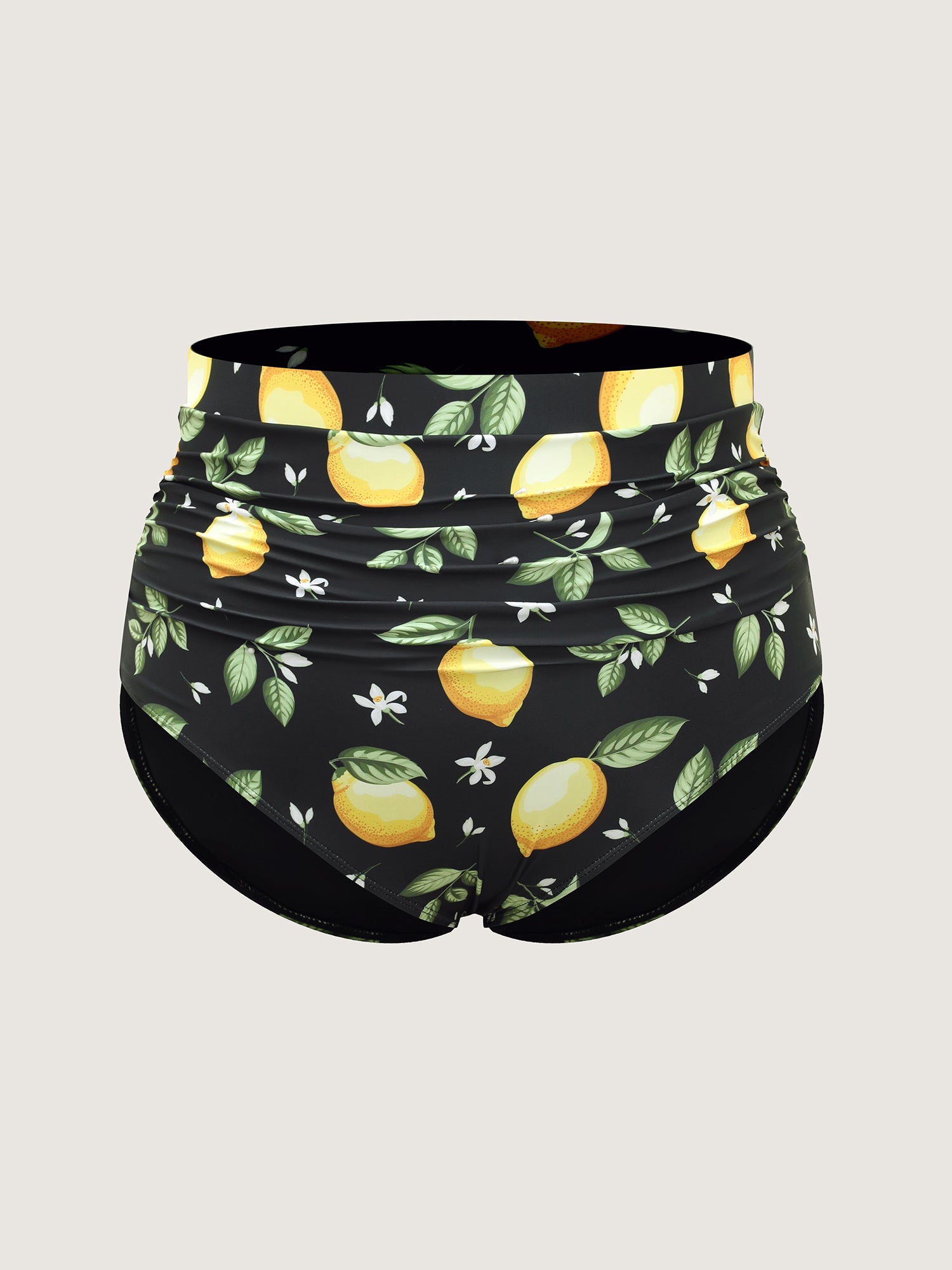Lemon Print Pleated Tight-Fit Swim Bottoms