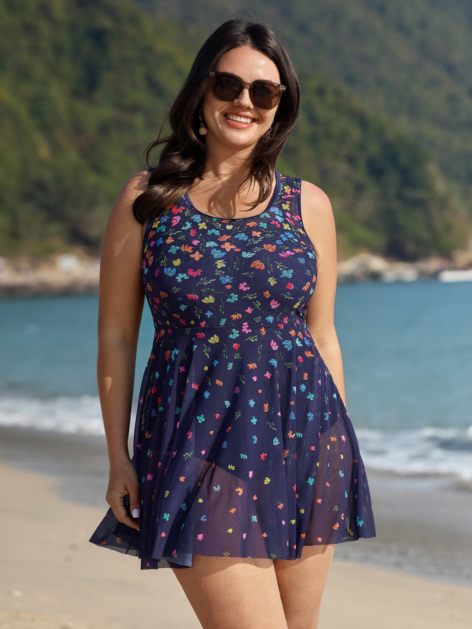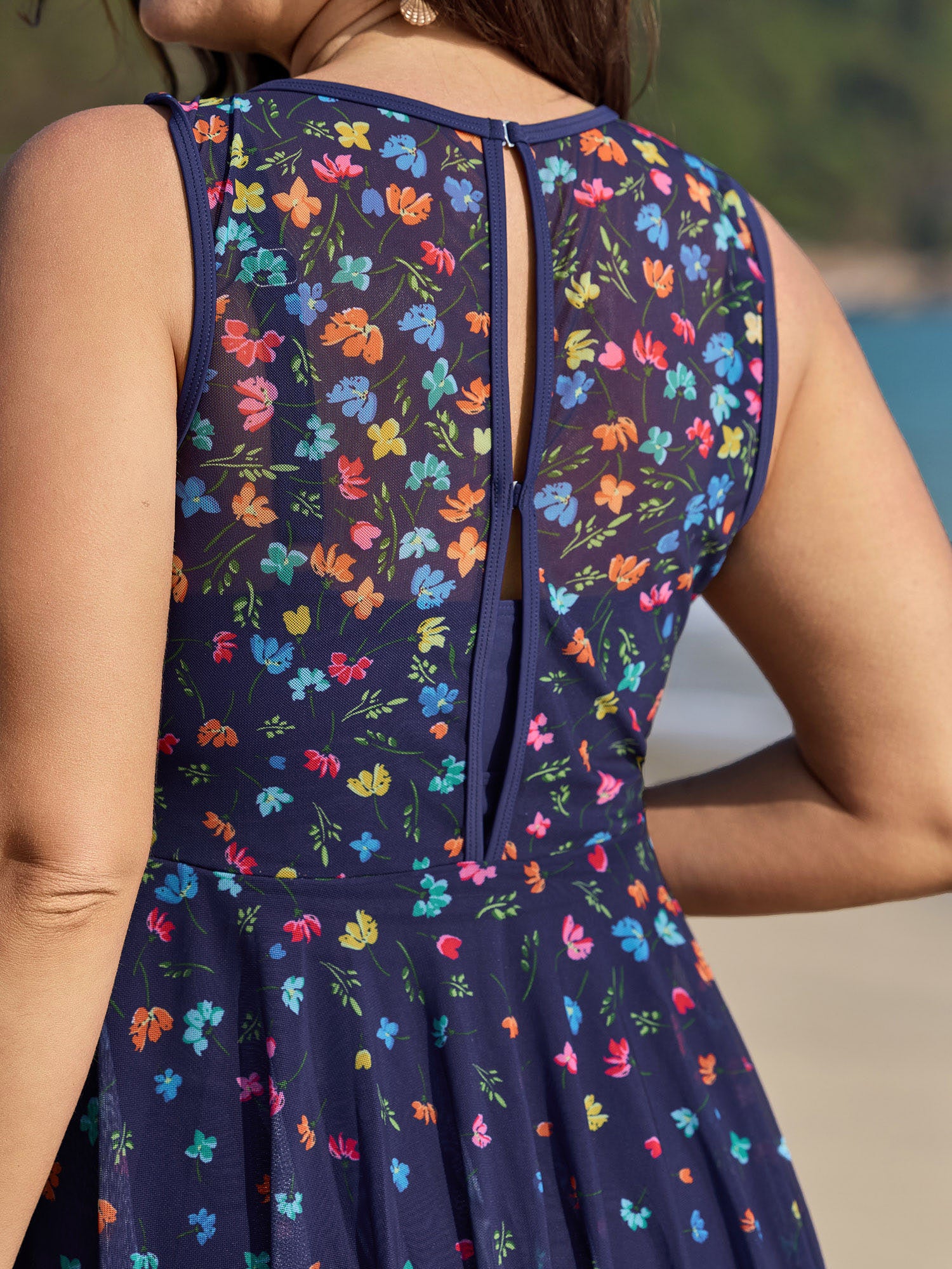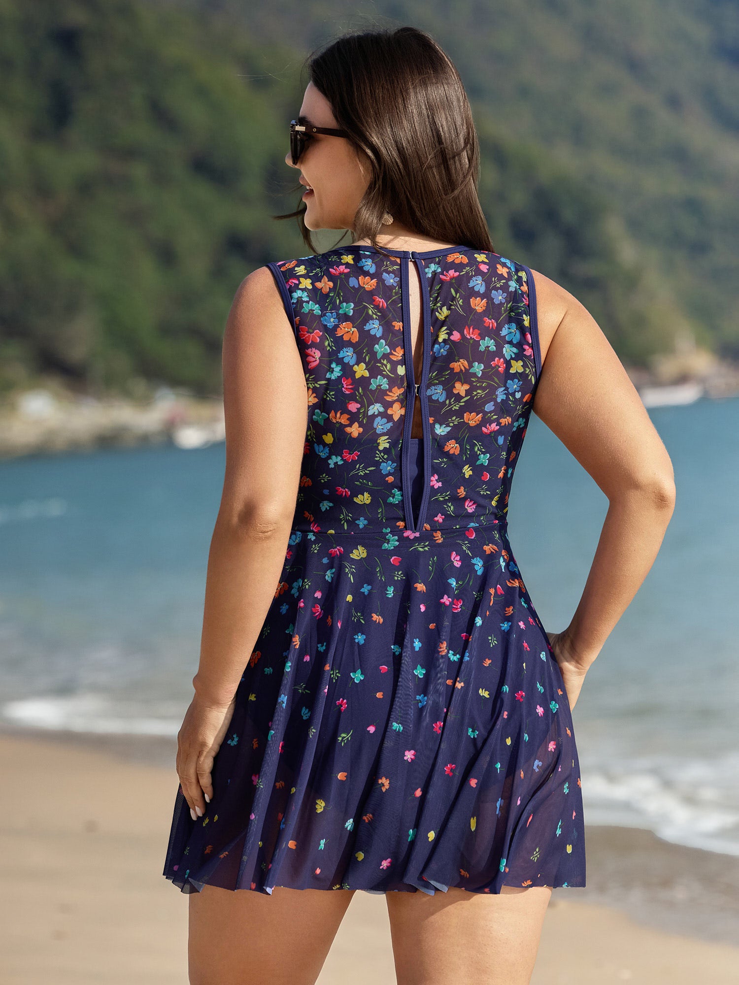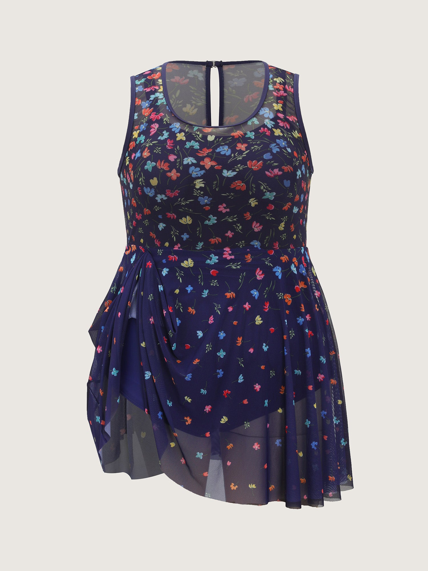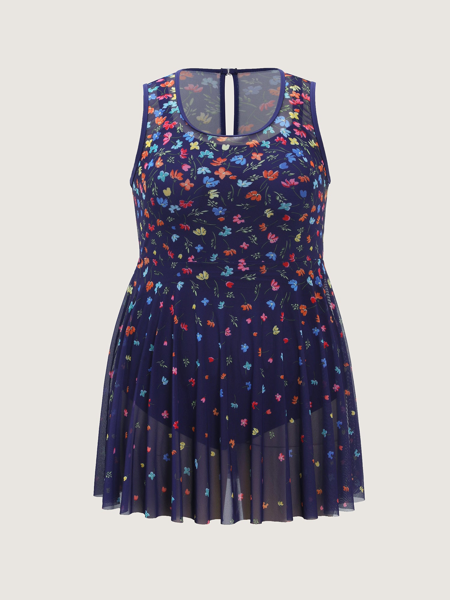 Shop Multi-Color Print Sheer Swim Dress now and redefine your style with confidence at BloomChic. Tailored for mid and plus-size women. This trendy Swimwear Women, sizes 10-30. Color:Indigo;Style:Resort;Cup Type:Removable cups;Coverage:Full;Neckline:Round Neck;Sleeve Type:Sleeveless;Prints:Floral;Pocket:No-pocket;Belt:No-belt;Chest pad:Removable Padding;Lining:Lining;Closure Type:Non;Structural function:Cinched & Flared,Adaptive-Fit,Full Coverage;One-piece or split swim dresses:Built-in bottoms;Swimsuit types:Built-in Bikini Dress