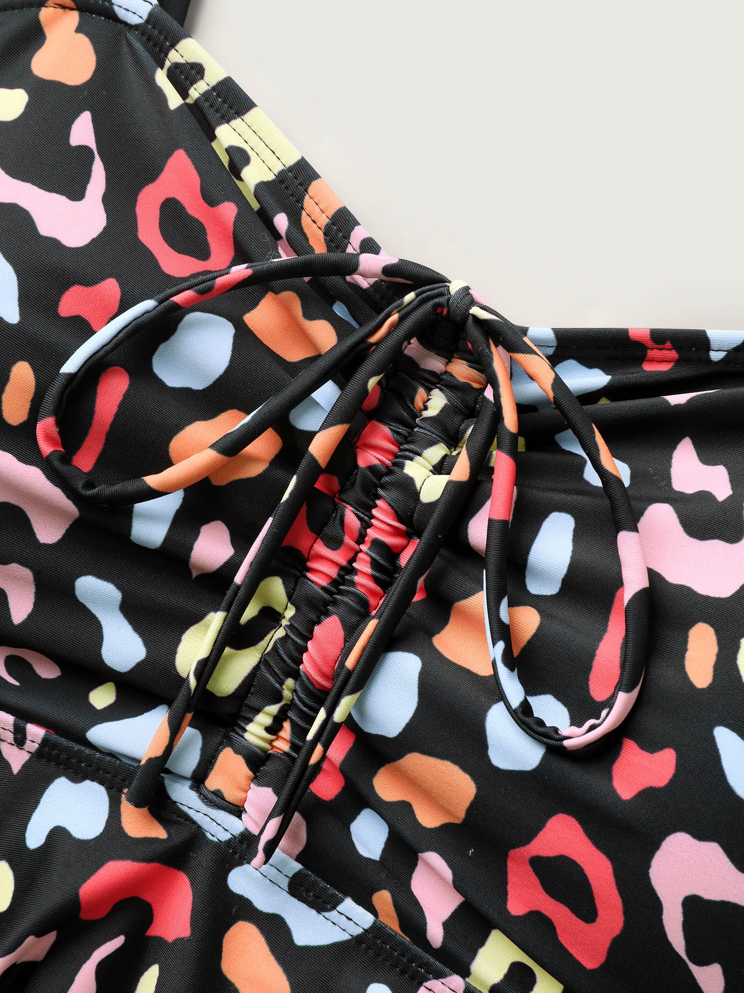 Multicolor Leopard Print Drawstring Swim Top