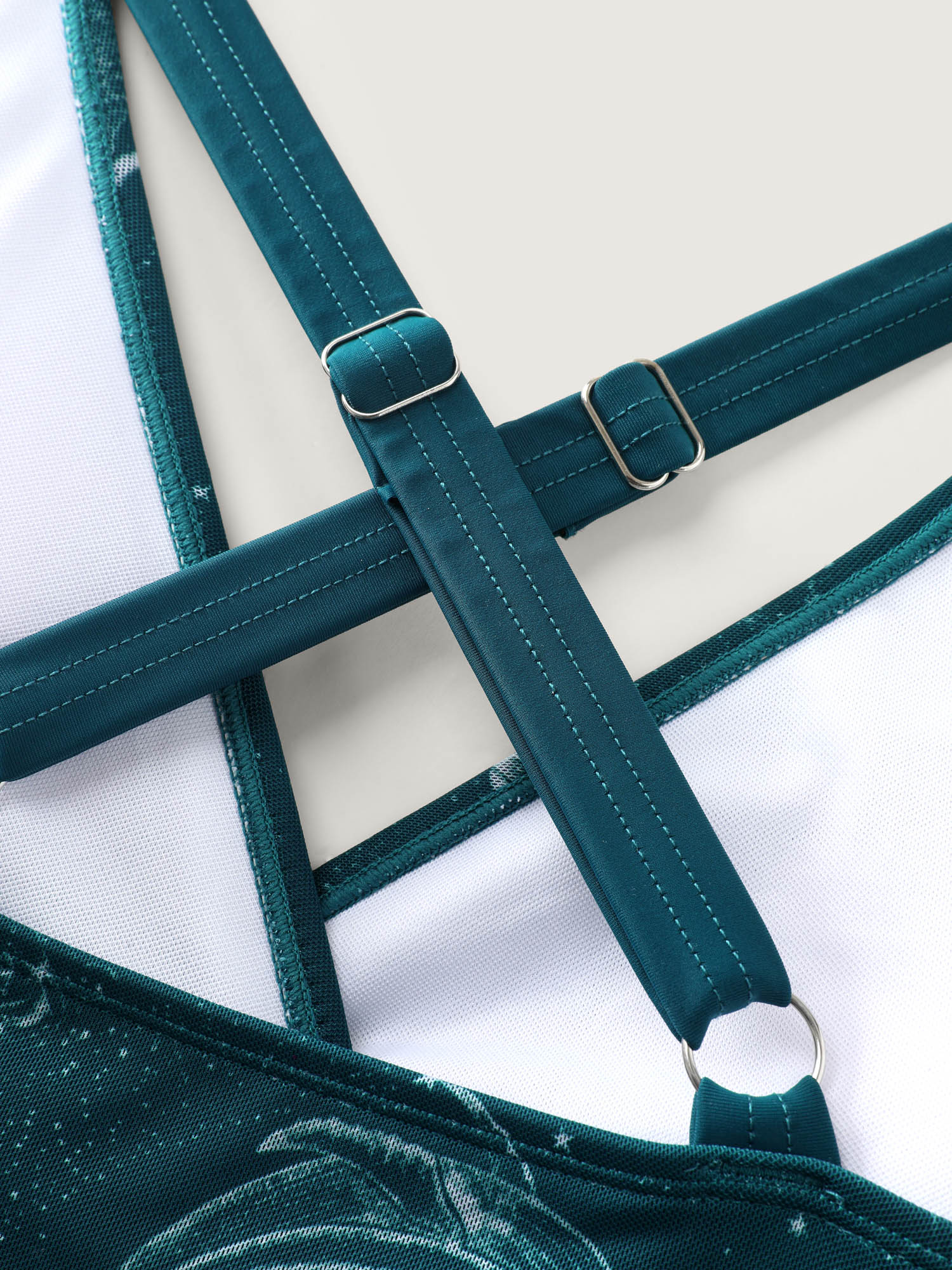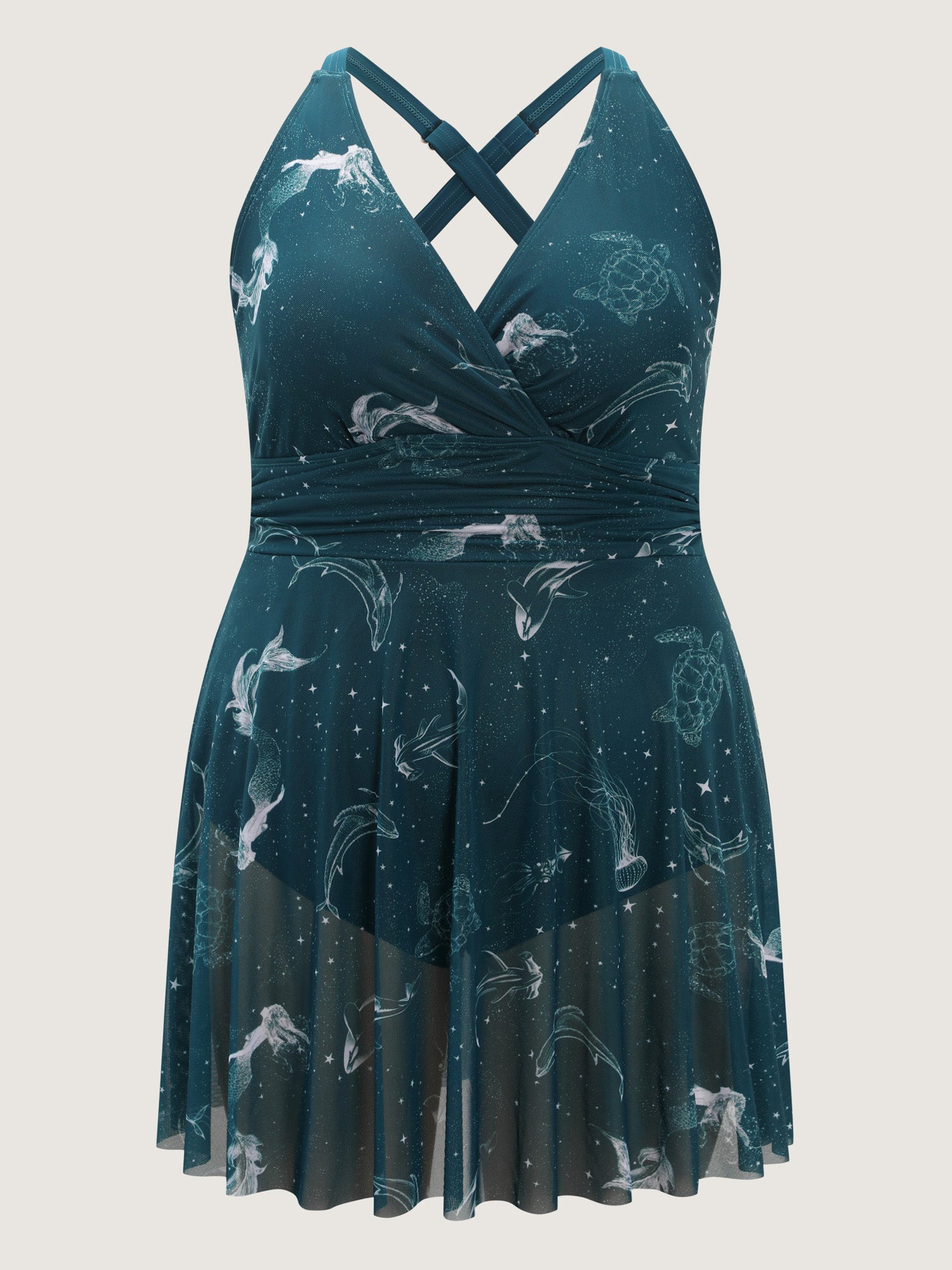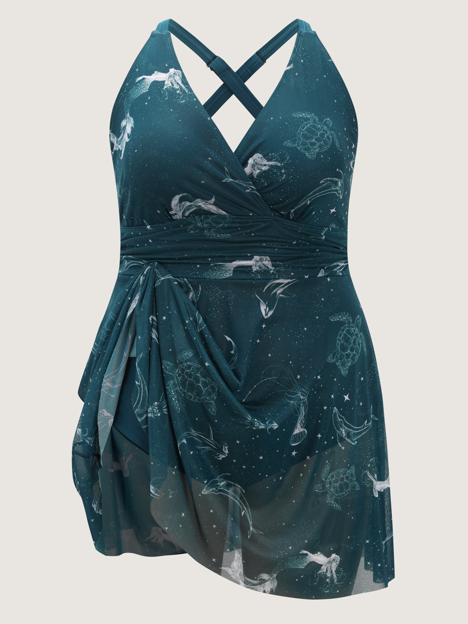 Ocean Pattern Mesh Surplice Swim Dress