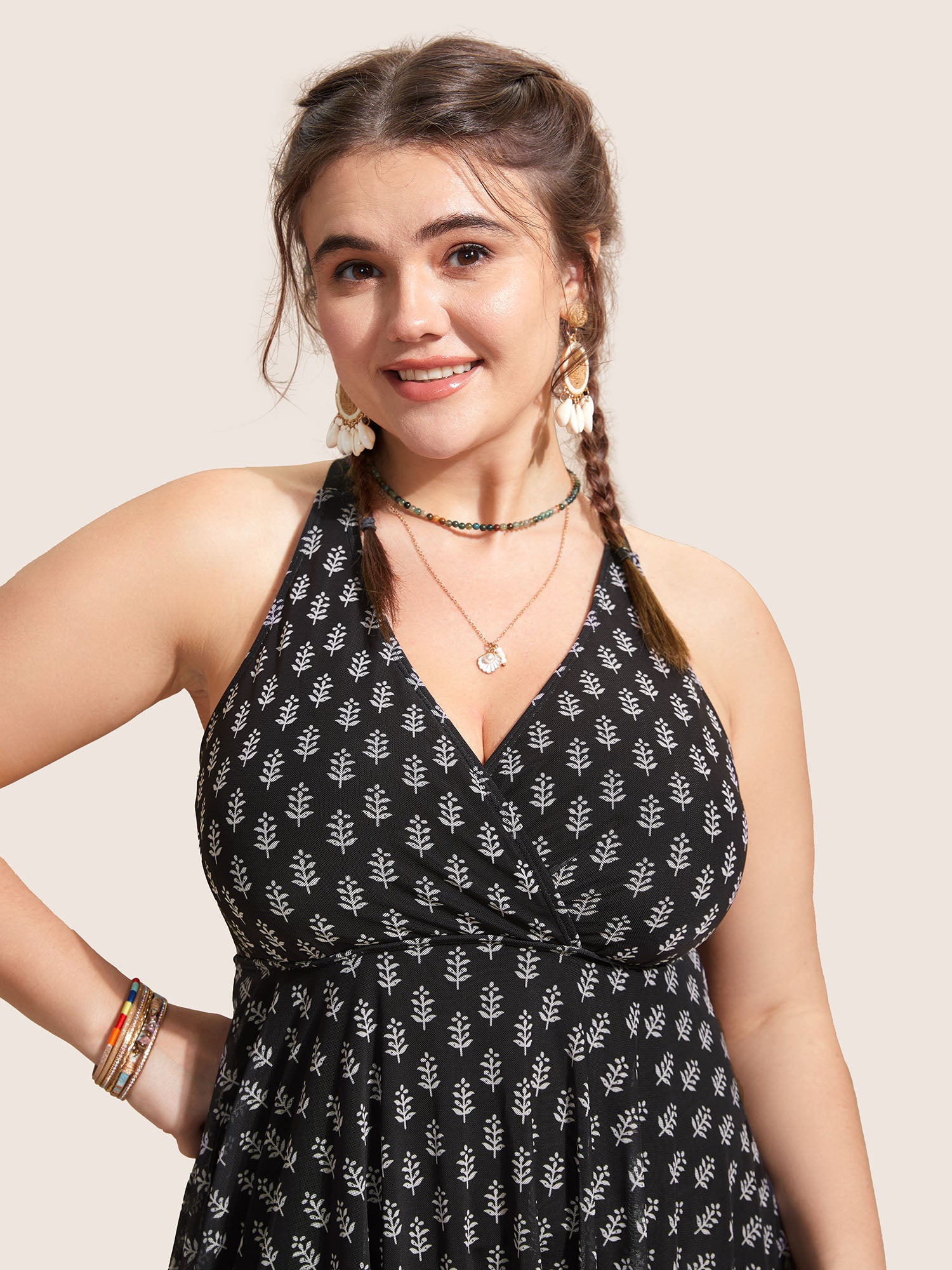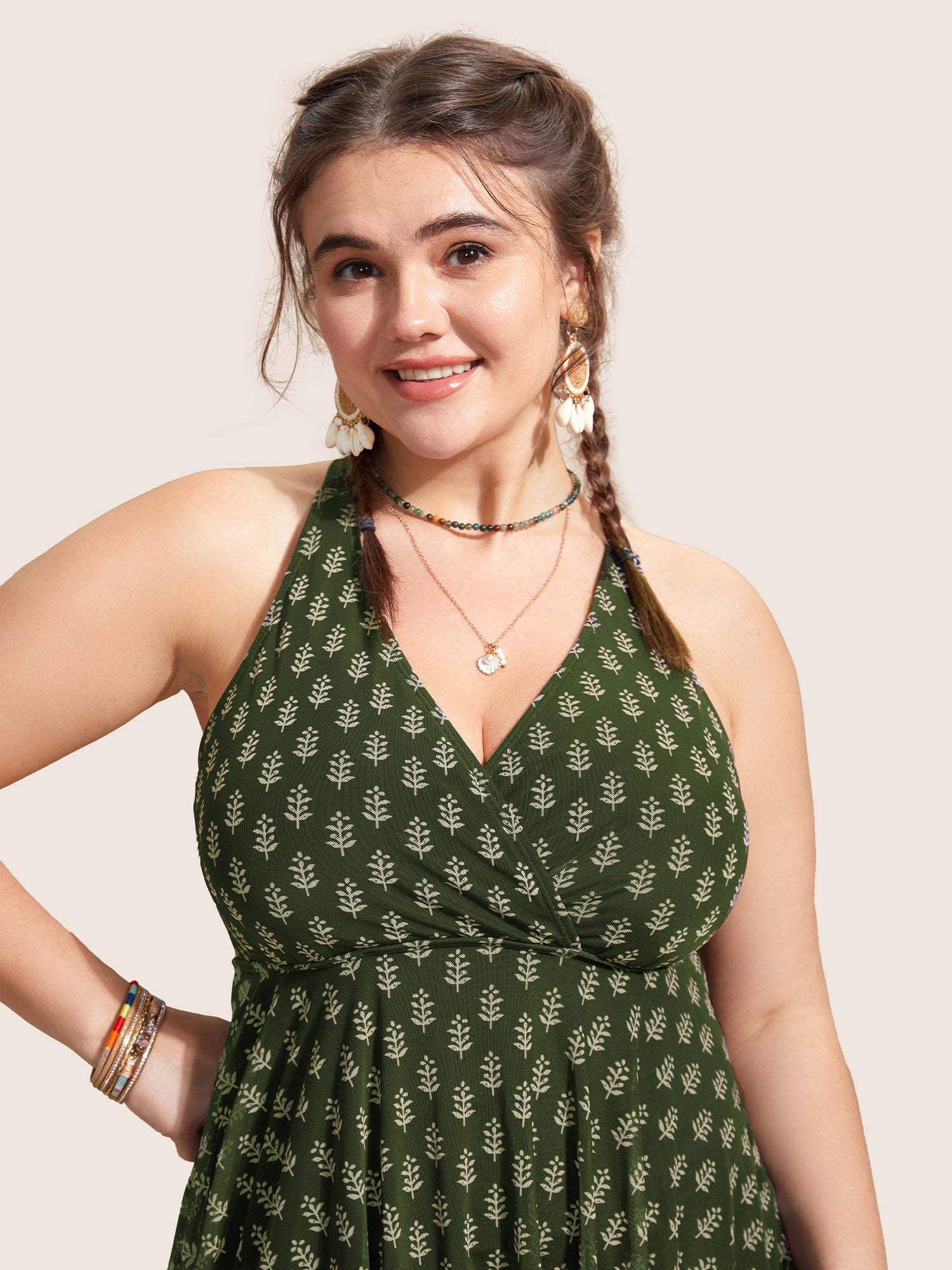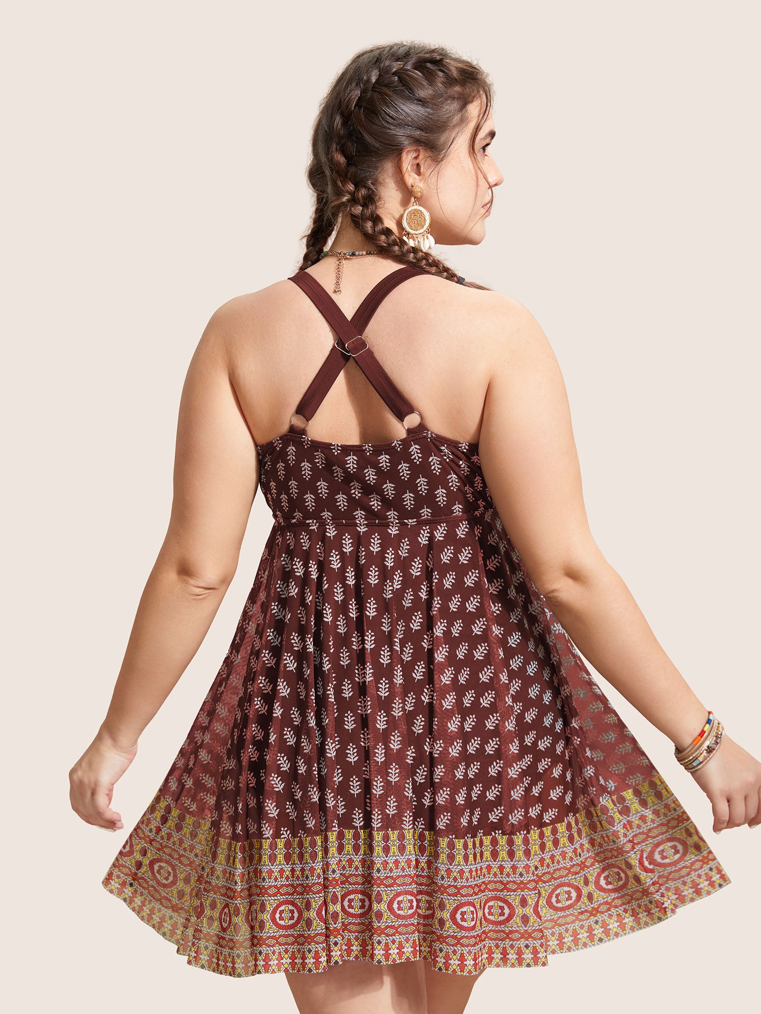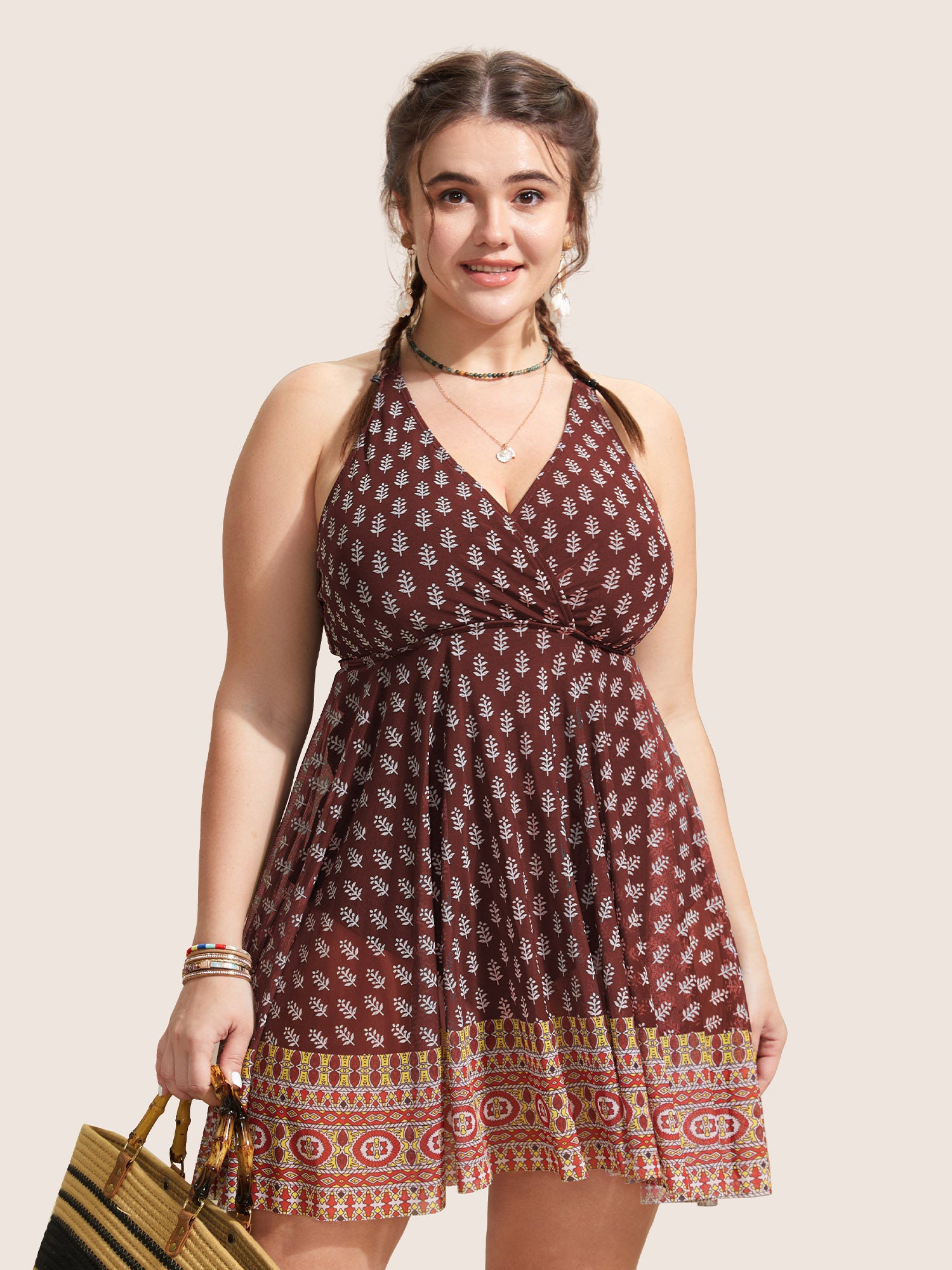 Shop Overlap Collar Boho Print Patchwork Swim Dress now and redefine your style with confidence at BloomChic. Tailored for mid and plus-size women. This trendy Swimwear Women, sizes 10-30. Color:Black,Deepred,ArmyGreen;Style:Beach Vacation;Cup Type:Removable cups;Neckline:Overlap Collar;Sleeve Type:Sleeveless;Prints:Bohemian print;Details:Overlapping, Tiered;Pocket:No-pocket;Belt:No-belt;Chest pad:Removable Padding;Lining:Lining;Closure Type:Non