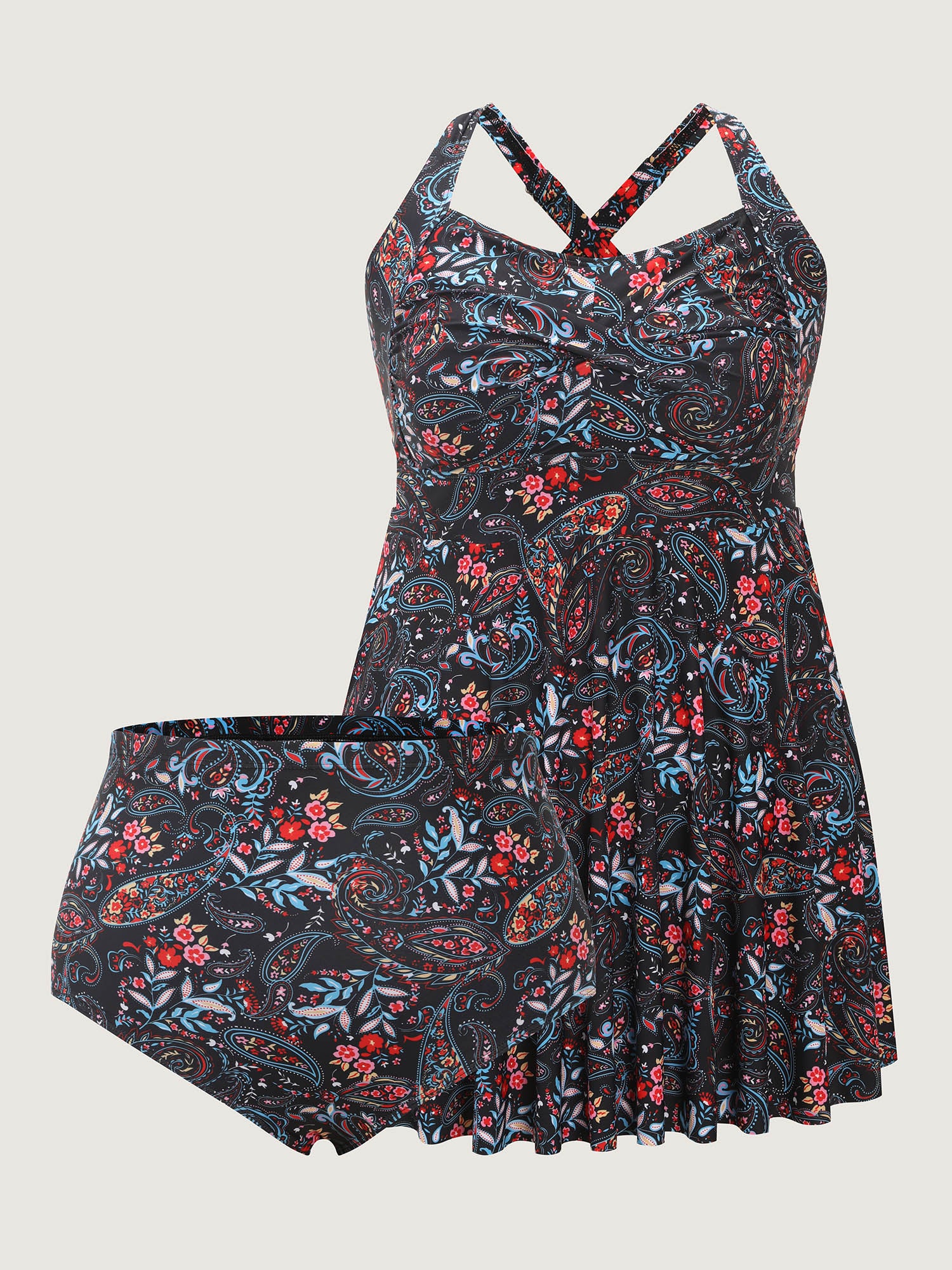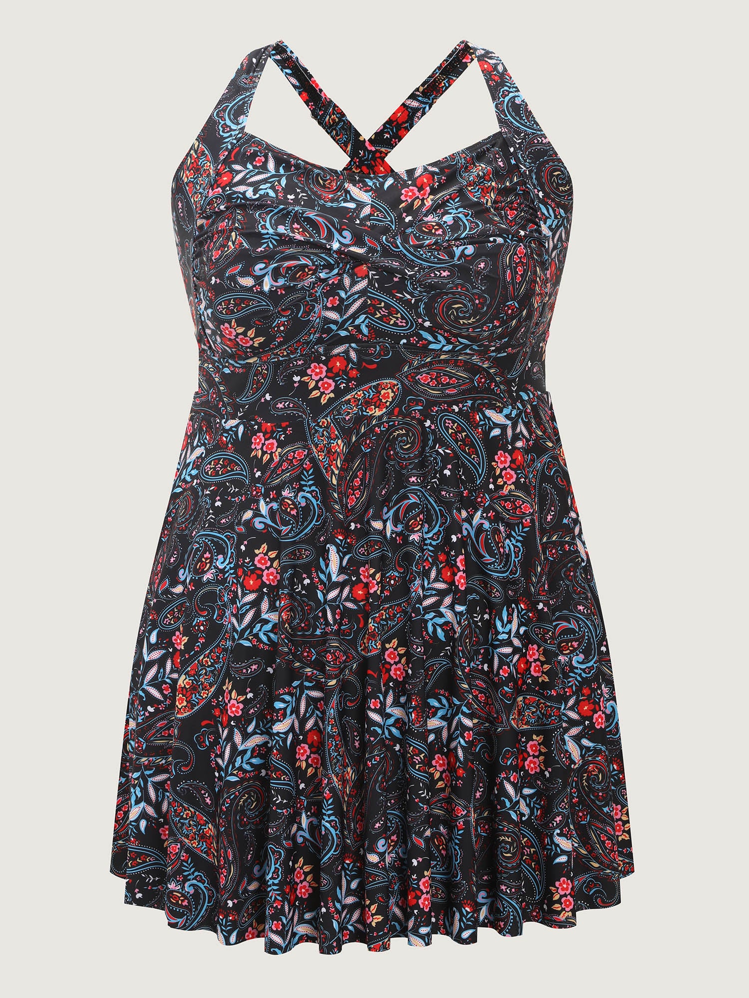 Shop Paisley Print Crossstraps Pockets Swim Dress now and redefine your style with confidence at BloomChic. Tailored for mid and plus-size women. This trendy Swimwear Women, sizes 10-30. Color:Multicolor;Style:Resort;Cup Type:Removable cups;Coverage:Full;Neckline:Square Neck;Sleeve Type:Sleeveless;Prints:Paisley;Pocket:Slanted pocket;Belt:No-belt;Chest pad:Removable Padding;Lining:Lining;Closure Type:Non;Structural function:Cinched & Flared,Adaptive-Fit;One-piece or split swim dresses:Includes bikini bottoms;Swimsuit types:Bikini Shorts Dress Set;Functional Fabric:Chlorine Resistant,UPF 50 Sun Protection