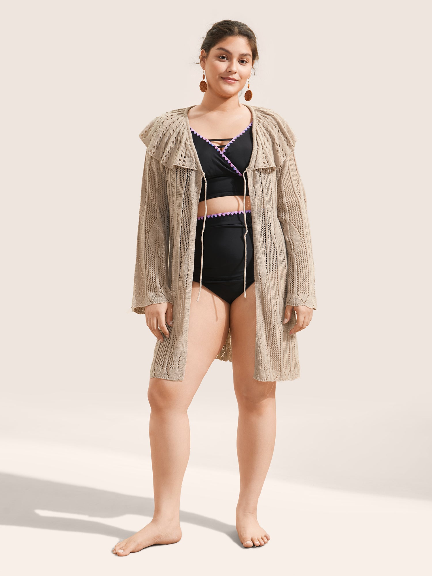 Shop Plain Texture Patchwork Cut Out Ties Swim Cover Up now and redefine your style with confidence at BloomChic. Tailored for mid and plus-size women. This trendy Swimwear Women, sizes 10-30. Season:Spring;Color:Apricot;Neckline:Kimono collar;Sleeve Type:Bell Sleeve;Pattern Type:Plain;Pocket:No-pocket;Belt:No-belt