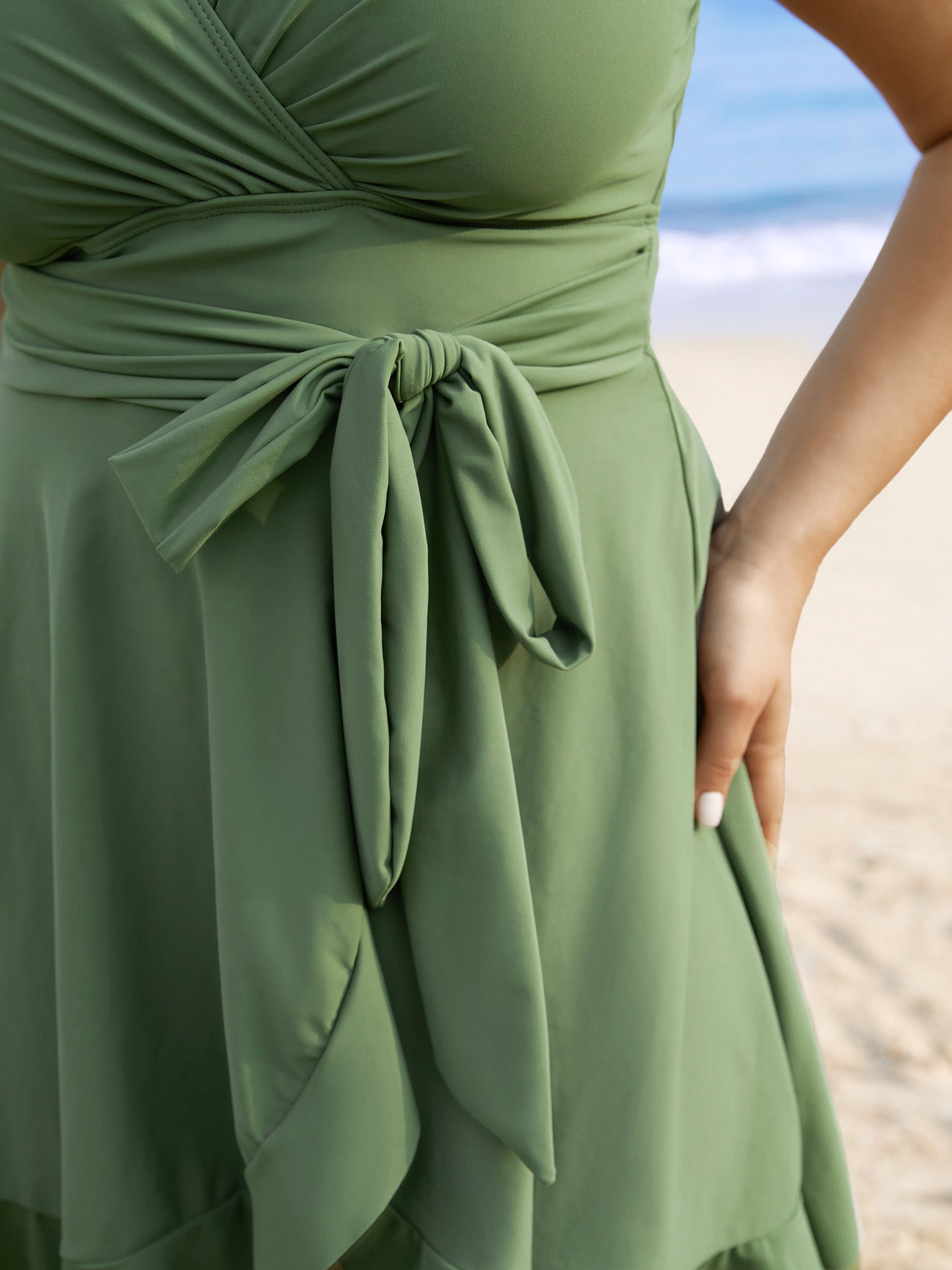 Plain Ties Wrap Flutters Swim Dress