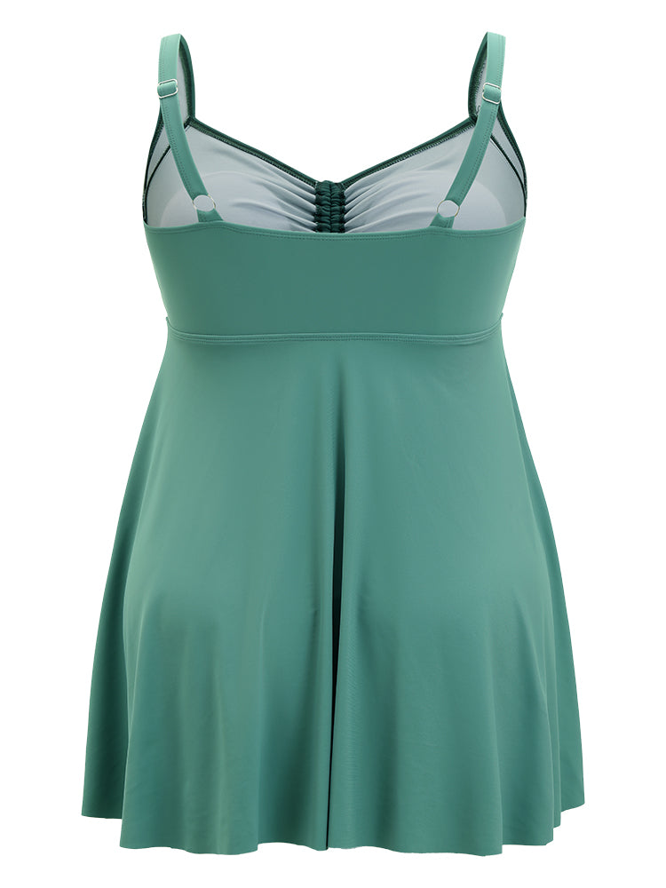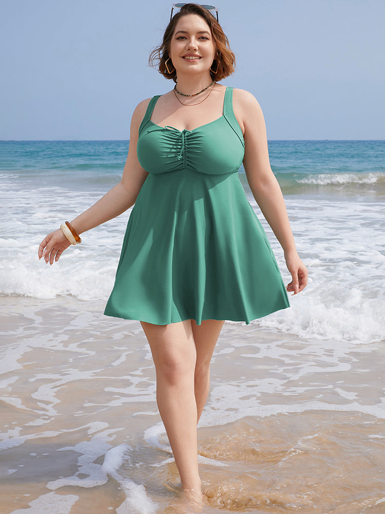 Shop Ruched Drawstring Flutter Hem Swim Dress now and redefine your style with confidence at BloomChic. Tailored for mid and plus-size women. This trendy Swimwear Women, sizes 10-30. Season:Summer;Color:Emerald;Bra Type:Wireless;Coverage:Full;Sleeve Type:Sleeveless;Pattern Type:Plain;Details:Drawstring, Cross straps, Gathered, A-line, Adjustable Straps;Pocket:No-pocket;Belt:No-belt;Chest pad:Removable Padding;Lining:Lining