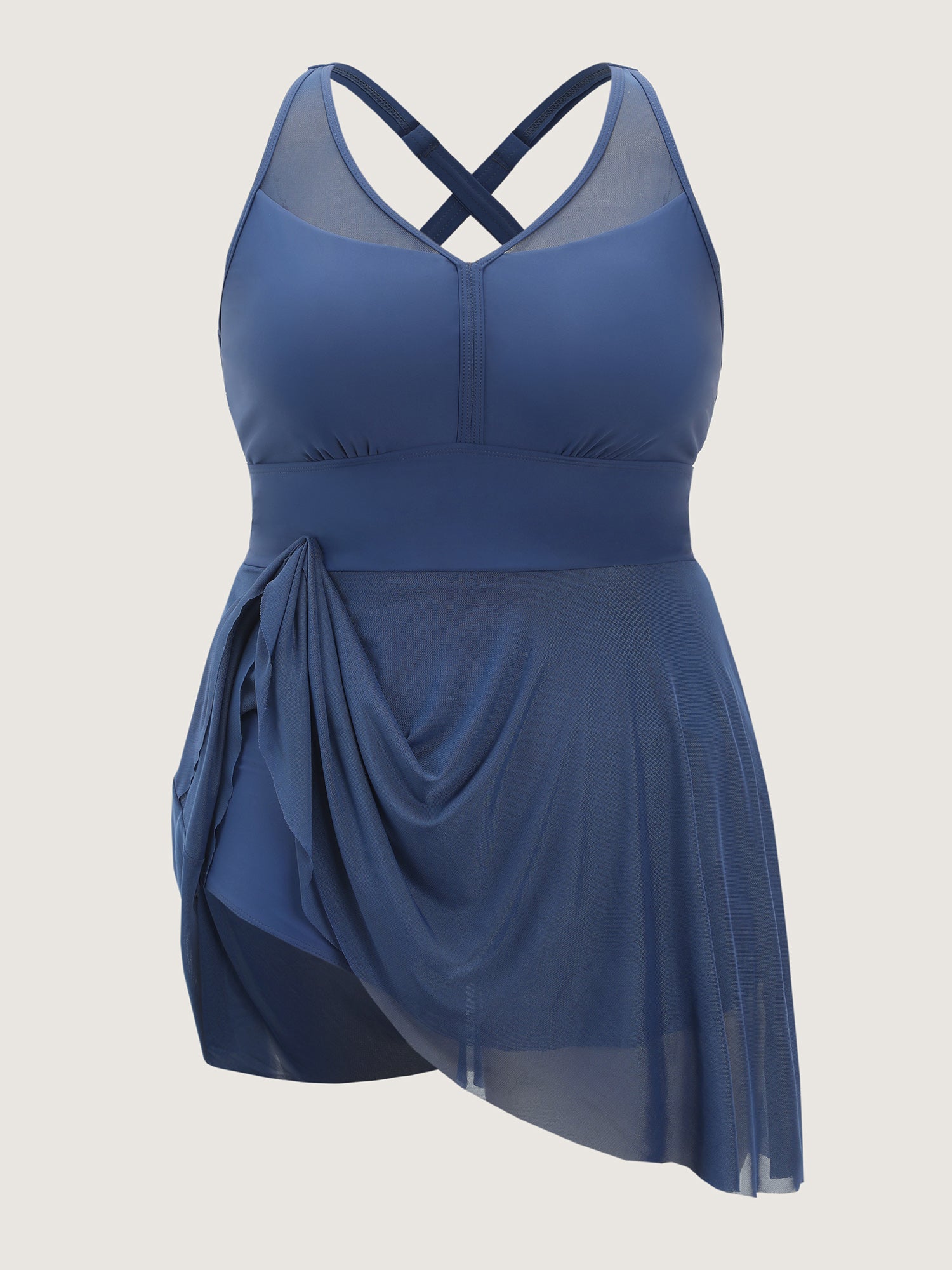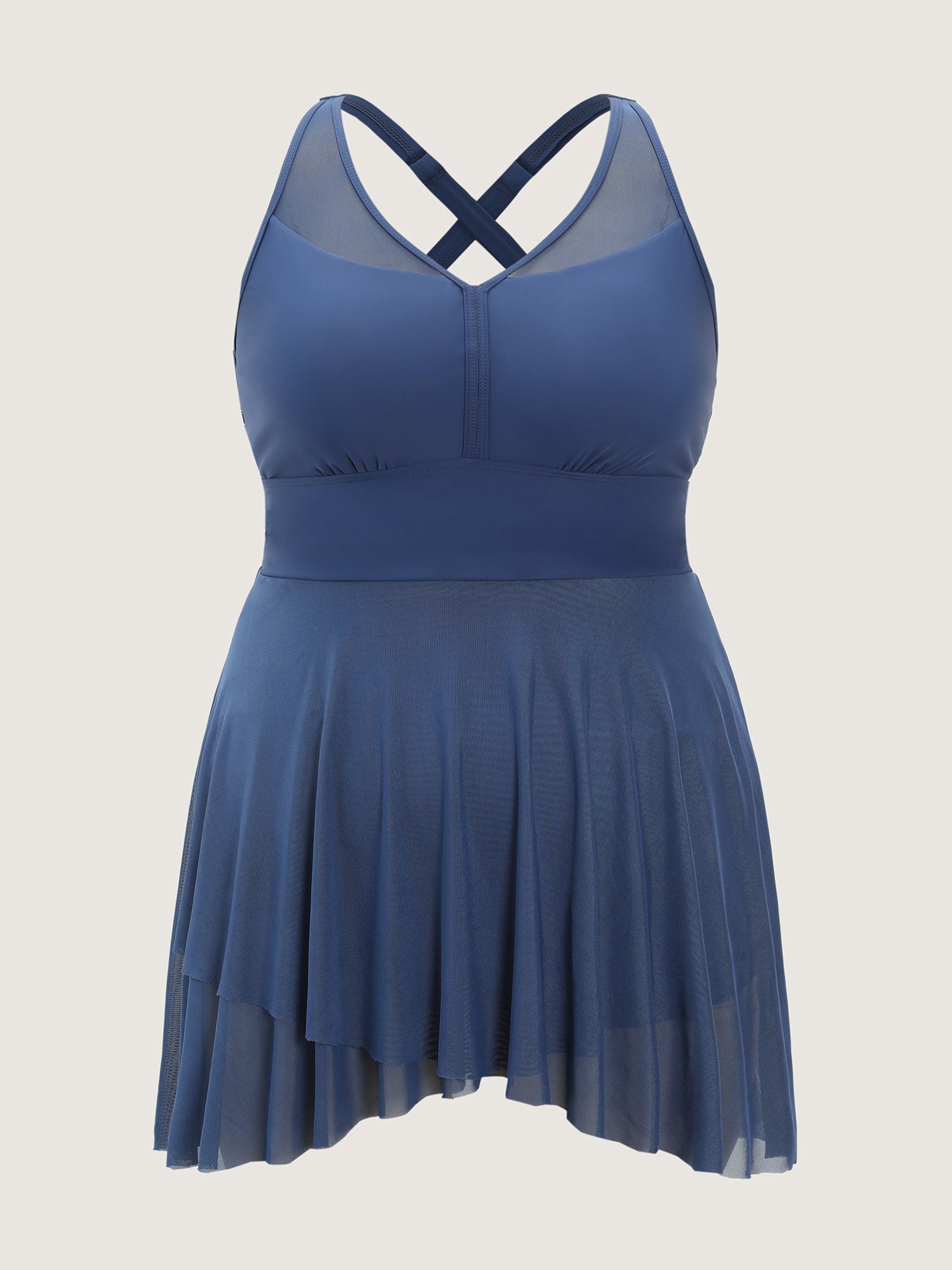 Shop Sheer Layered Crossback Straps Swim Dress now and redefine your style with confidence at BloomChic. Tailored for mid and plus-size women. This trendy Swimwear Women, sizes 10-30. Color:Stone;Style:Resort;Cup Type:Removable cups;Coverage:Full;Neckline:Deep V-neck;Sleeve Type:Sleeveless;Prints:Non;Details:See through;Pocket:No-pocket;Belt:No-belt;Chest pad:Removable Padding;Lining:Lining;Closure Type:Non;Structural function:Adaptive-Fit,Cinched & Flared;One-piece or split swim dresses:Built-in bottoms;Swimsuit types:Built-in Bikini Dress