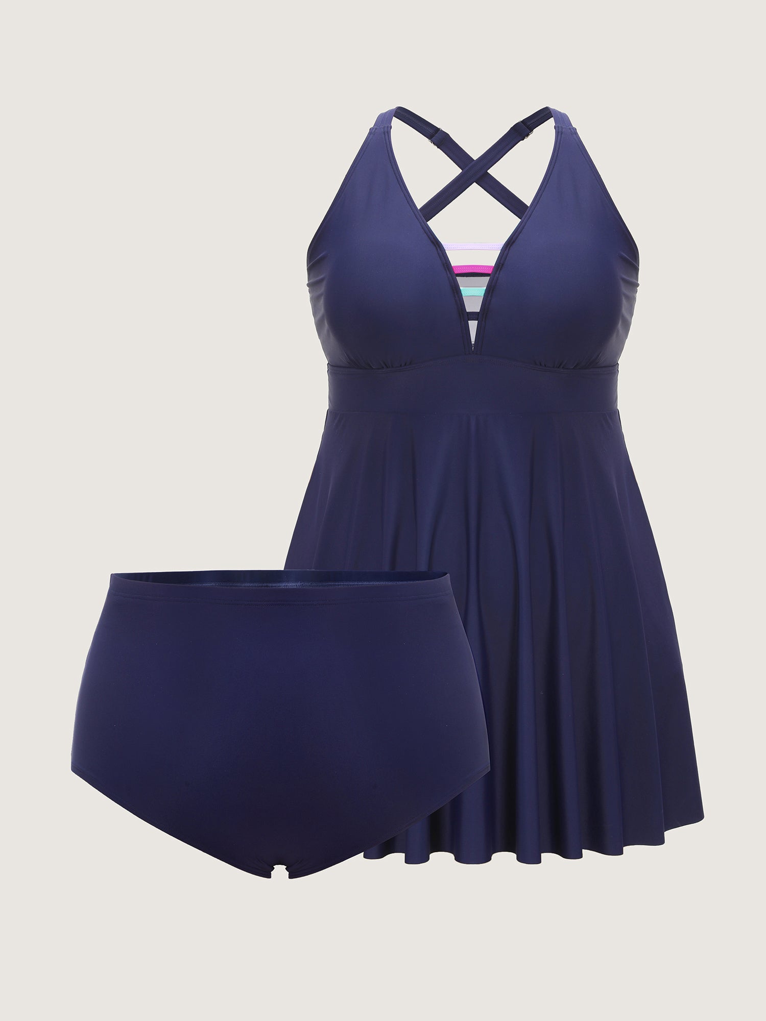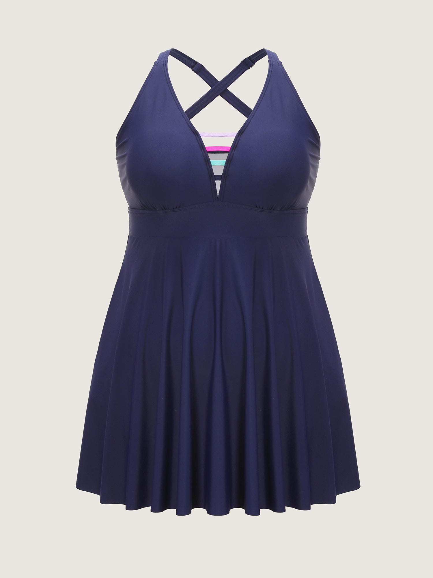 Shop Striped Neckline Pockets Flowy Swim Dress now and redefine your style with confidence at BloomChic. Tailored for mid and plus-size women. This trendy Swimwear Women, sizes 10-30. Color:Indigo;Style:Resort;Cup Type:Removable cups;Coverage:Full;Neckline:V-neck;Sleeve Type:Sleeveless;Prints:Non;Details:Contrast;Pocket:No-pocket;Belt:No-belt;Chest pad:Removable Padding;Lining:Lining;Closure Type:Non;Structural function:Cinched & Flared,Adaptive-Fit,Full Coverage;One-piece or split swim dresses:Includes bikini bottoms;Swimsuit types:Bikini Shorts Dress Set;Functional Fabric:Chlorine Resistant