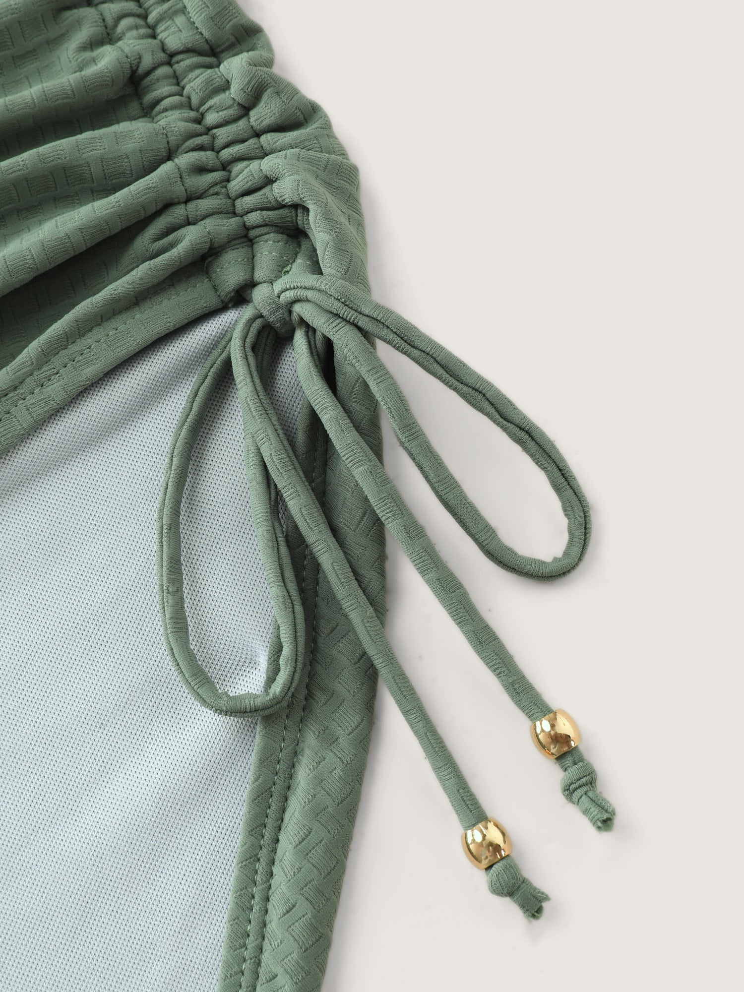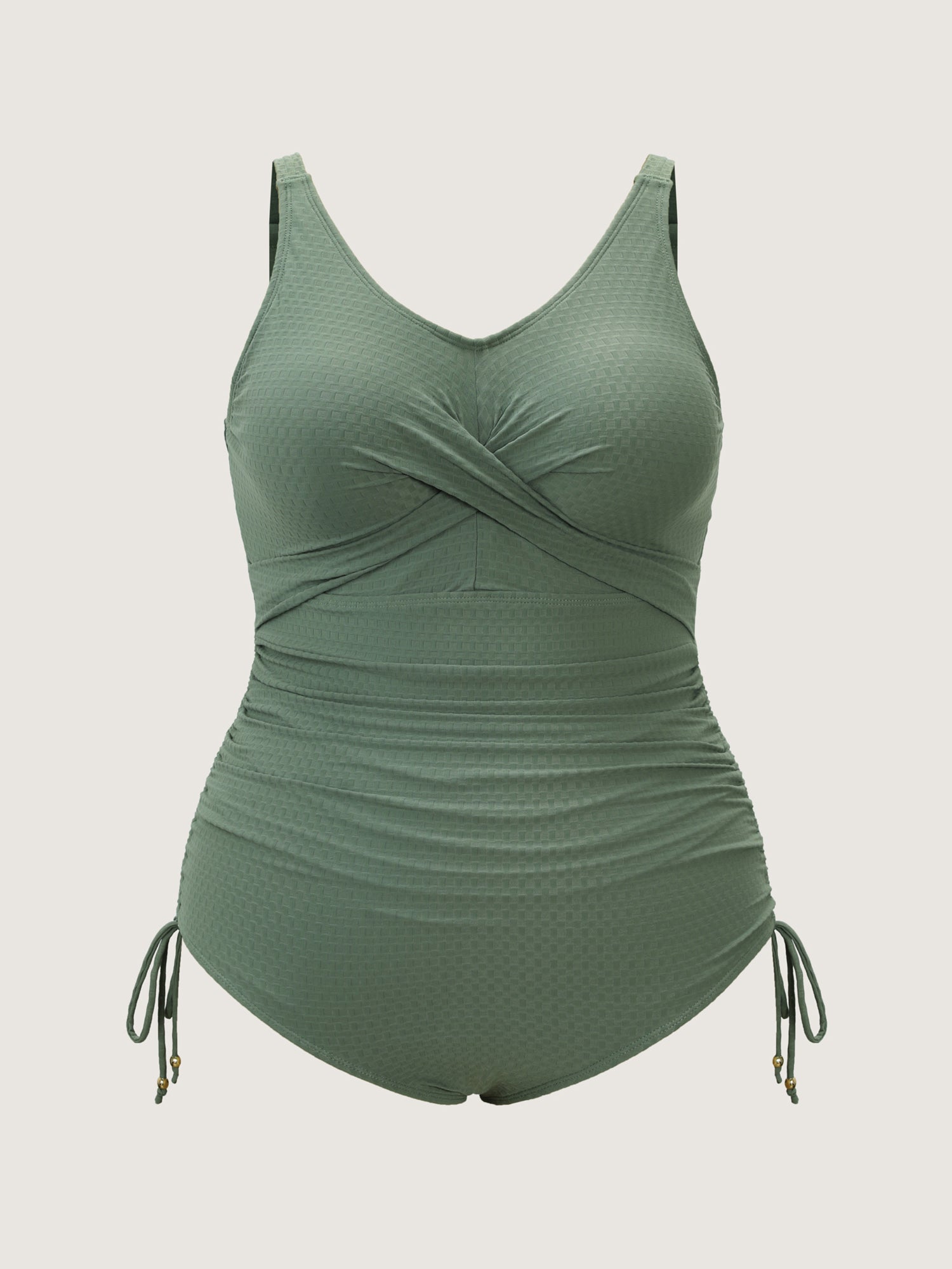 Shop Textured Side-Drawstring Tummy-Control One-Piece Swimsuit now and redefine your style with confidence at BloomChic. Tailored for mid and plus-size women. This trendy Swimwear Women, sizes 10-30. Color:Sage;Style_2:Resort;Cup Type:Removable cups;Neckline:V-neck;Sleeve Type:Sleeveless;Prints:Non;Details:Twist, Drawstring;Pocket:No-pocket;Belt:No-belt;Chest pad:Removable Padding;Lining:Lining;Closure Type:Non;Structural function:Tummy-Sculpt,Adaptive-Fit;Swimsuit types:Built-in Bikini Bottoms Dress