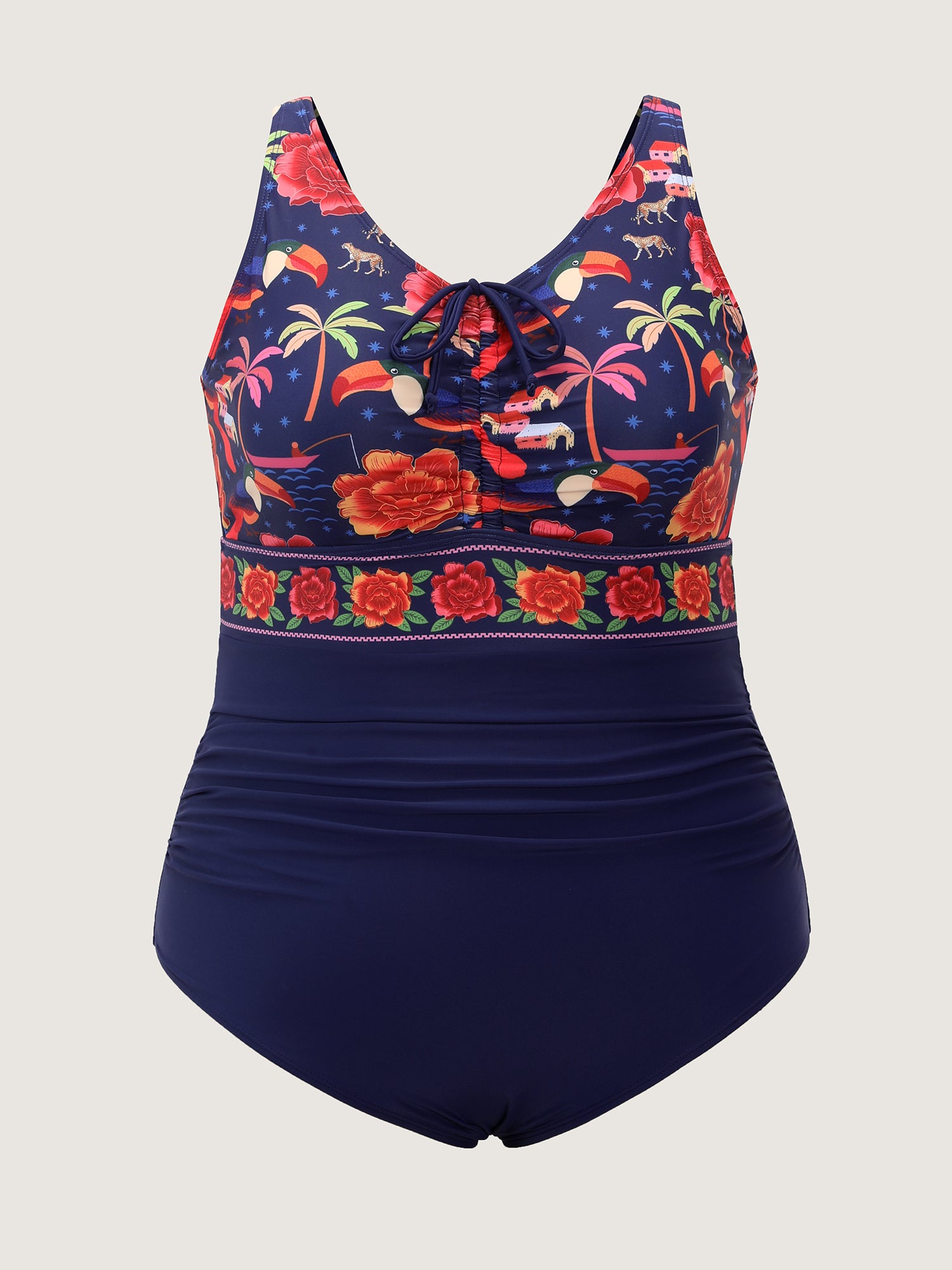 • Tropical Pattern Channel Drawstring One-Piece Swimsuit