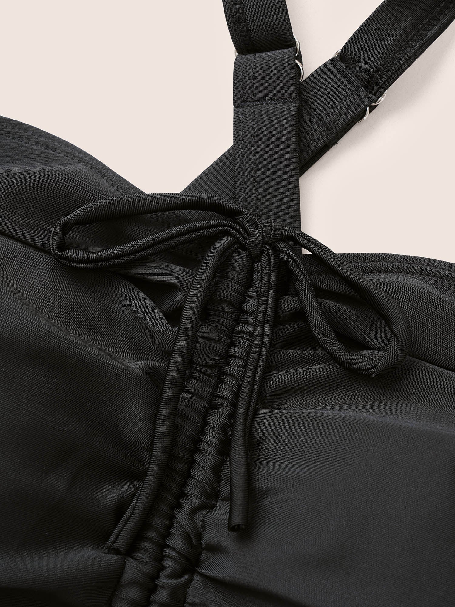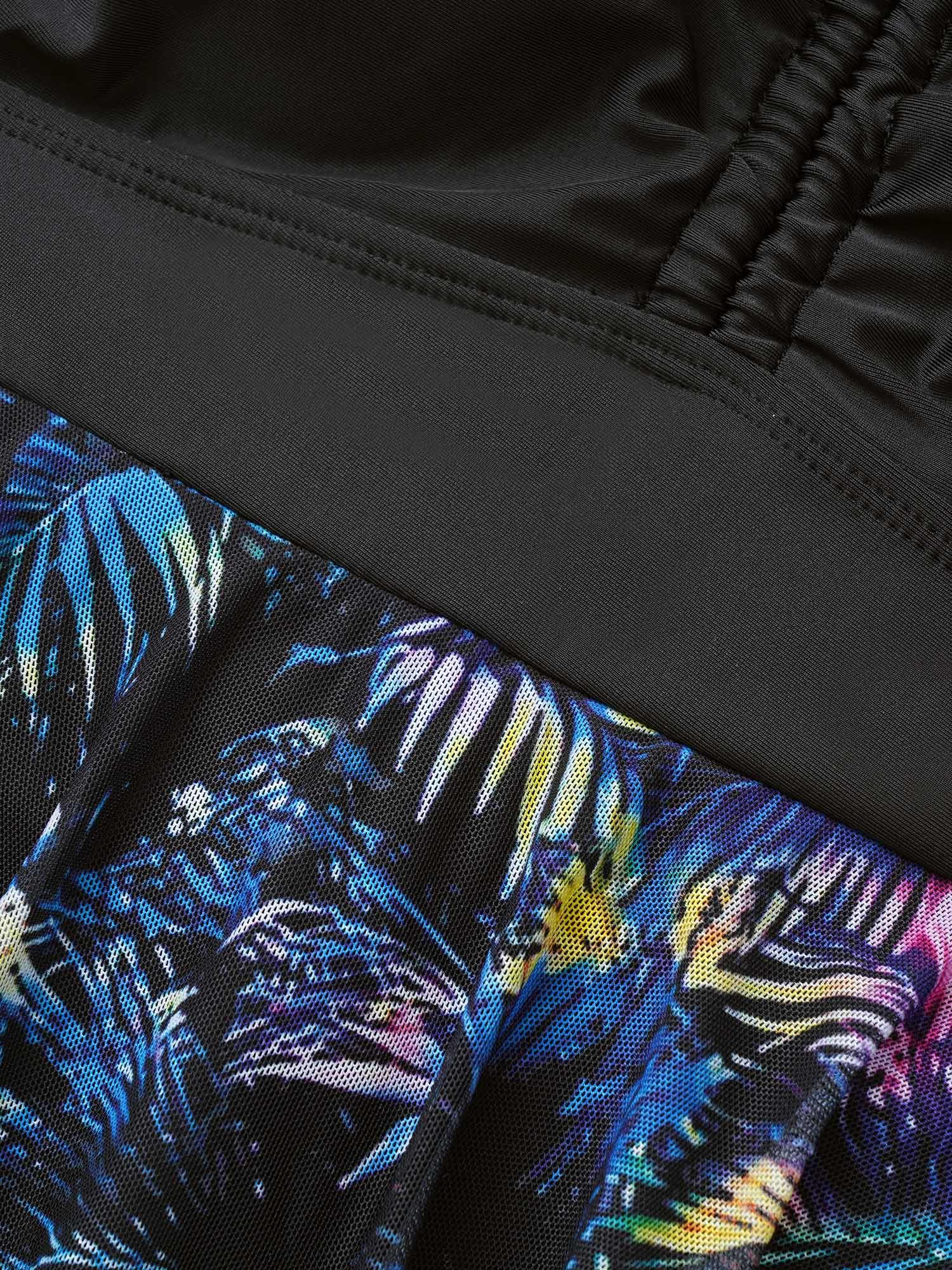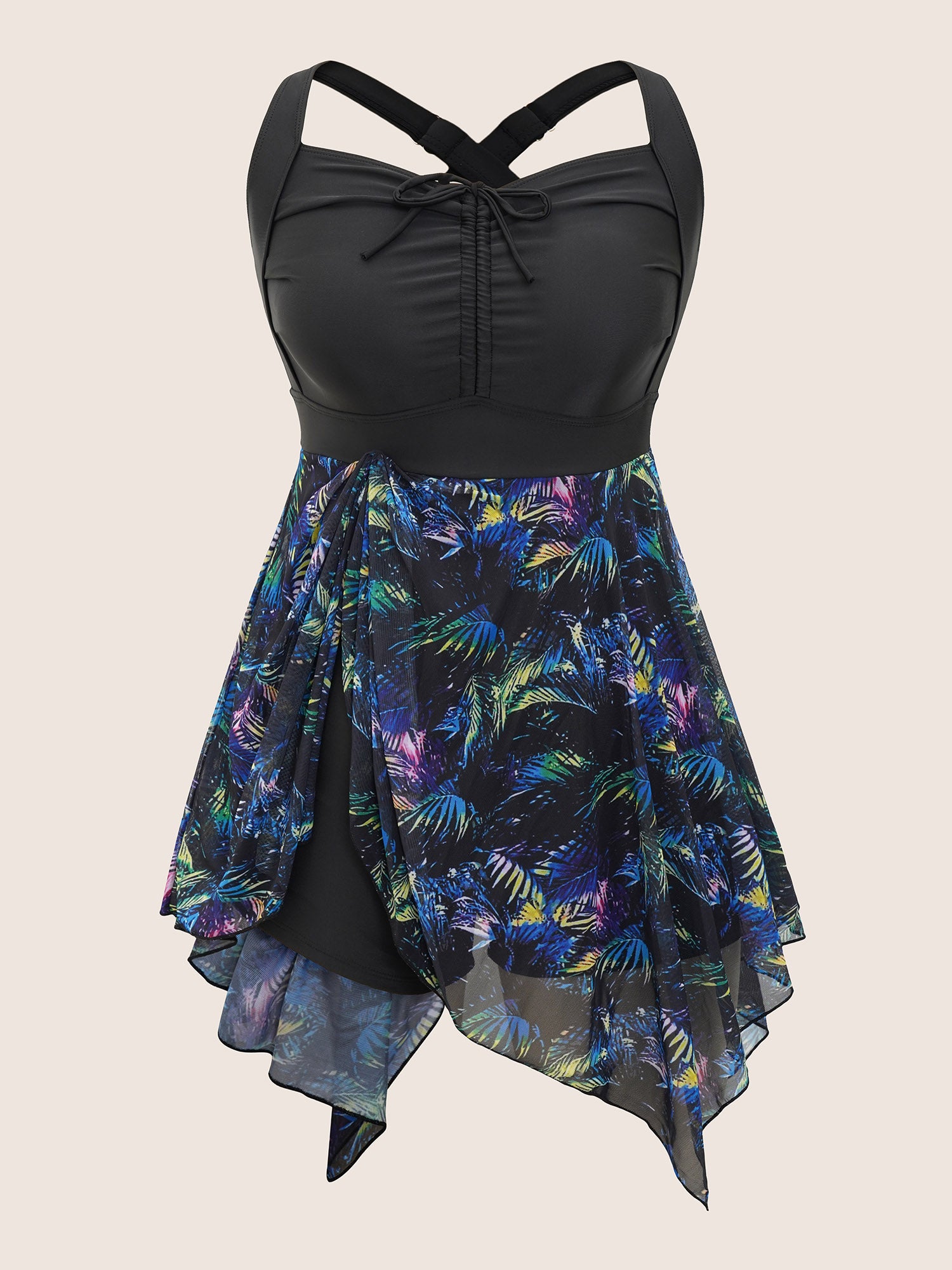 Tropical Ruched Ties Hanky Hem Crisscross Swim Dress