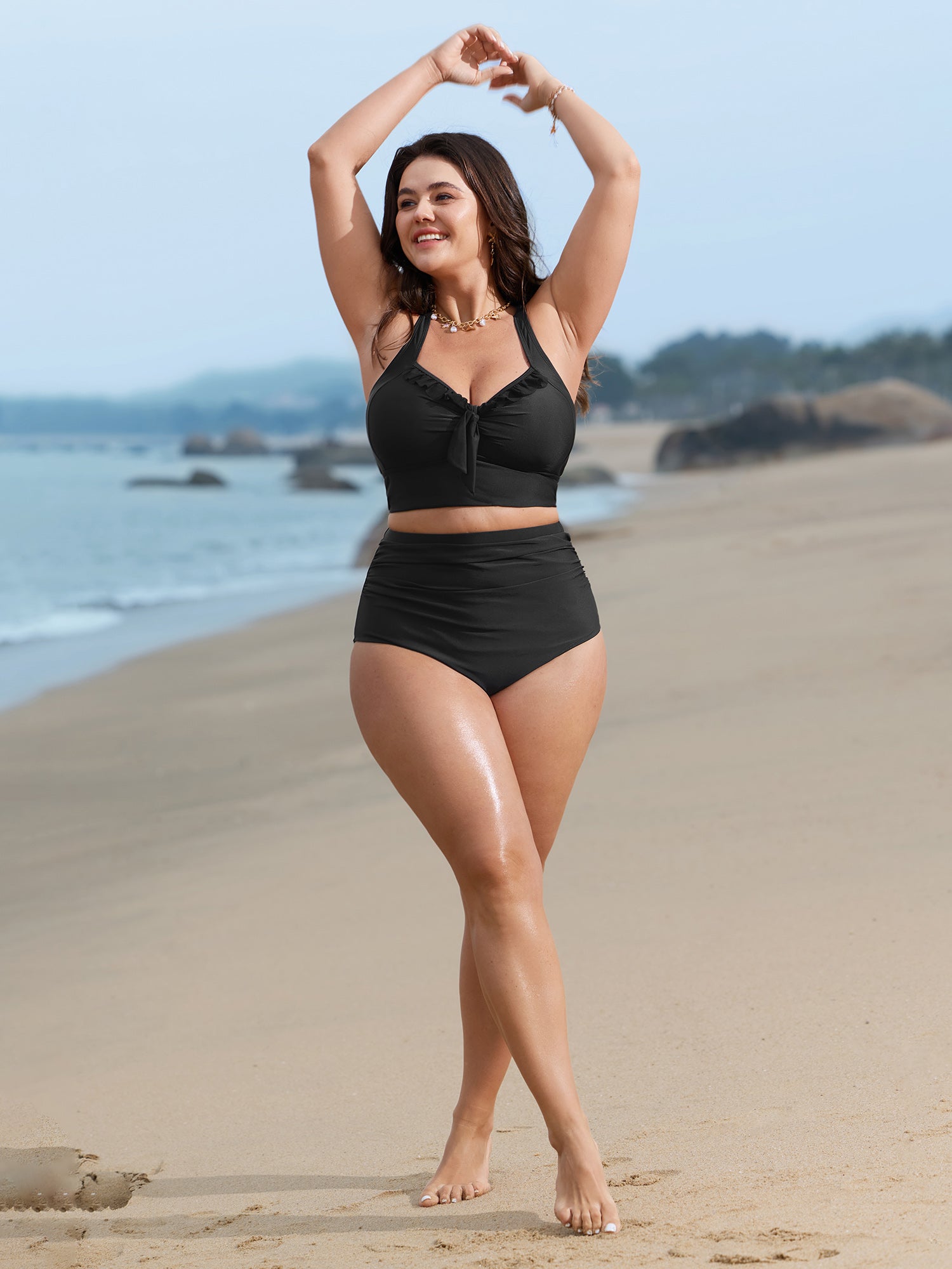 Bust Knot-Tie Ruffle Trim Supportive Swim Top