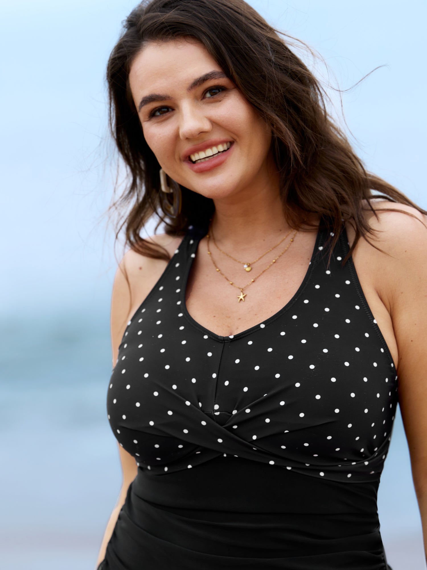 Polka Dots Spliced Ruched One-Piece Swimsuit
