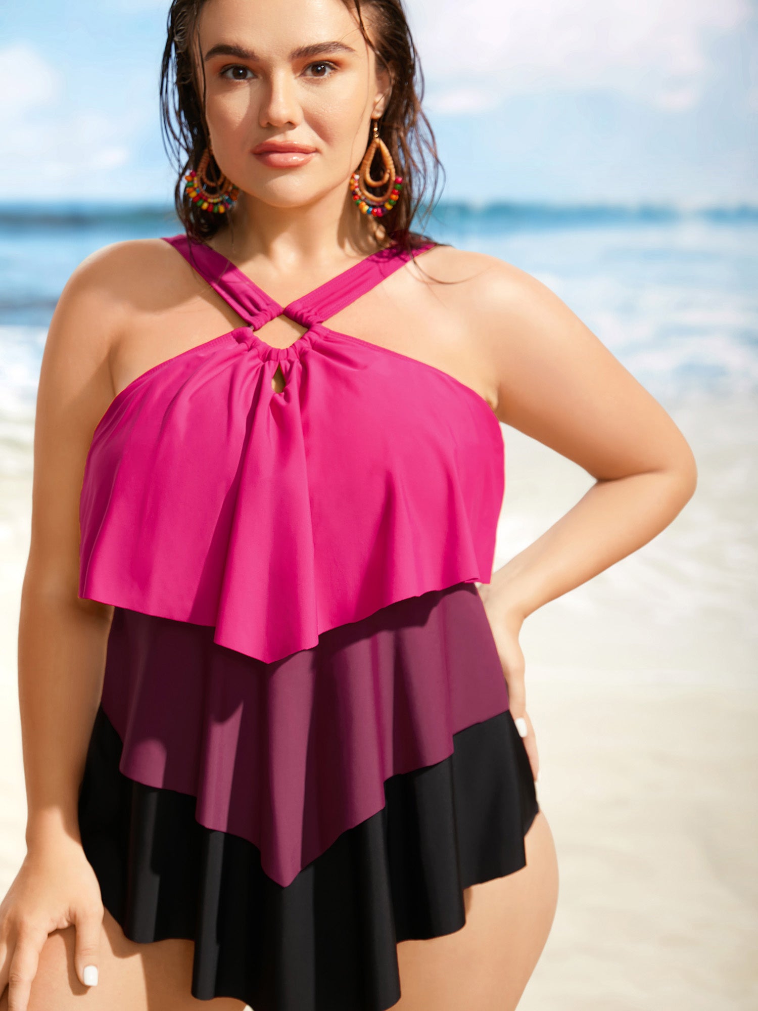 Contrast Cut Out Tiered Hem One Piece Swimsuit