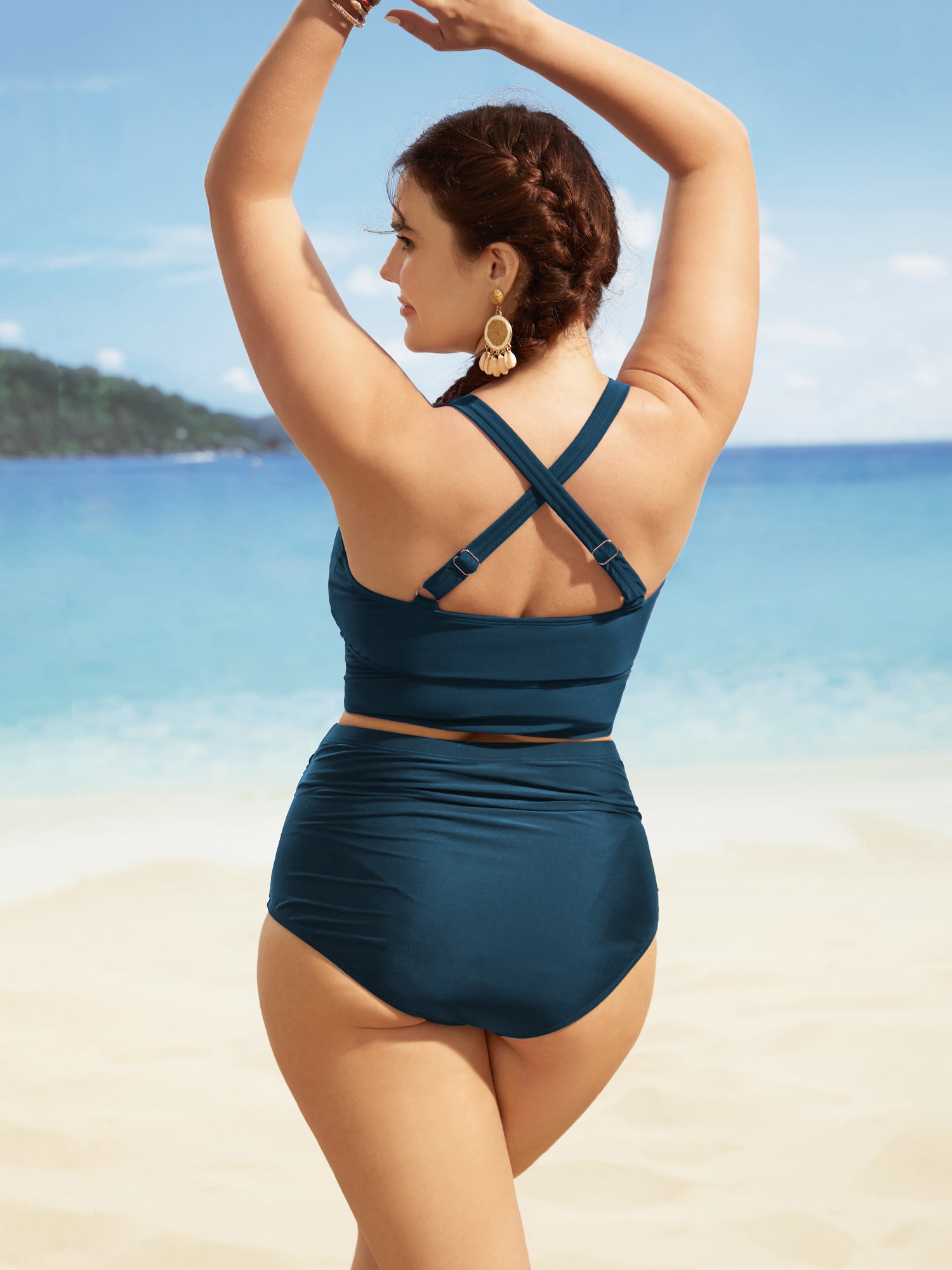 Solid Crossover Square Neck Adjustable Straps Swim Top