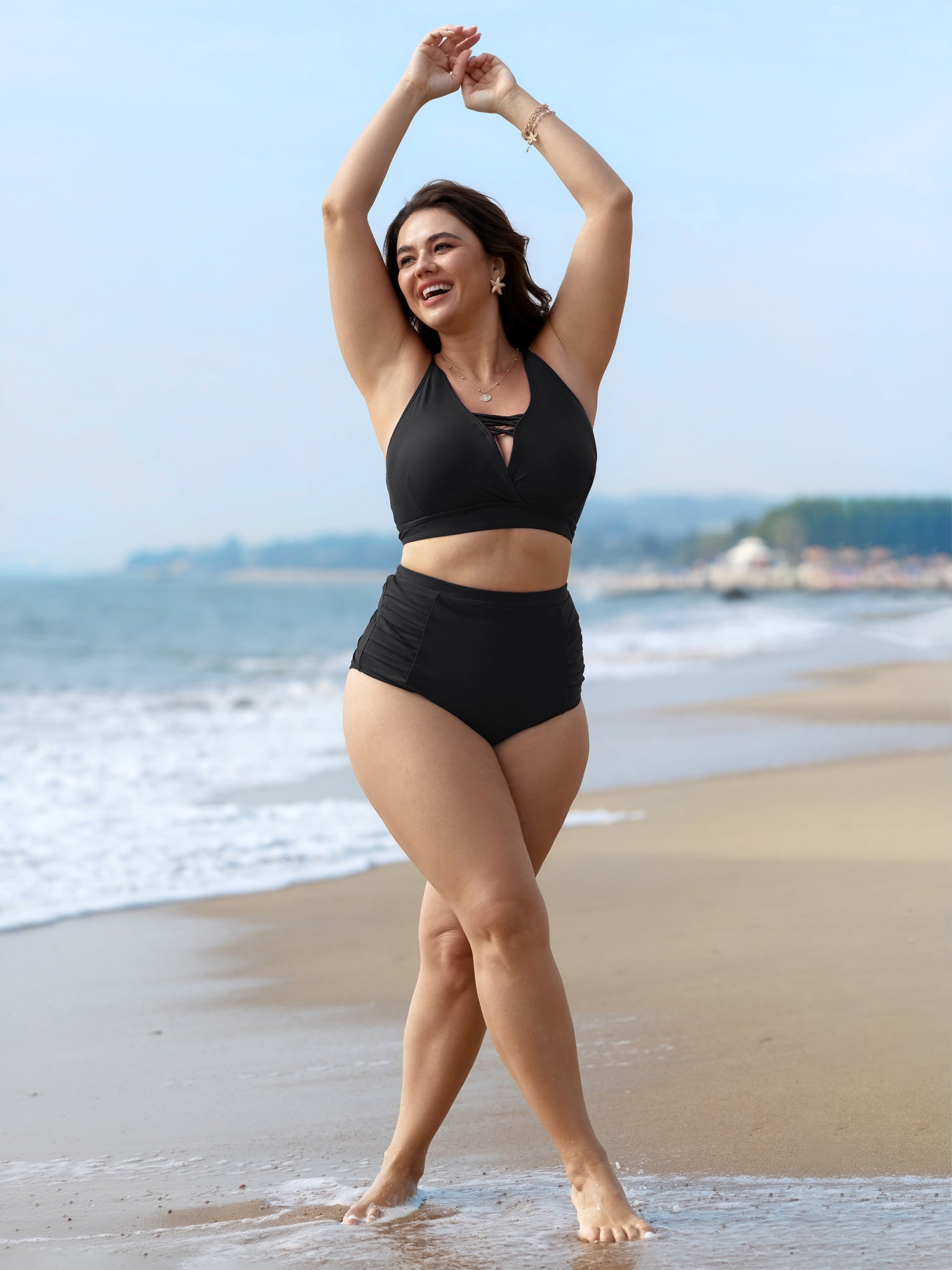 Side Drawstrings Plain Swim Top