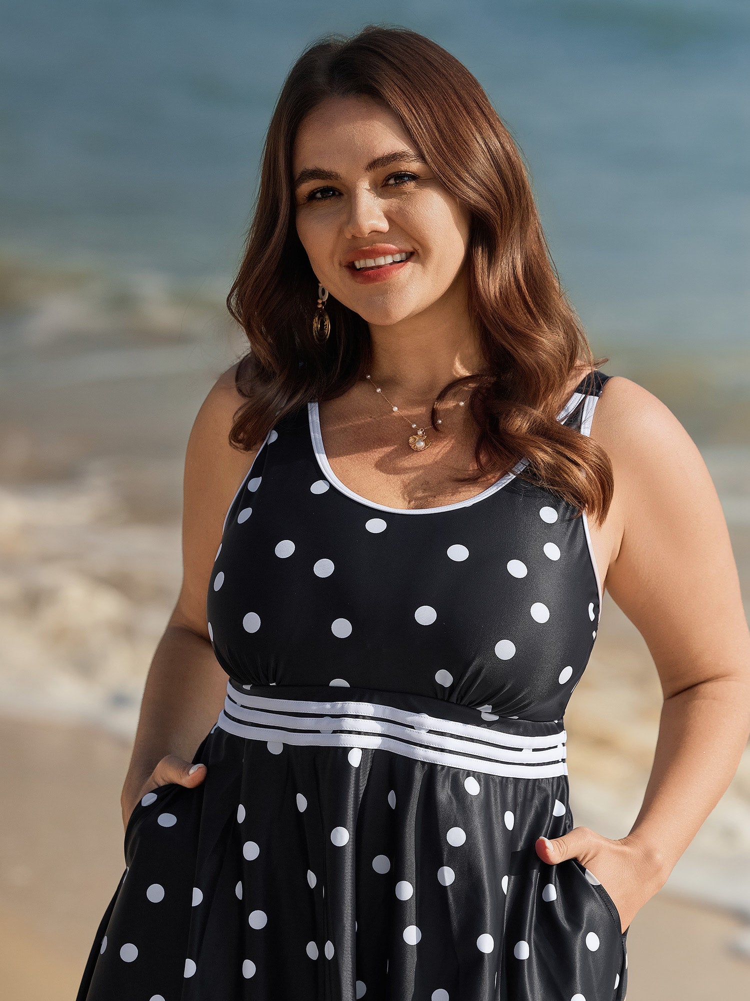 Polka Dots Pockets Swim Romper