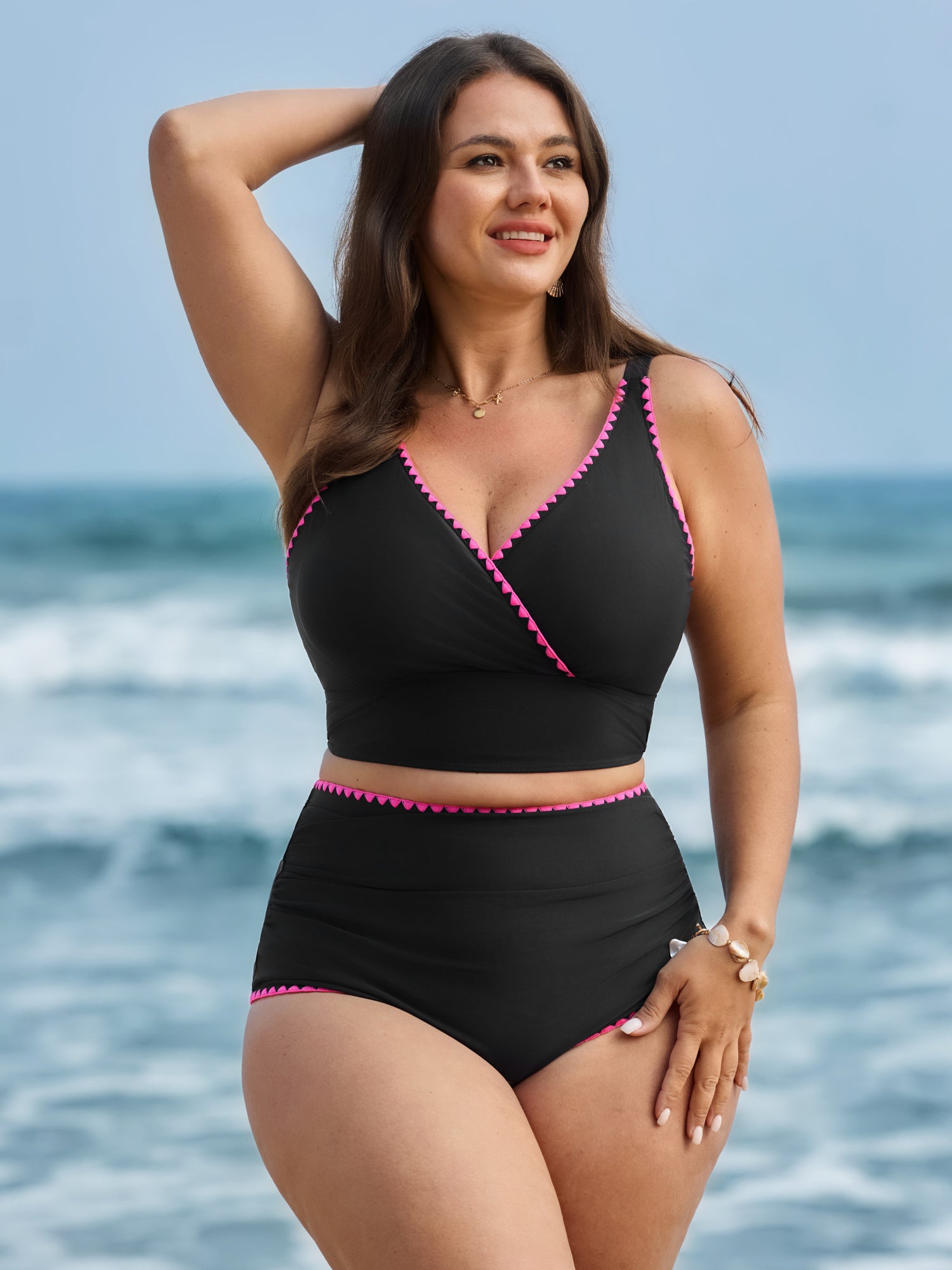 Metal Buckle Keyhole Swim Top