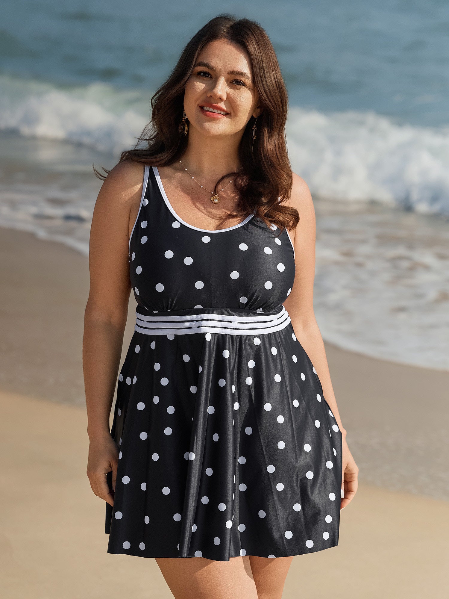 Anti-Float Ties Polka Dot Swim Dress