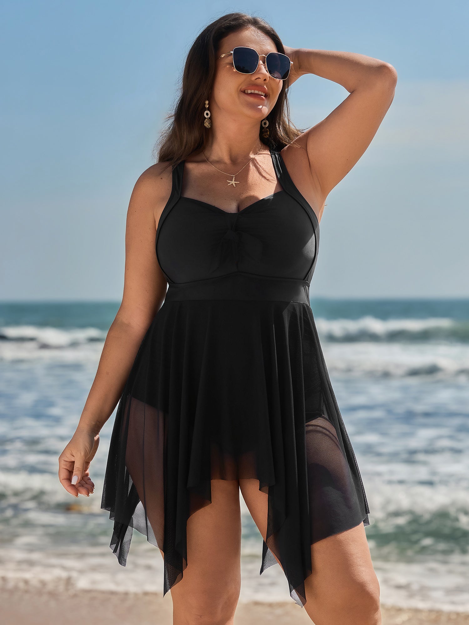 Mesh Knotted Front Adjustable Swim Dress