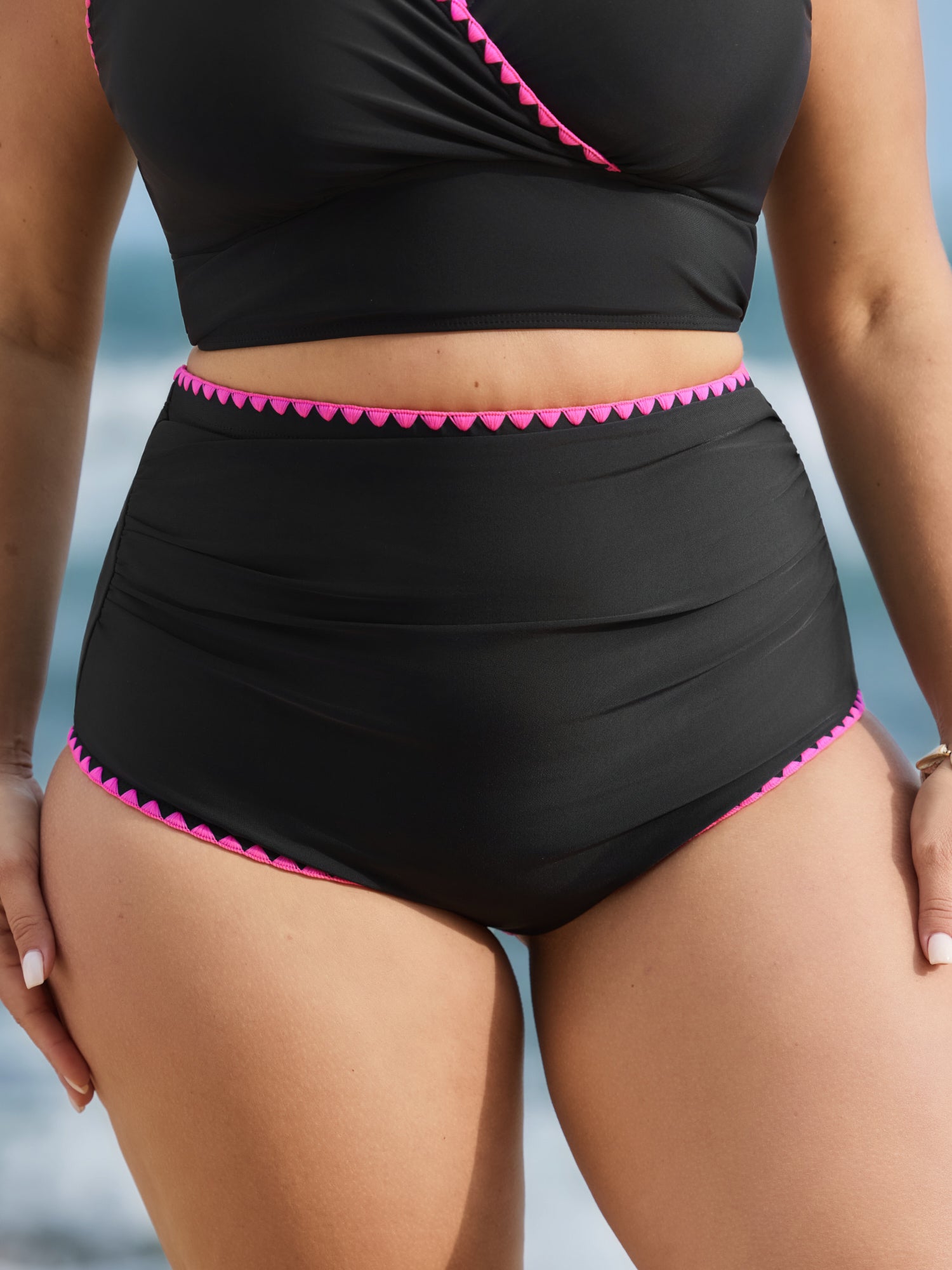 High-Waisted Color Contrast Swim Bottoms
