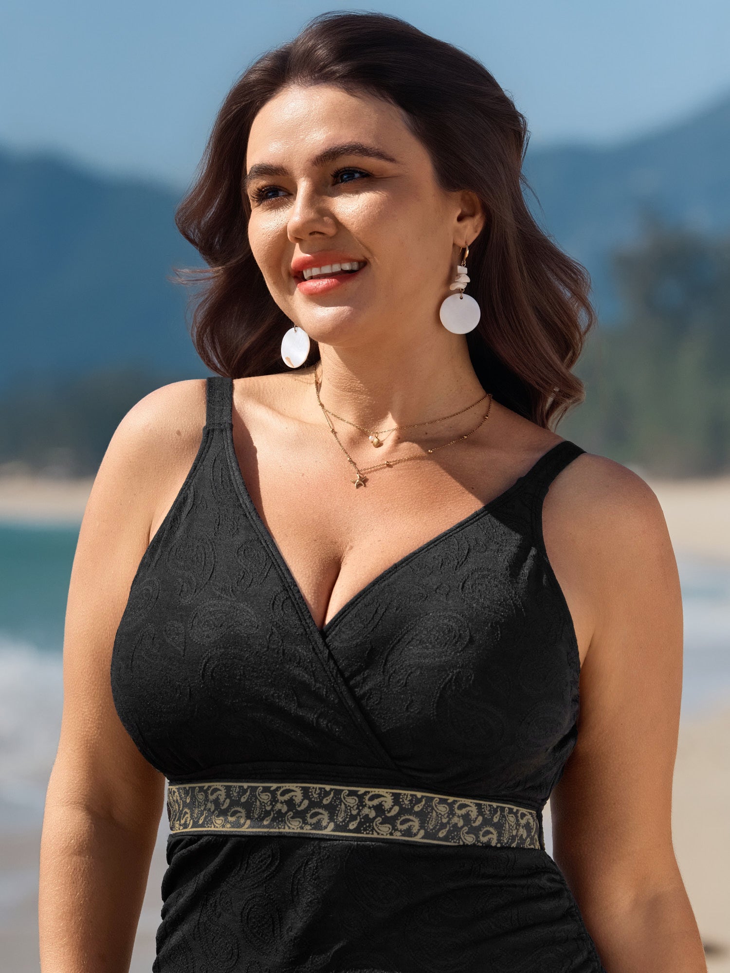 Island Print Non-Removable Cups Swim Top