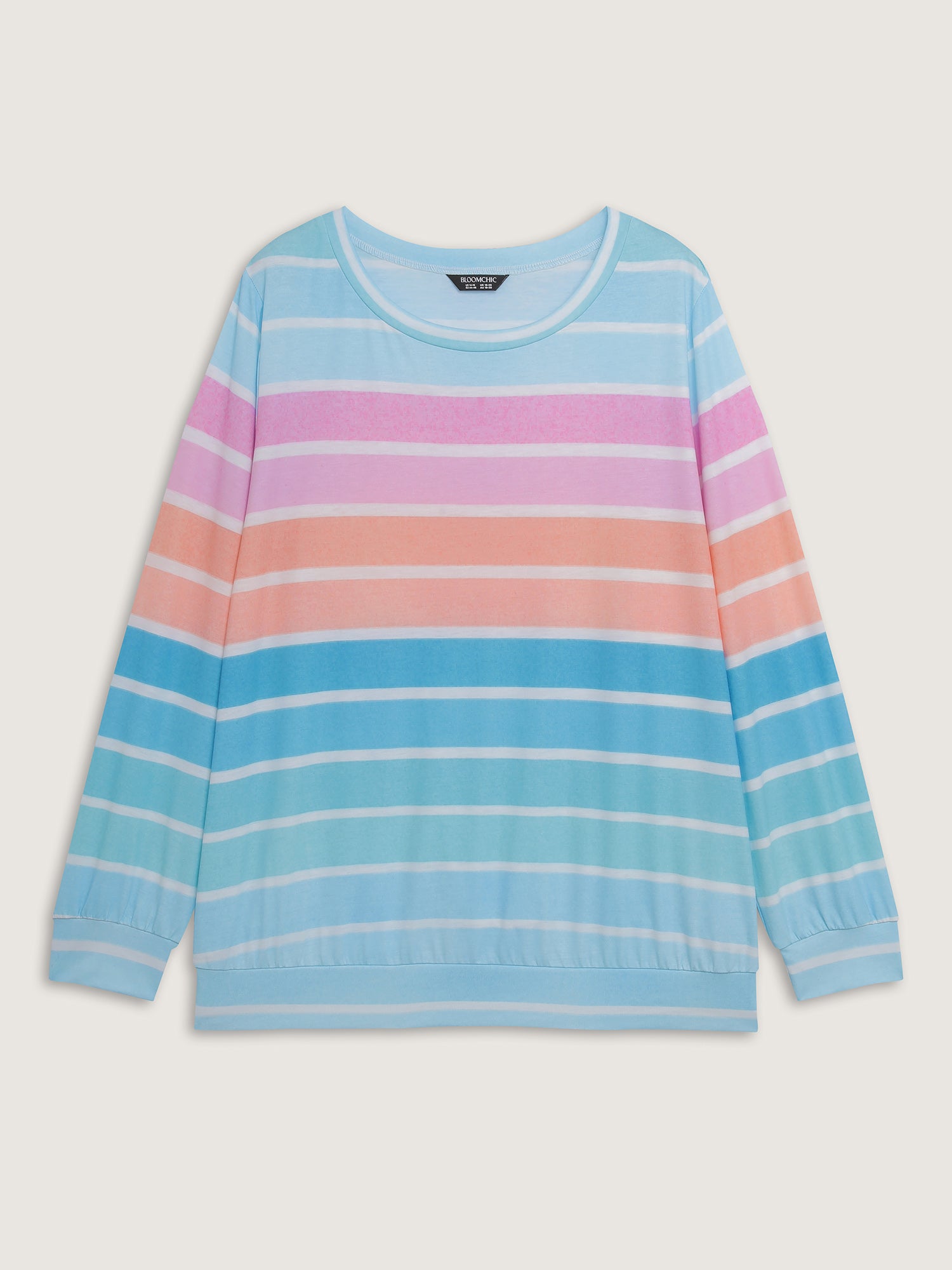 Colorful Stripe Relaxed-Fit Stretchy Hem T-Shirt