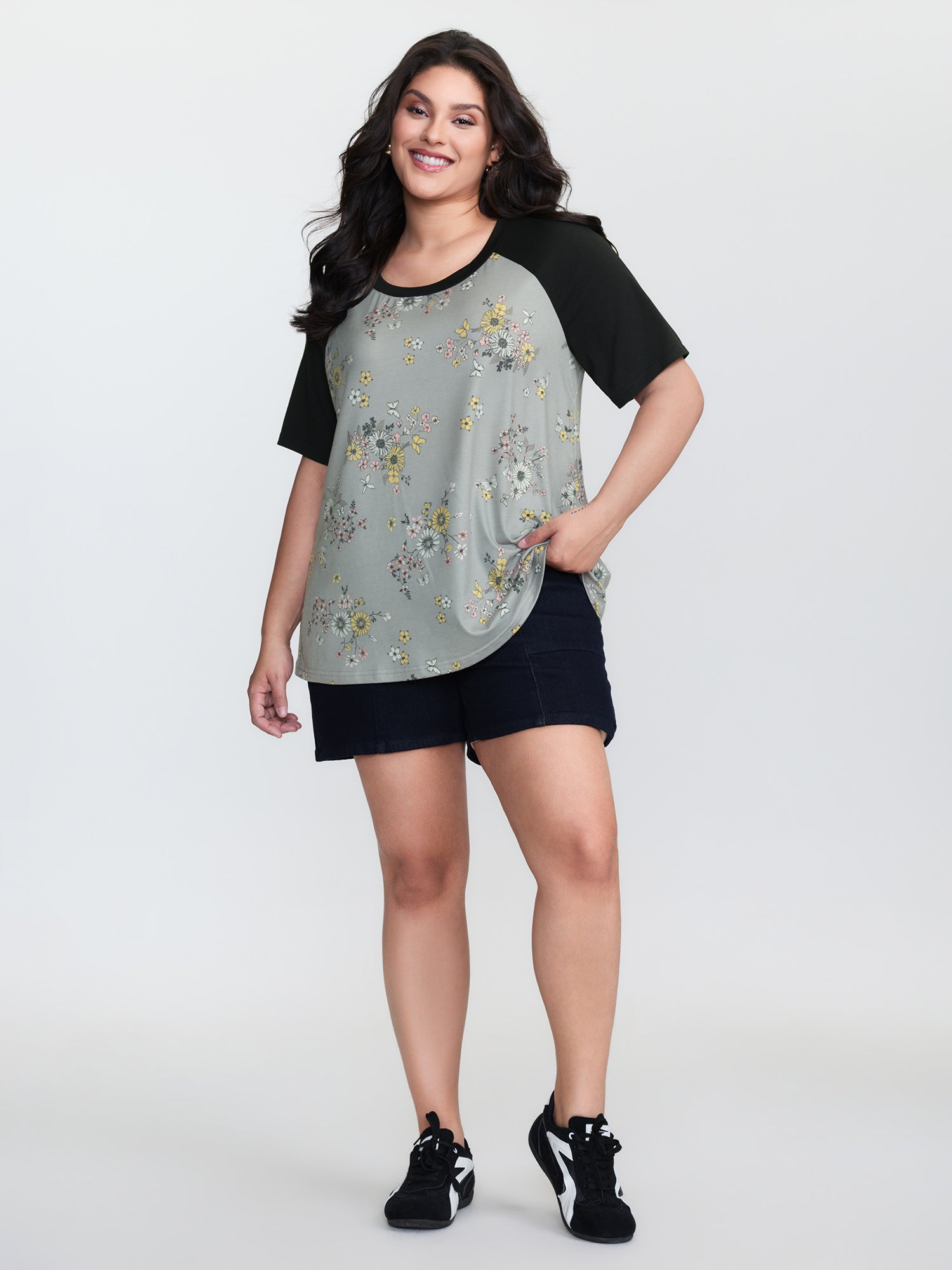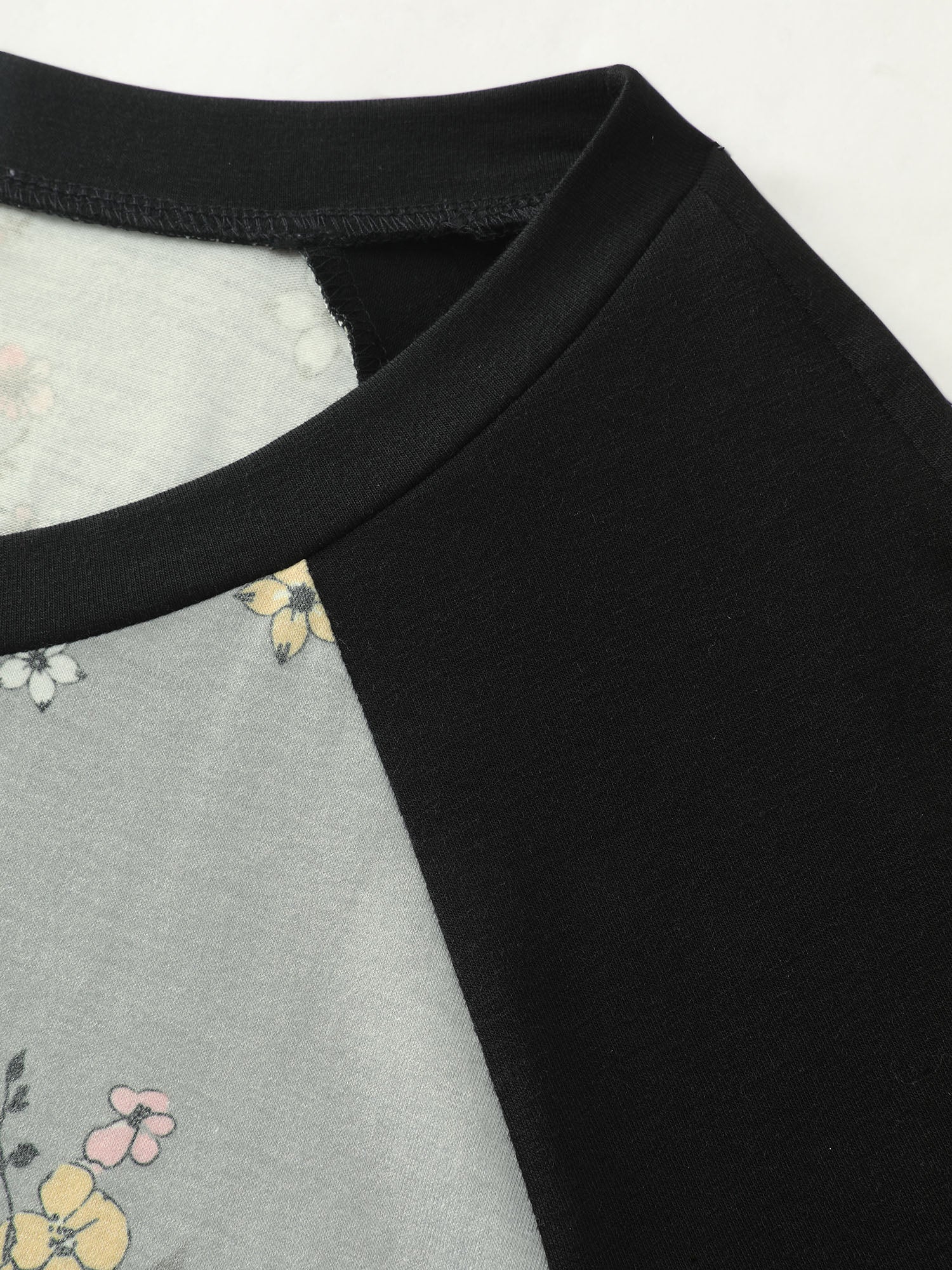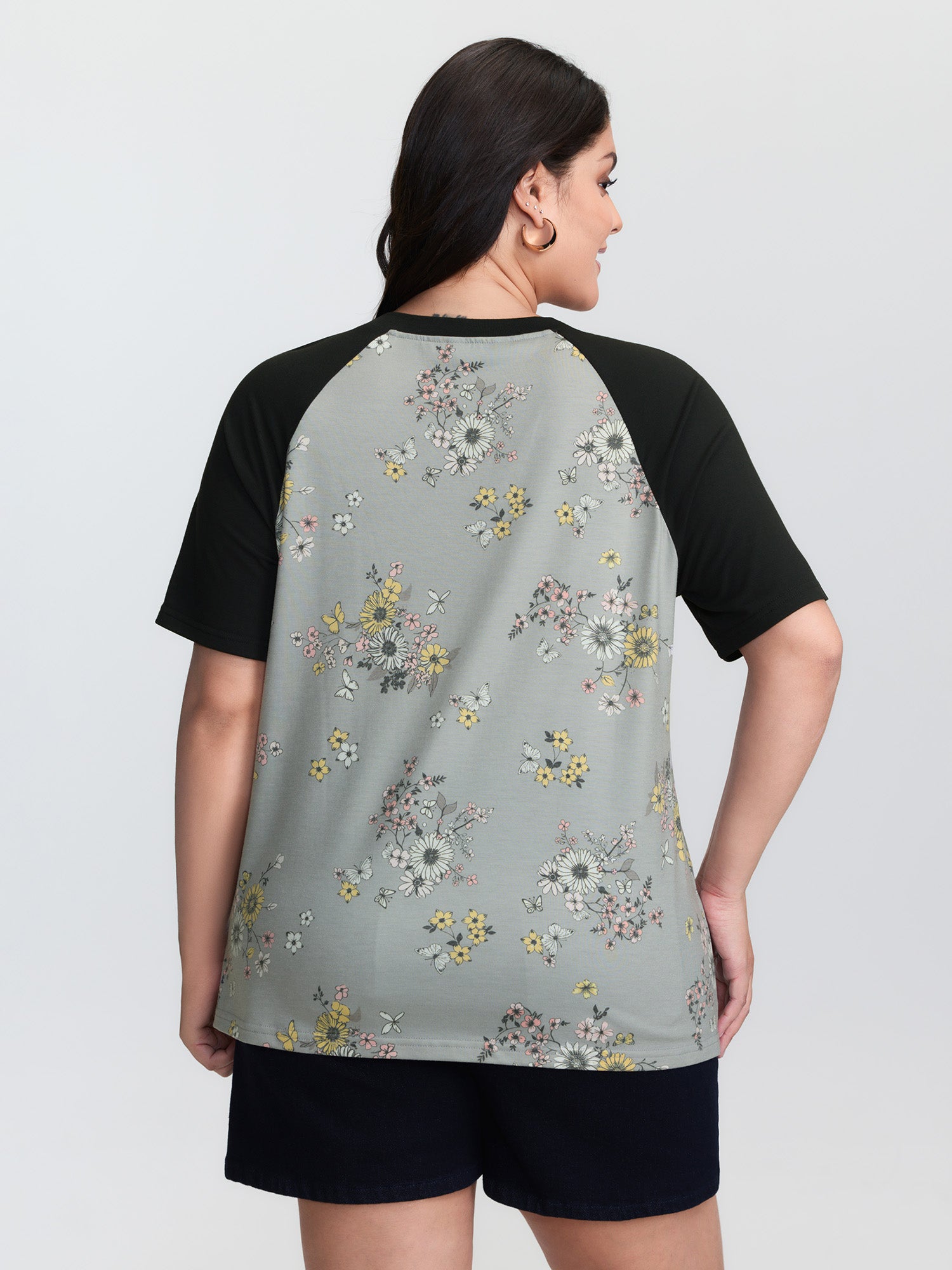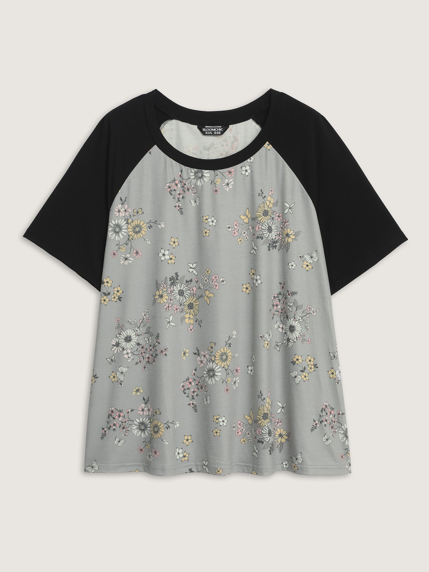 Shop Floral Print Contrast Raglan Sleeve T-Shirt now and redefine your style with confidence at BloomChic. Tailored for mid and plus-size women. This trendy Tops Women, sizes 10-30. Color:Dim Gray;Style:Leisure;Prints:Floral;Neckline:Round Neck;Sleeve Type:Raglan sleeve;Details:Contrast;Pocket:No-pocket