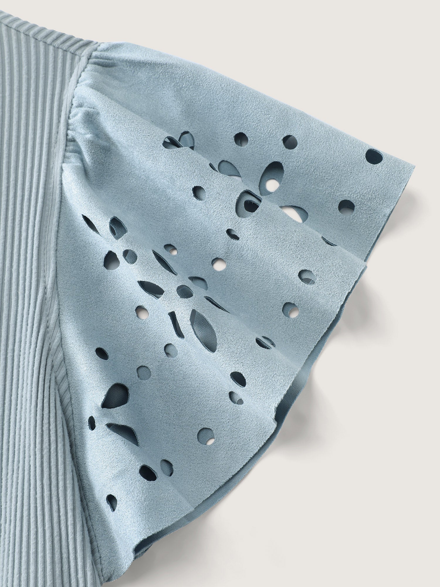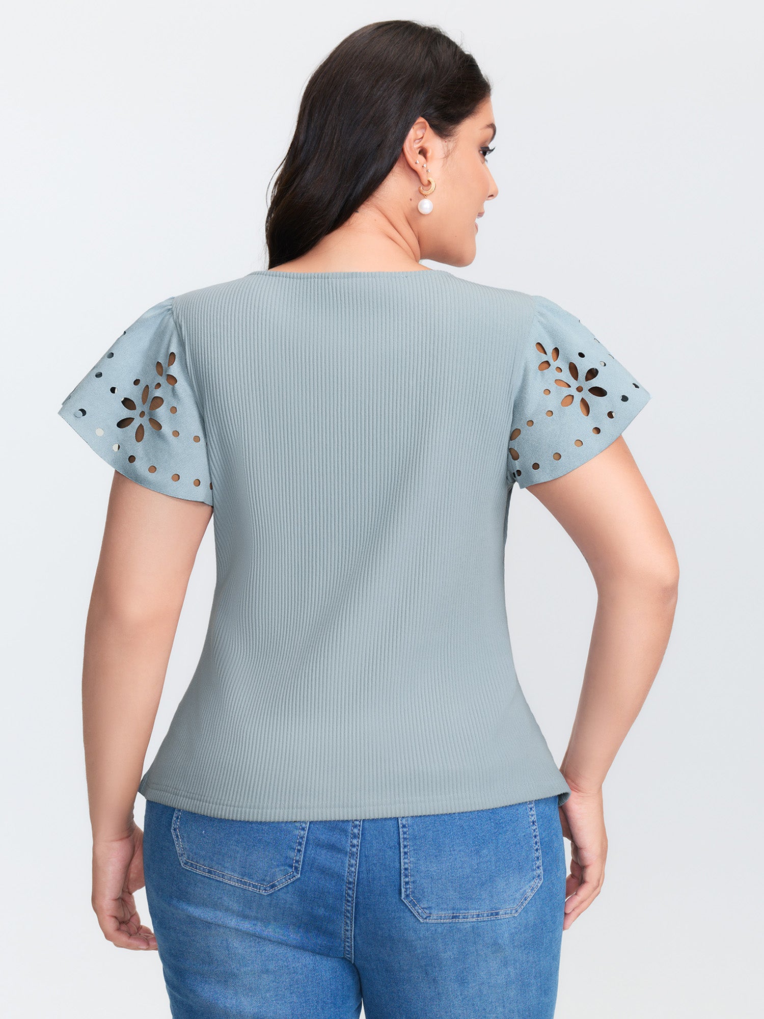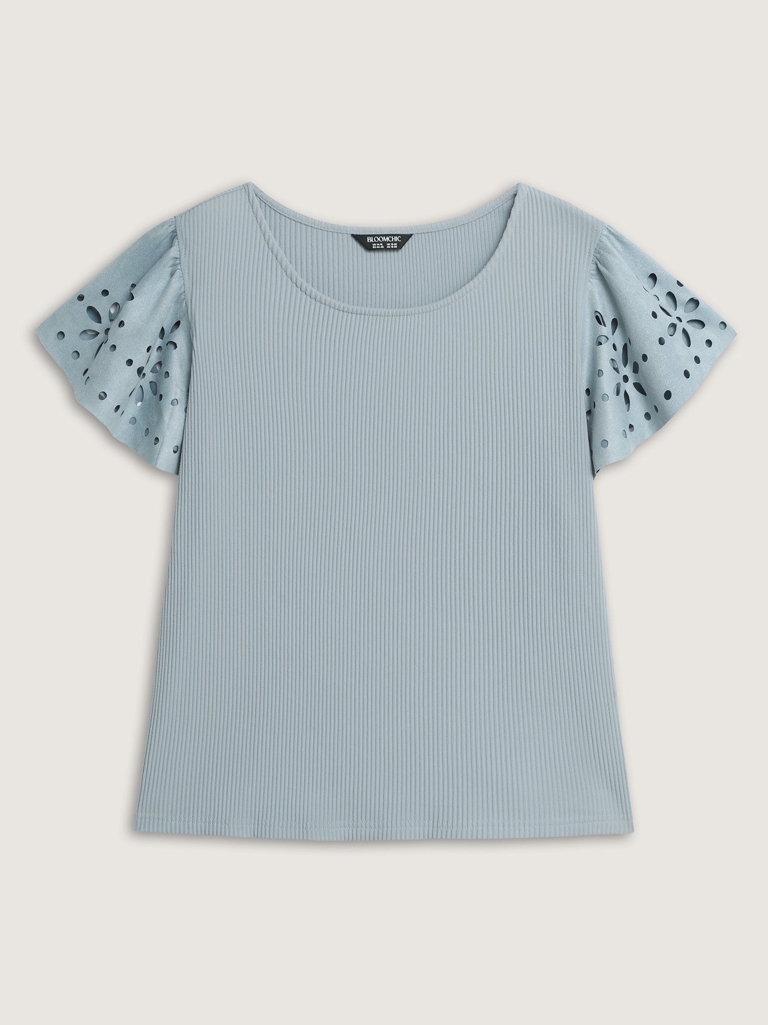 Shop Flutter Sleeve Round Neck Knit Top now and redefine your style with confidence at BloomChic. Tailored for mid and plus-size women. This trendy Tops Women, sizes 10-30. Color:Stone;Style:Timeless;Prints:Synthetic texture;Neckline:Round Neck;Sleeve Type:Cap sleeve;Details:Texture, Cut-Out;Pocket:No-pocket
