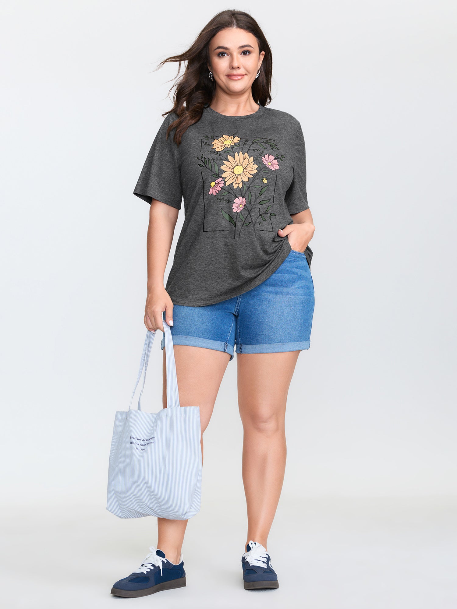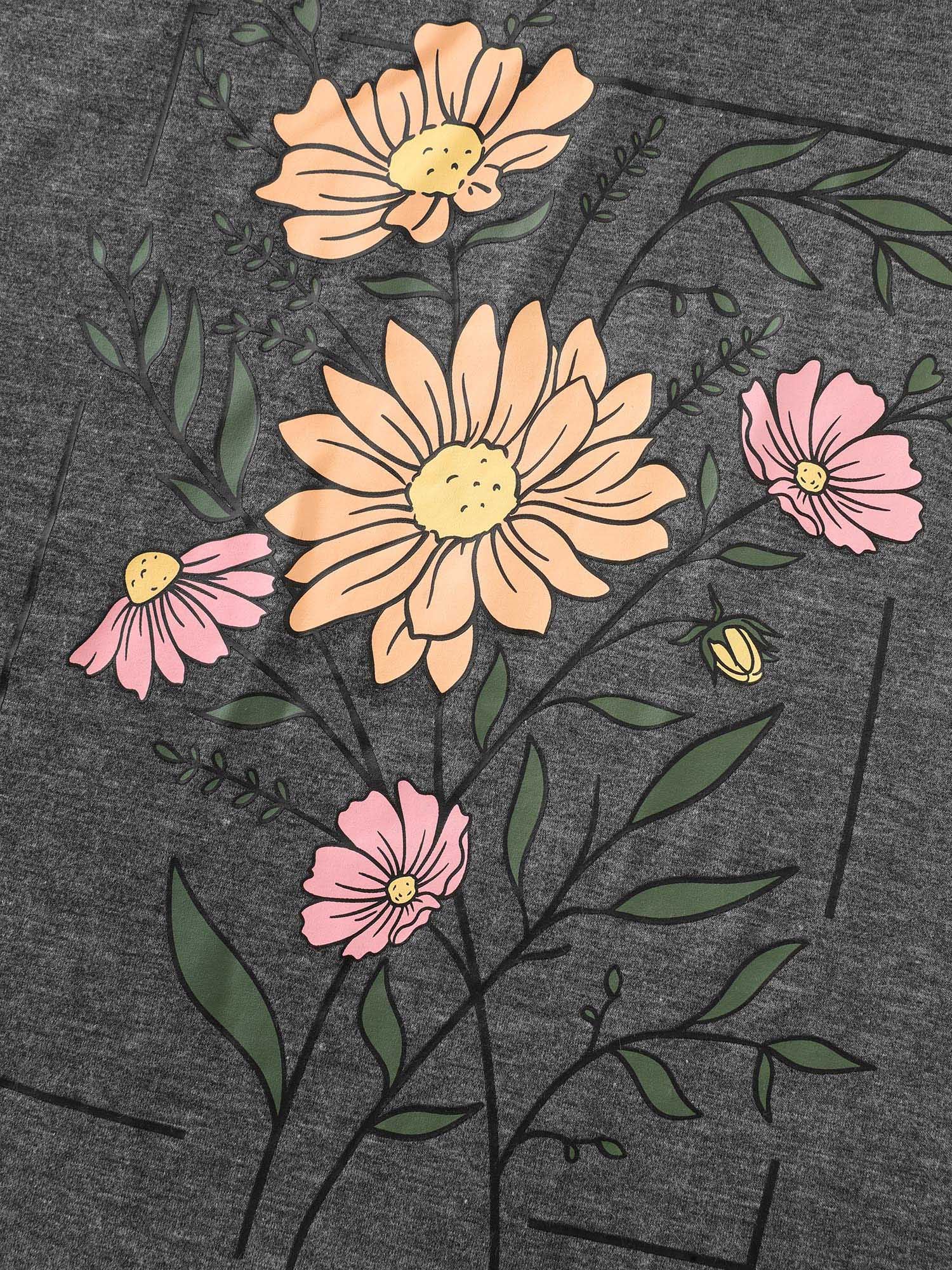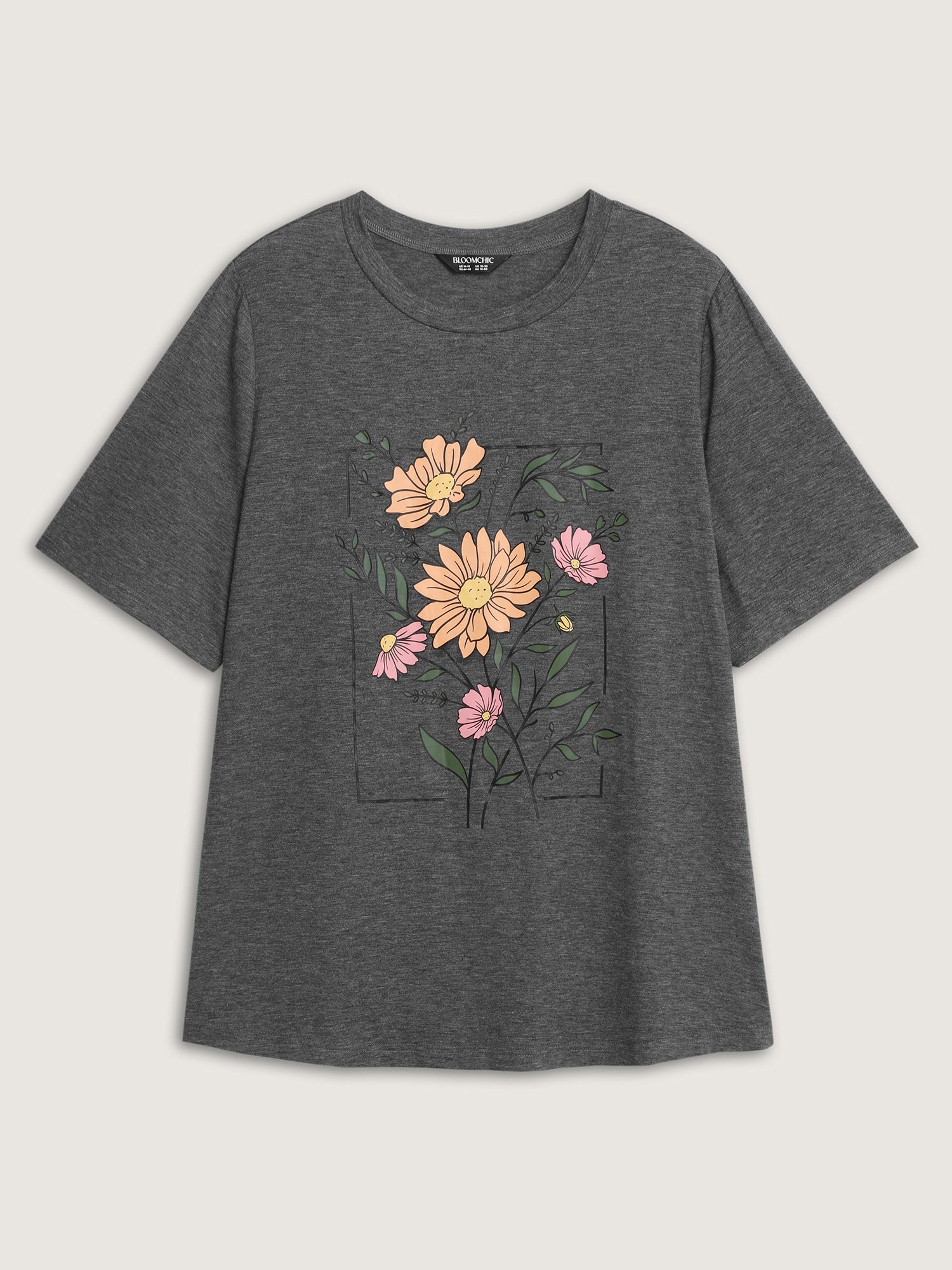 Shop Graphic Floral Print Round Neck T-Shirt now and redefine your style with confidence at BloomChic. Tailored for mid and plus-size women. This trendy Tops Women, sizes 10-30. Color:Dim Gray;Style:Leisure;Pattern Type:Natural Flowers;Prints:Non;Neckline:Round Neck;Sleeve Type:Regular Sleeve;Pocket:No-pocket