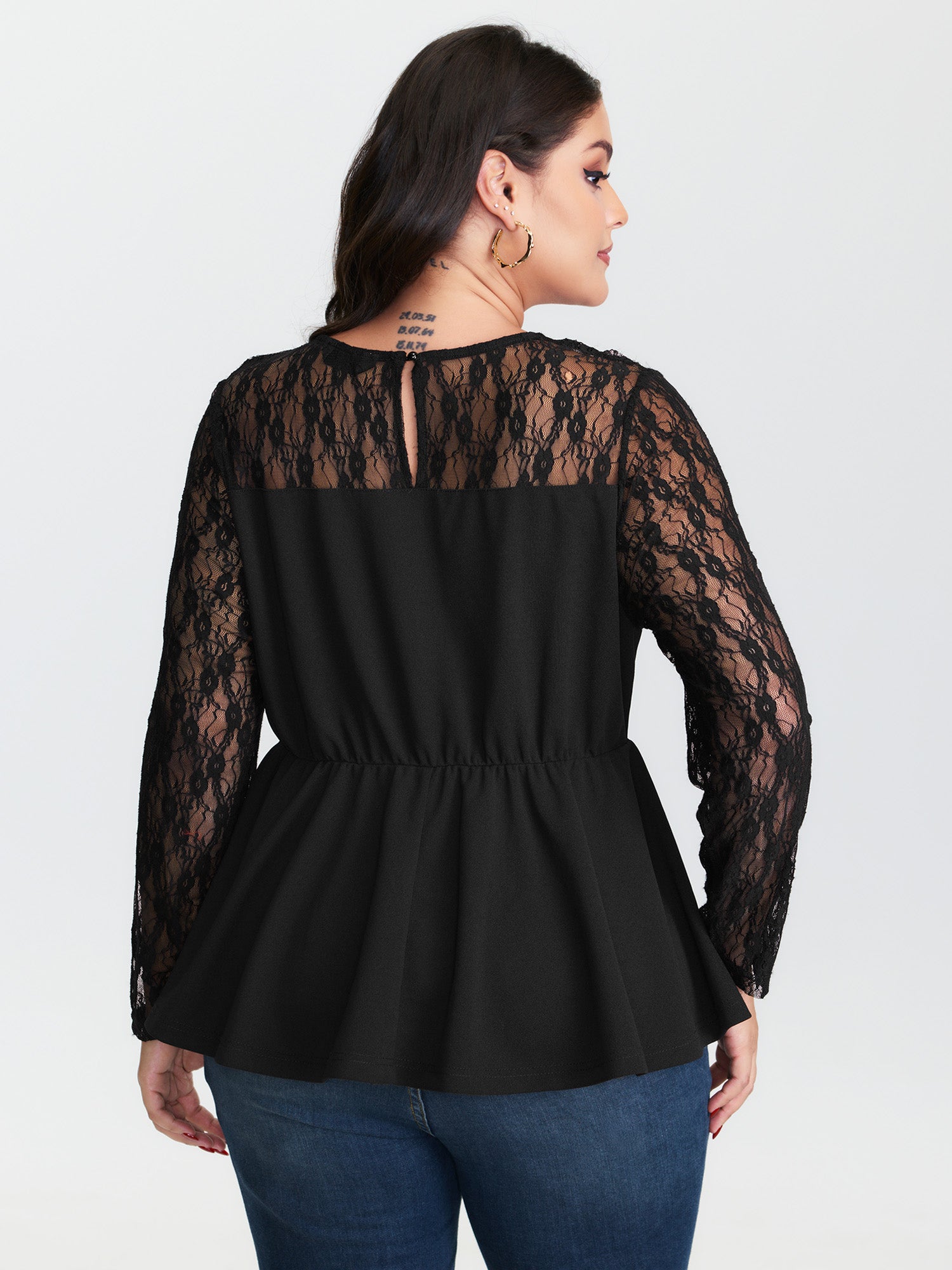 Shop Sheer Lace Crisscross Plain Top now and redefine your style with confidence at BloomChic. Tailored for mid and plus-size women. This trendy Tops Women, sizes 10-30. Color:Black;Style:Romantic;Prints:Synthetic texture;Neckline:Round Neck;Sleeve Type:Regular Sleeve;Details:Patchwork, Gathered, See through;Pocket:No-pocket