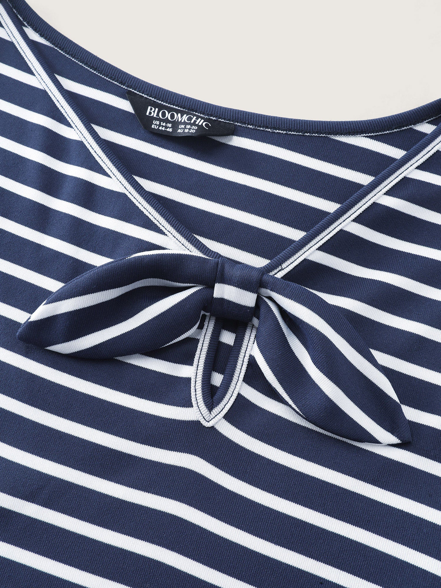 Shop Striped Knotted Neck-Tie Knit Top now and redefine your style with confidence at BloomChic. Tailored for mid and plus-size women. This trendy Tops Women, sizes 10-30. Color:Dark Blue;Style:Retro;Prints:Stripes;Neckline:Ribbon-tied collar;Sleeve Type:Regular Sleeve;Details:Contrast, Knotted;Pocket:No-pocket
