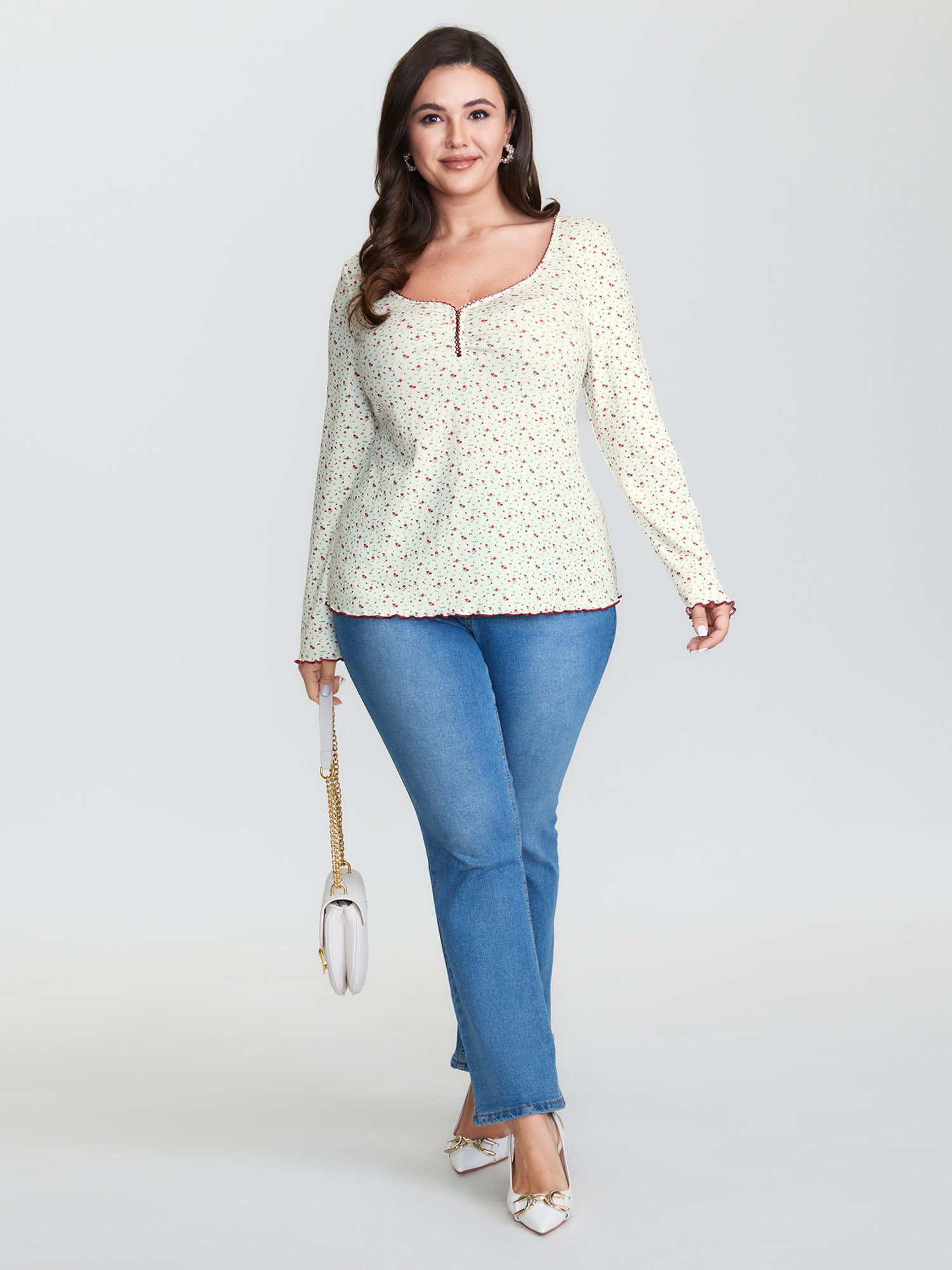 Shop Supersoft Micro Floral Print Knit Top now and redefine your style with confidence at BloomChic. Tailored for mid and plus-size women. This trendy Tops Women, sizes 10-30. Color:Beige;Style:Timeless;Prints:Ditsy floral;Neckline:Heart neckline;Sleeve Type:Regular Sleeve;Details:Texture, Contrast;Pocket:No-pocket