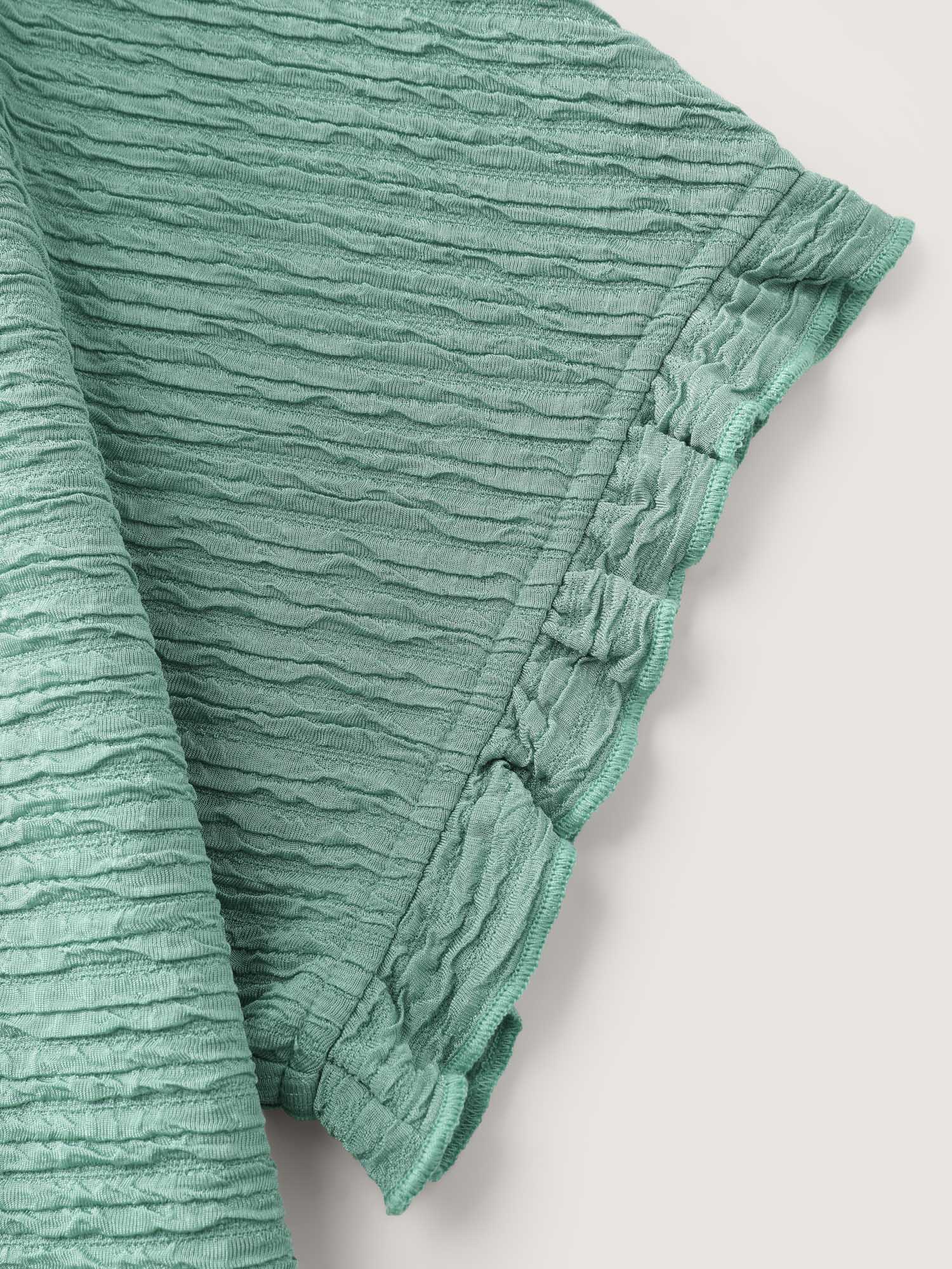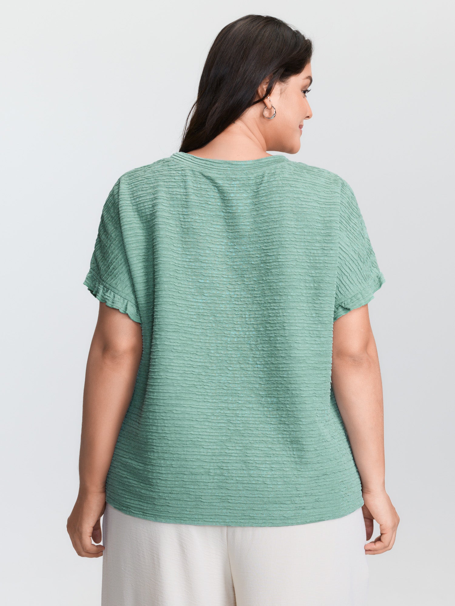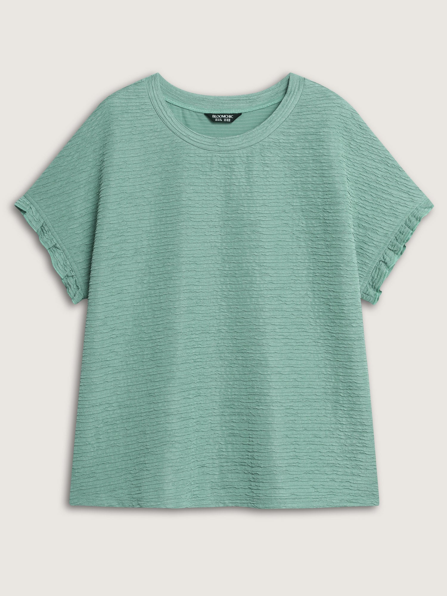 Shop Textured Ruffled Sleeve Detail Plain T-Shirt now and redefine your style with confidence at BloomChic. Tailored for mid and plus-size women. This trendy Tops Women, sizes 10-30. Color:Malachite Green;Style:Leisure;Prints:Non;Neckline:Round Neck;Sleeve Type:Ruffle Sleeve;Details:Texture, Ruffles, Slit;Pocket:No-pocket