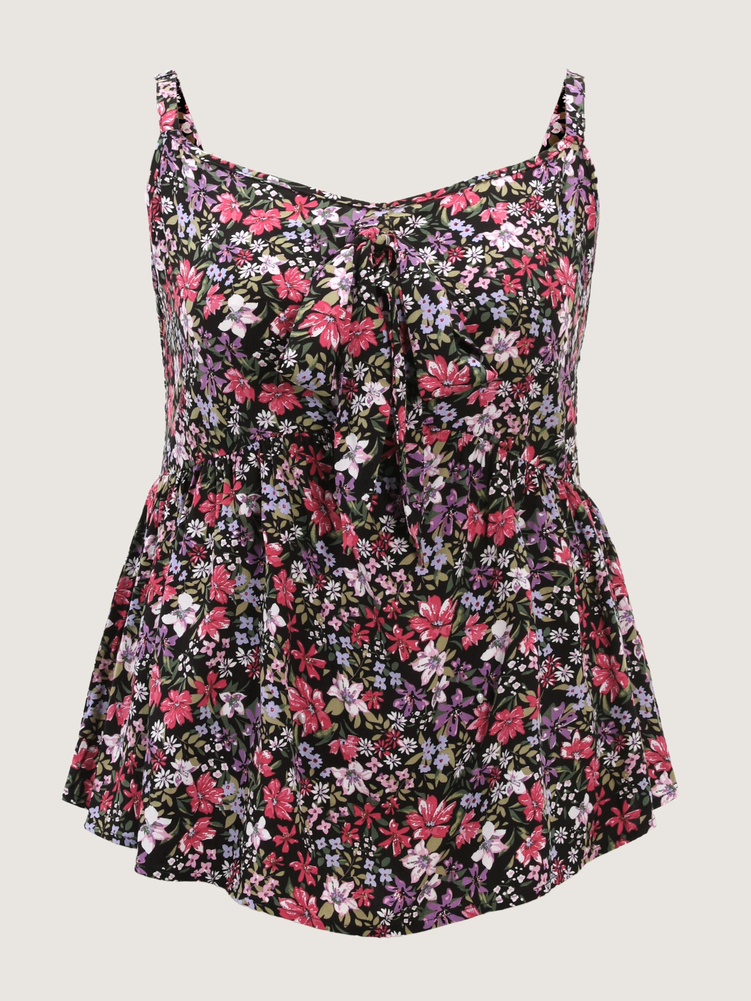 Shop Floral Print Bow Tie Cinched Waist Tank Top now and redefine your style with confidence at BloomChic. Tailored for mid and plus-size women. This trendy Tops Women, sizes 10-30. Color:Black;Style:Timeless;Prints:Ditsy floral;Neckline:Non;Sleeve Type:Sleeveless;Details:Contrast, Tie knot, Gathered;Pocket:No-pocket