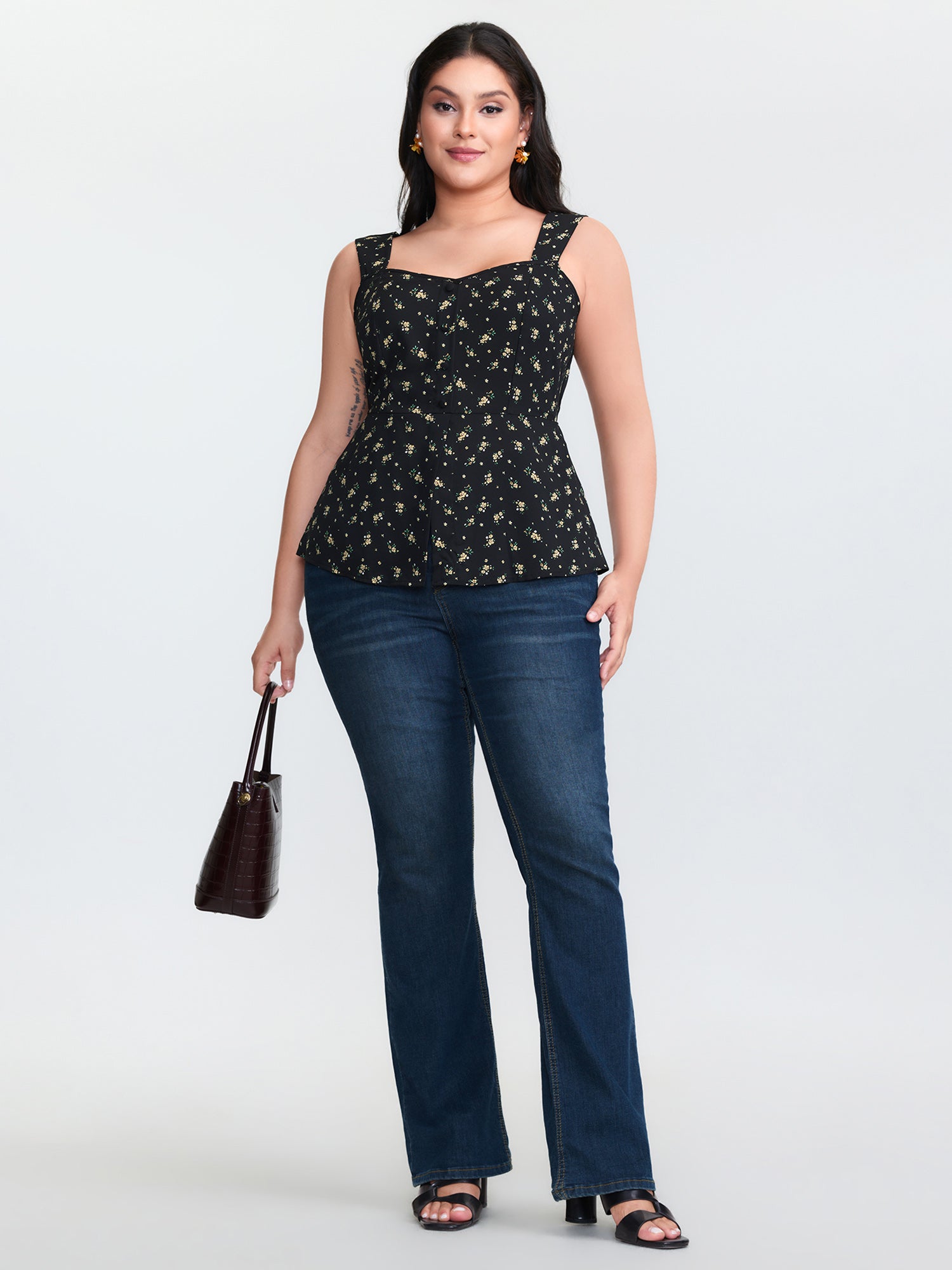 Shop Floral Print Shirred Cinched-Waist Tank Top now and redefine your style with confidence at BloomChic. Tailored for mid and plus-size women. This trendy Tops Women, sizes 10-30. Color:Black;Style:Timeless;Prints:Ditsy floral;Neckline:Heart neckline;Sleeve Type:Sleeveless;Details:Contrast;Pocket:No-pocket